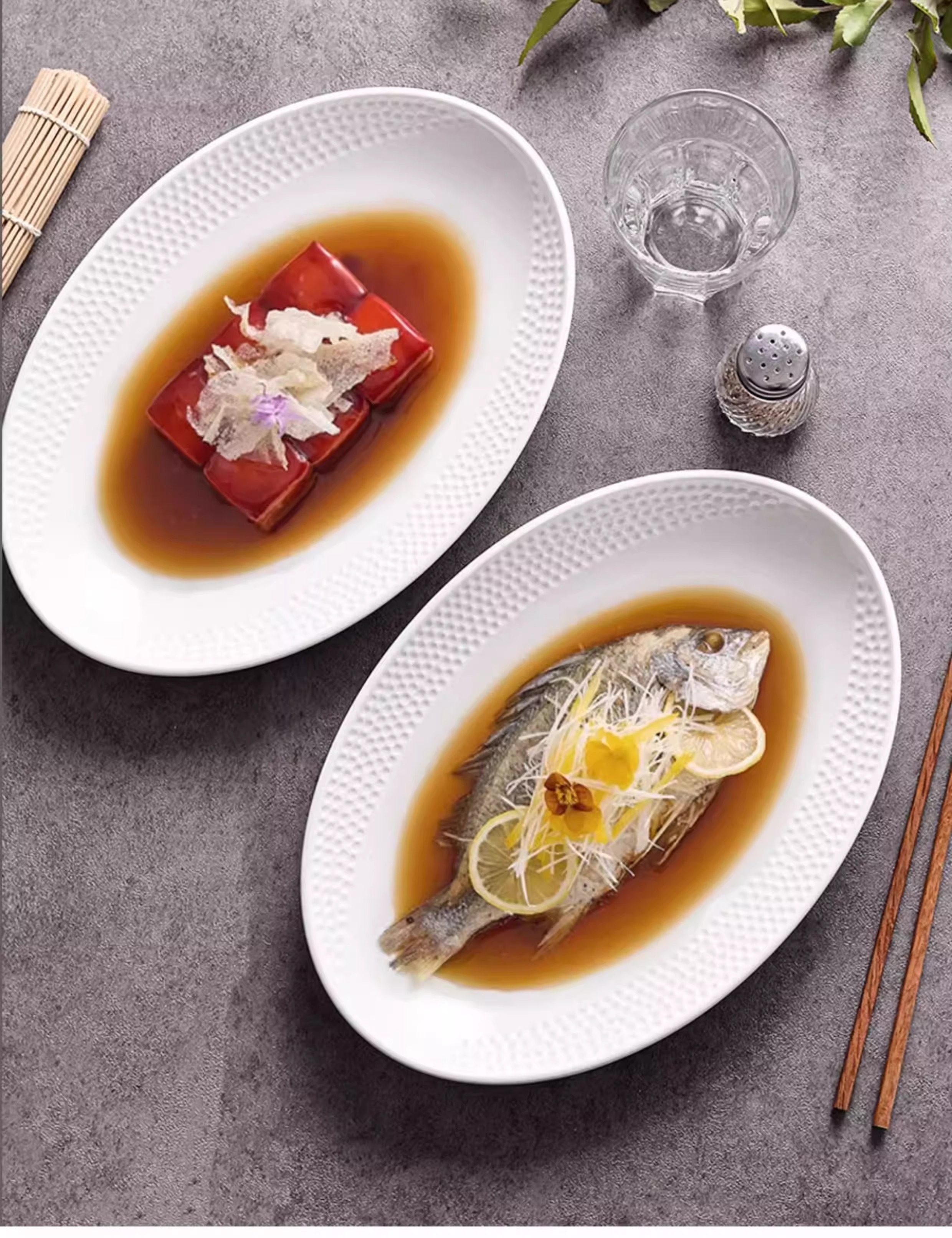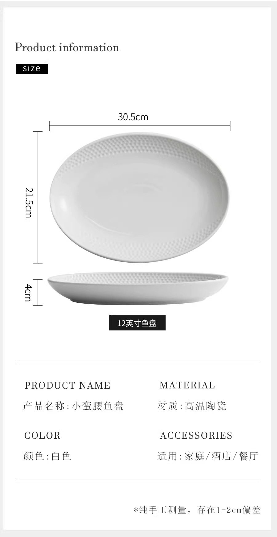 Fish Plate for Home Use, Ceramic Steaming Fish Plate, Special Plate 12inch Oval Plate, Special Large Plate for Chopping Chili and Fish Head