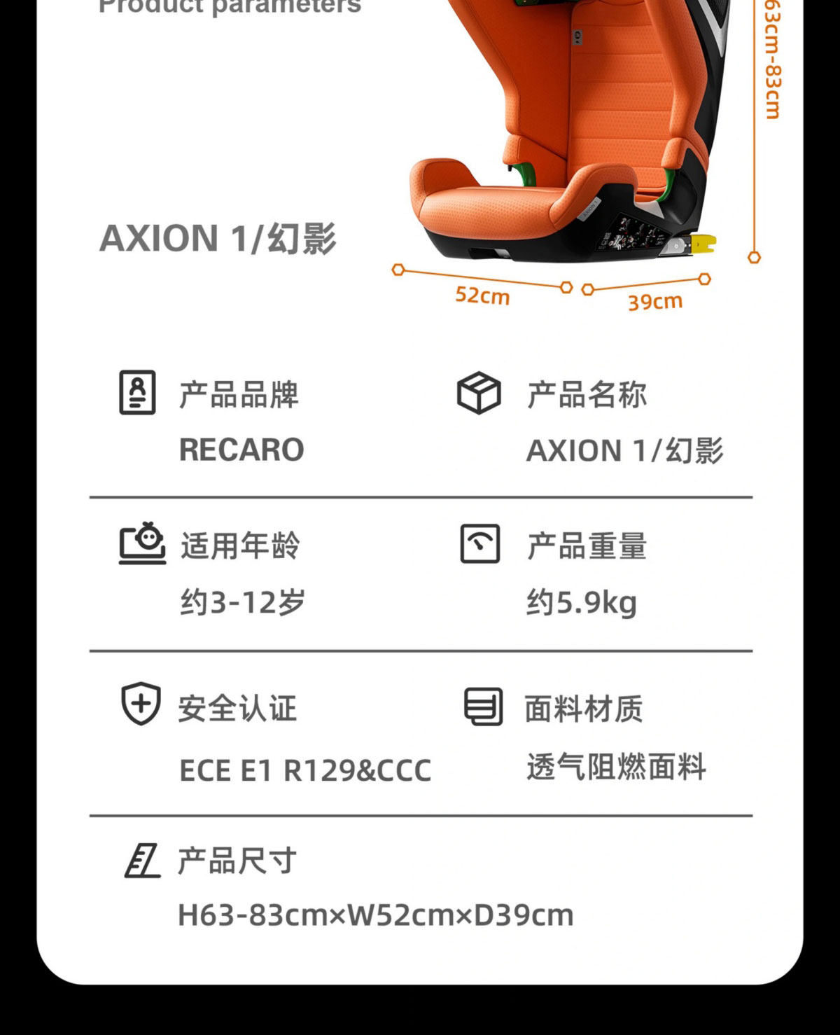 German Imported Recaro Phantom Child Safety Seat for Children Aged 3-12, Specially Designed for Cars, Axion 1