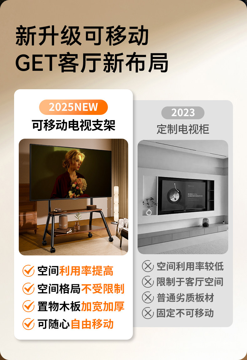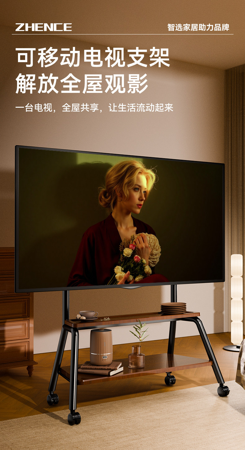 Tv Movable Stand, Floor-Standing Cart with Wheels, Nordic Art Hanging Shelf, High-End Tv Cabinet, Universal