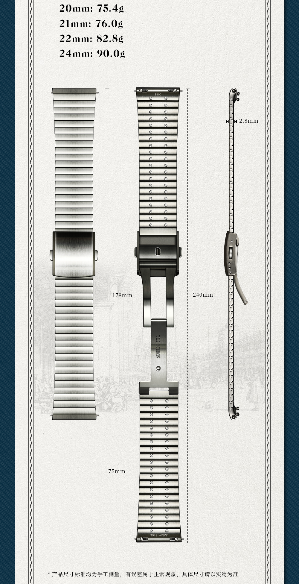 | Size | Strap Connector Width: 19mm,Strap Connector Width: 20mm,Strap Connector Width: 21mm,Strap Connector Width: 22mm,Strap Connector Width: 24mm |