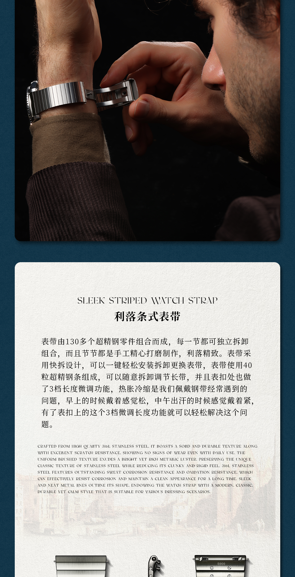 Umtanned S900 Steel Watch Strap for Men, Suitable for Tudor, Iwc, Omega, Longines Accessories, Quick-Release Watch Strap