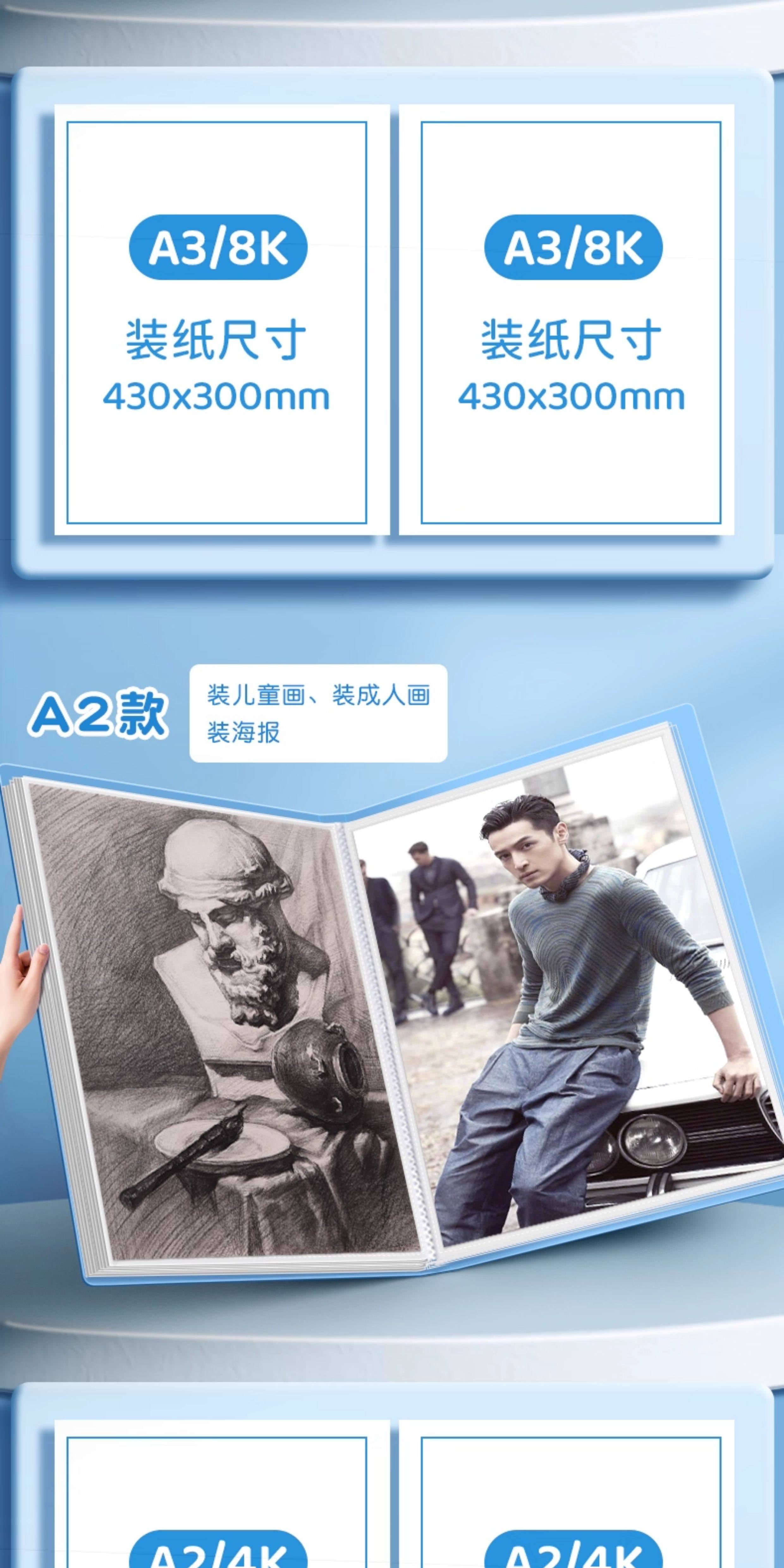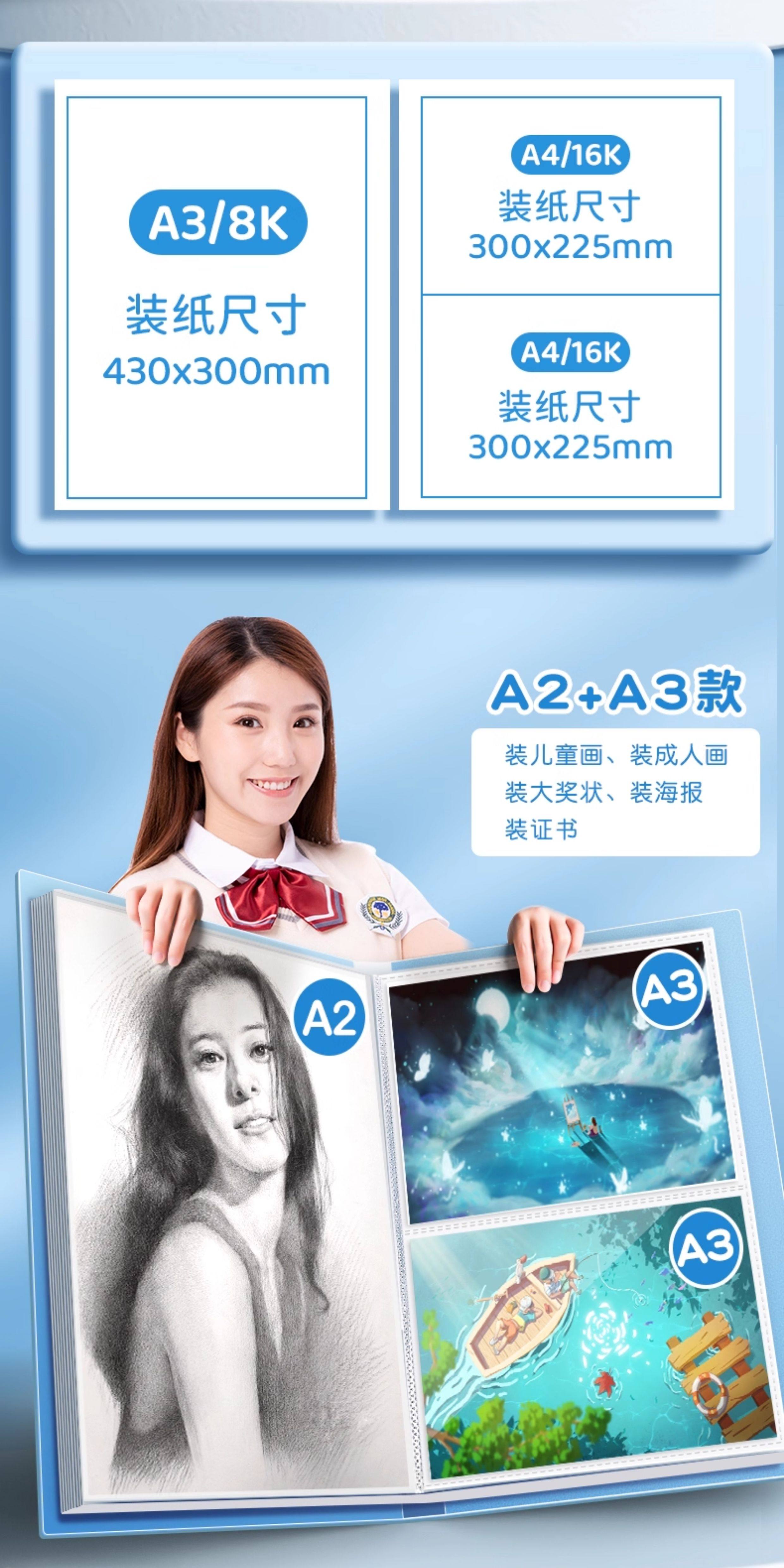| Color Classification | [Store Manager Recommendation] A3+A4 Portable/60 Pages in Total/Can Hold 180 Sheets/Blue,[Store Manager Recommendation] A3+A4 Portable/60 Pages in Total/Can Hold 180 Sheets/Pink,A3/8K Portable/60 Pages in Total/Can Hold 120 Sheets/Blue,A3/8K Portable/60 Pages in Total/Can Hold 120 Sheets/Pink,A3/8K Portable/60 Pages in Total/Can Hold 120 Sheets/Purple,A3/8K Simple/60 Pages in Total/Can Hold 120 Sheets/Blue,A3/8K Simple/60 Pages in Total/Can Hold 120 Sheets/Pink,A3/8K Portable/40 Pages in Total/Can Hold 80 Sheets/Blue,A3/8K Portable/40 Pages in Total/Can Hold 80 Sheets/Pink,A3/8K Portable/40 Pages in Total/Can Hold 80 Sheets/Purple,A3/8K Simple/40 Pages in Total/Can Hold 80 Sheets/Blue,A3/8K Simple/30 Pages in Total/Can Hold 60 Sheets/Blue,A3/8K Simple/30 Pages in Total/Can Hold 60 Sheets/Pink,[Store Manager Recommendation] A2+A3 Portable/60 Pages in Total/Can Hold 180 Sheets/Blue,[Store Manager Recommendation] A2+A3 Portable/60 Pages in Total/Can Hold 180 Sheets/Pink,A2/4K Portable/60 Pages in Total/Can Hold 120 Sheets/Blue,A2/4K Portable/60 Pages in Total/Can Hold 120 Sheets/Pink,A2/4K Portable/60 Pages in Total/Can Hold 120 Sheets/Purple,A2/4K Portable/40 Pages in Total/Can Hold 80 Sheets/Blue,A2/4K Portable/40 Pages in Total/Can Hold 80 Sheets/Pink,[Recommended Combination] A3+A4 Portable/40 Pages in Total/Can Hold 120 Sheets/Blue,[Combined Recommendation] A3+A4 Portable/40 Pages in Total/Can Hold 120 Sheets/Pink,[Recommended Combination] A3+A4 Portable/40 Pages in Total/Can Hold 120 Sheets/Purple,[Recommended Combination] A2+A3 Portable/60 Pages in Total/Can Hold 180 Sheets/Purple |
