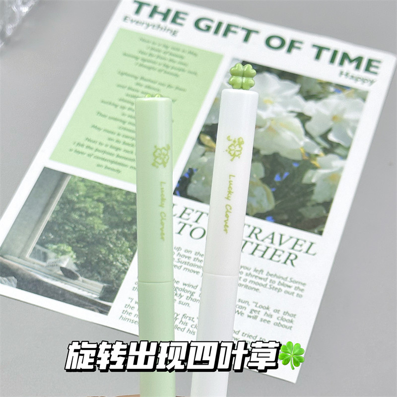 Original Fresh and Cute Four-Leaf Clover Twist-Out Pen, High Aesthetic Value, ins Style Gel Pen, Specially Designed for Middle and High School Students, Quick-Drying, Smooth Writing, 0.5mm Brush Pen, Black Pen, St Tip Signature Pen