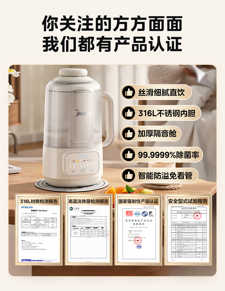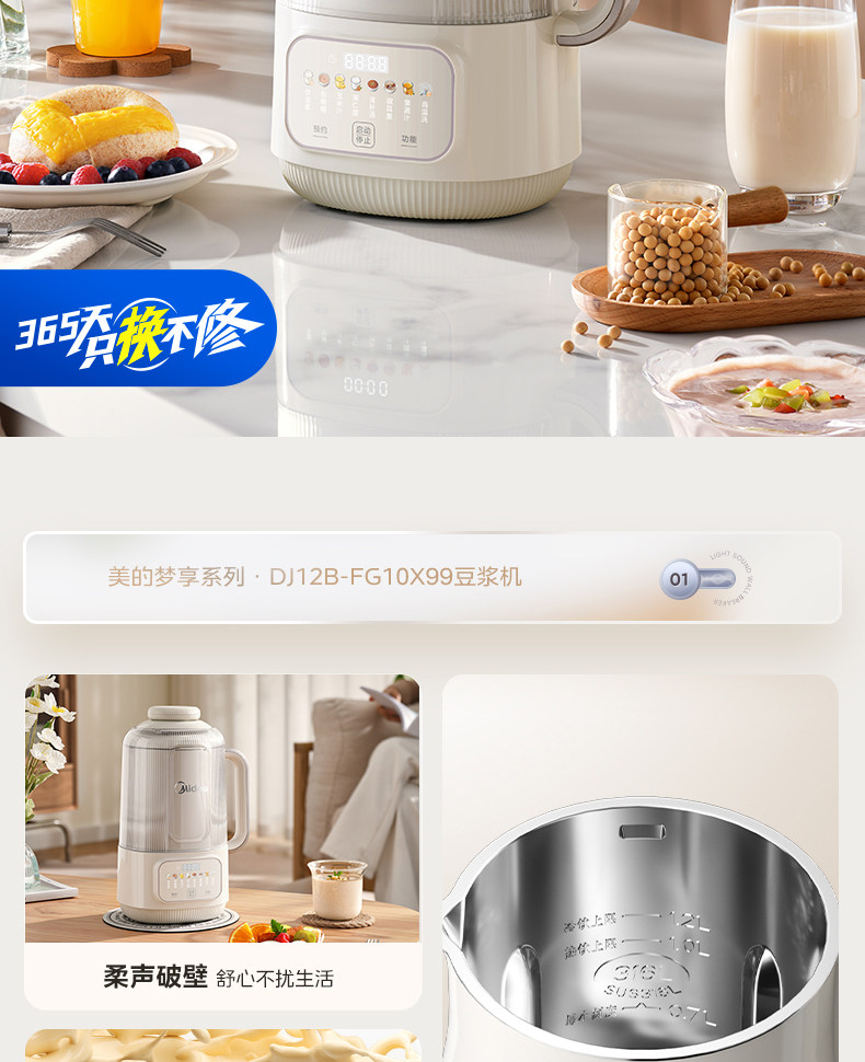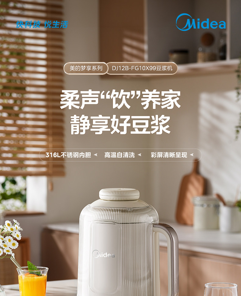 Midea Blender for Home Use, Fully Automatic, Residue-Free, Multifunctional, for Making Soy Milk, Cooking, and Juicing, Quiet, 2025 New Model