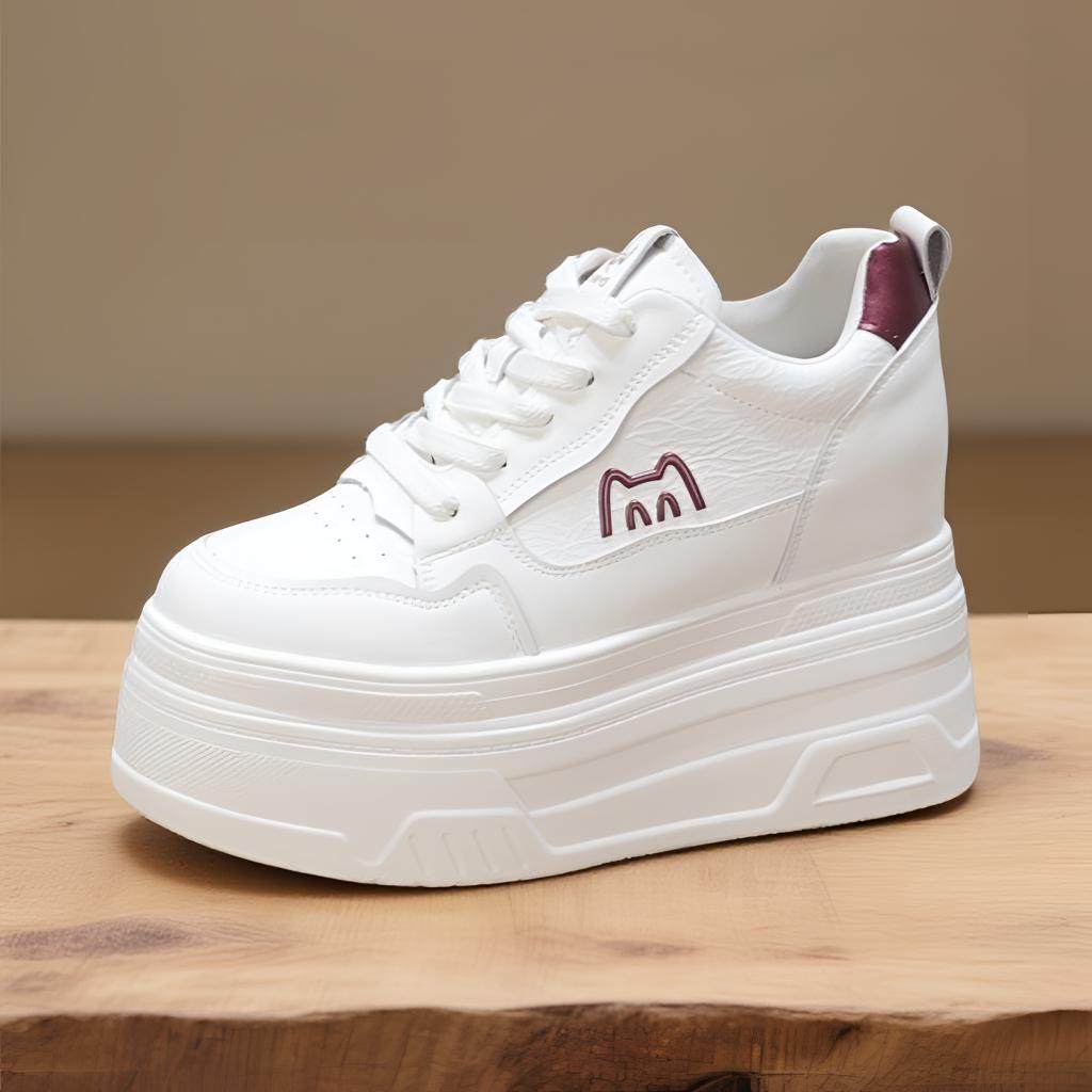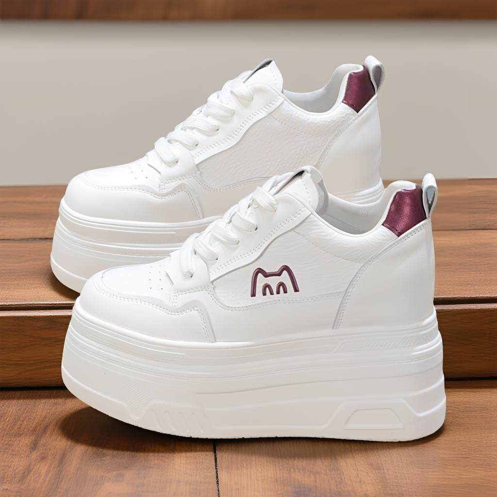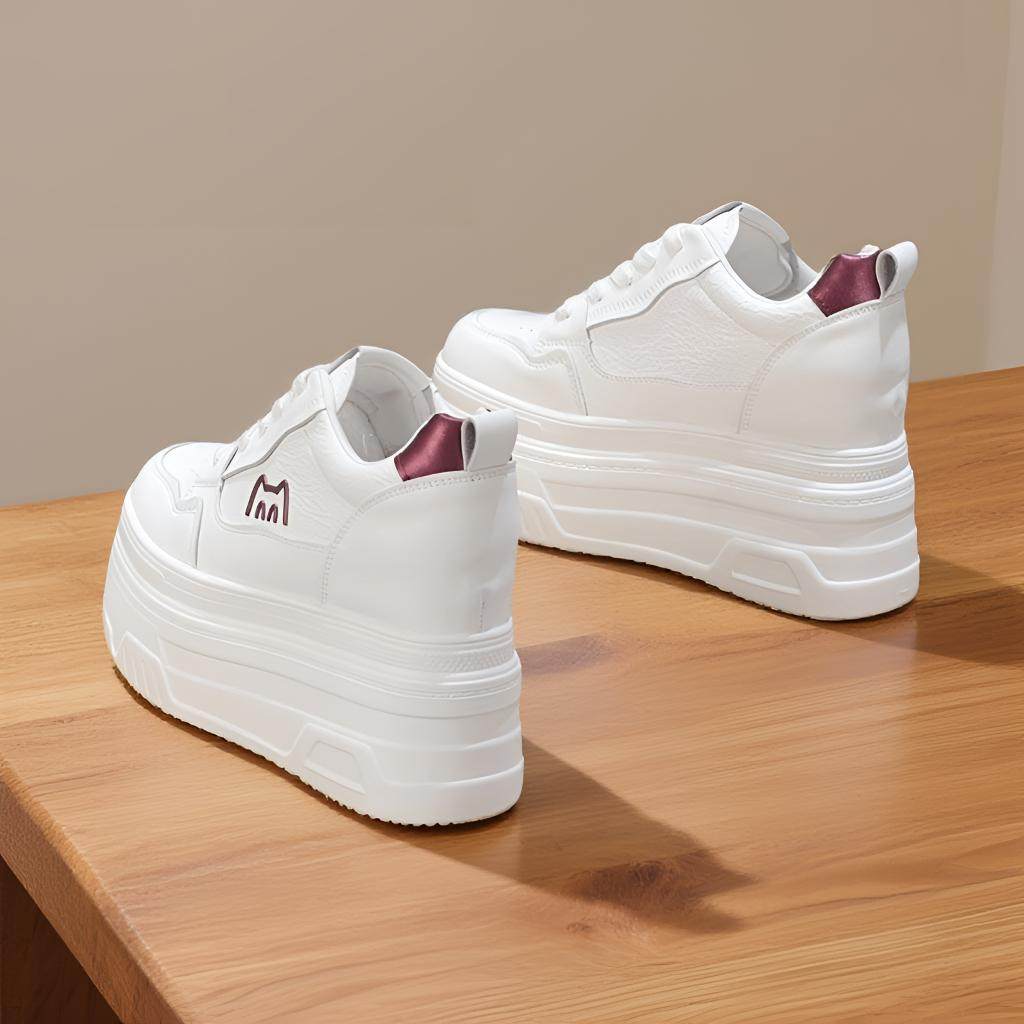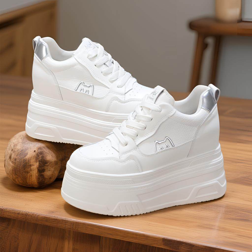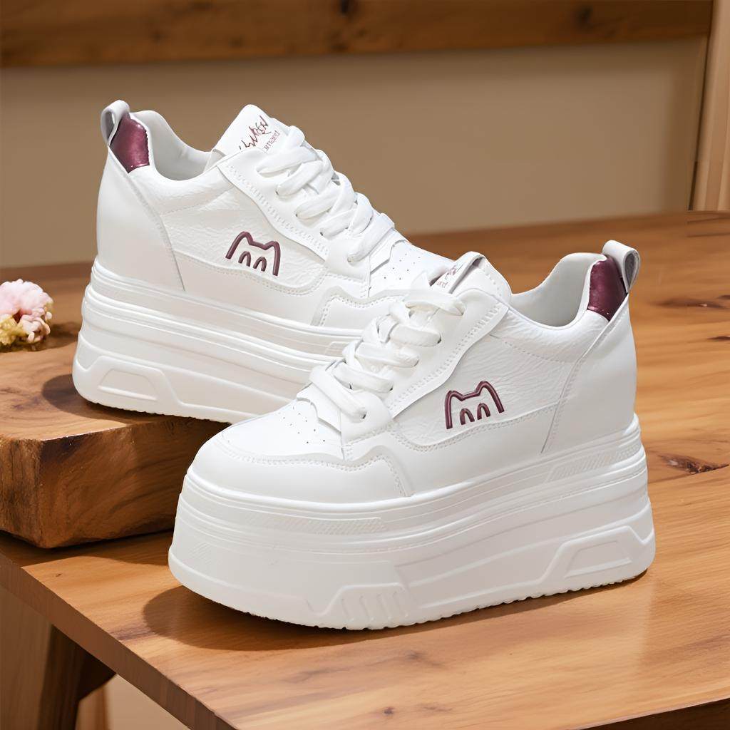 Genuine Leather Fleece-Lined 12cm Thick-Soled White Sneakers for Women 10cm Height-Increasing Cotton Shoes with Ultra-High 14cm Platform Casual Shoes