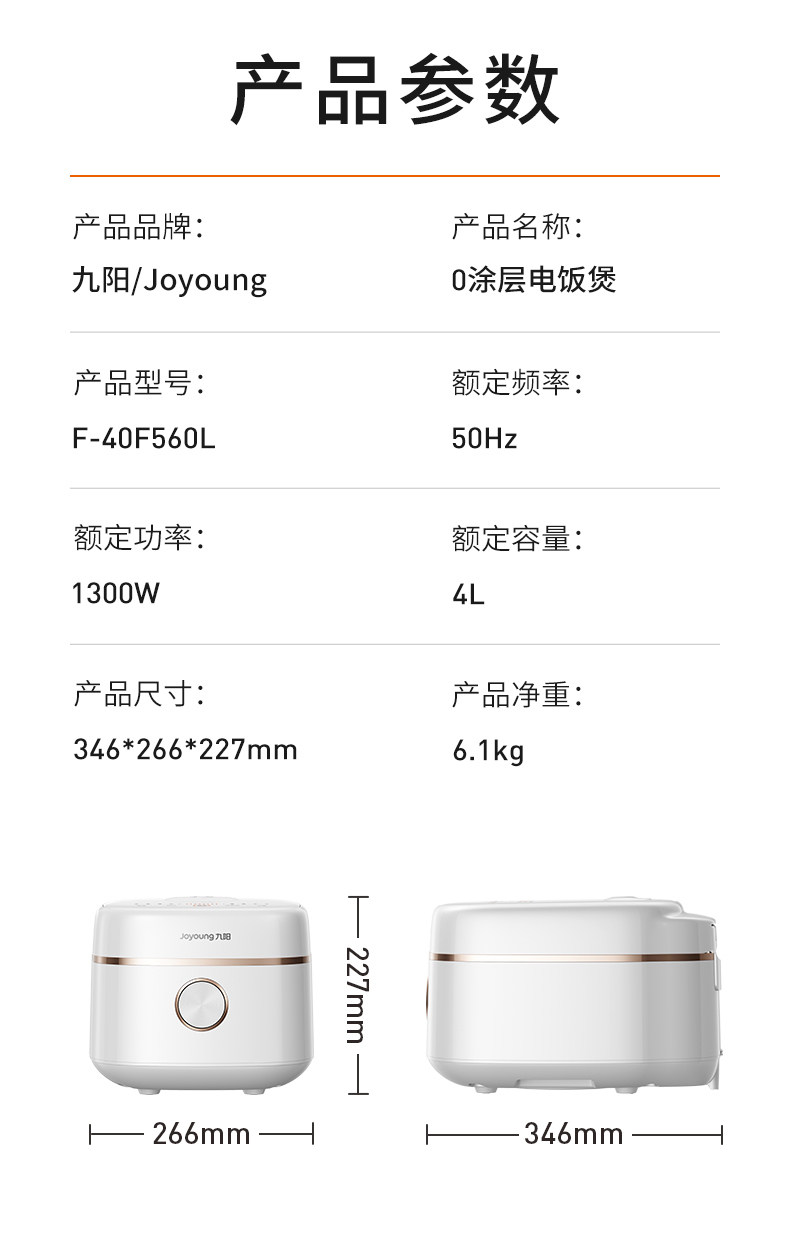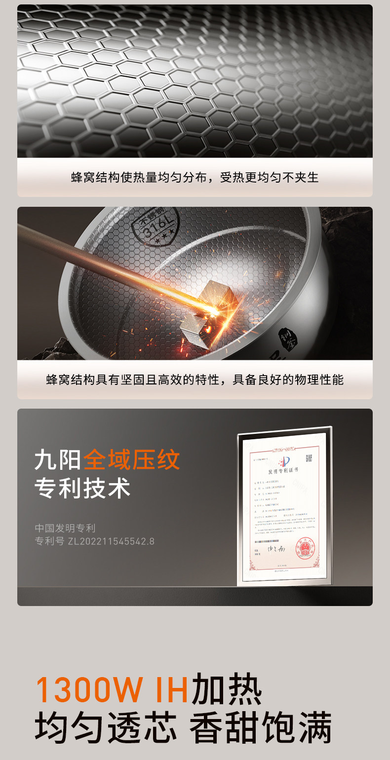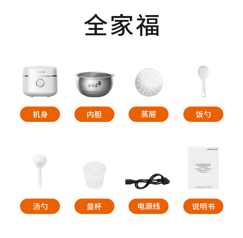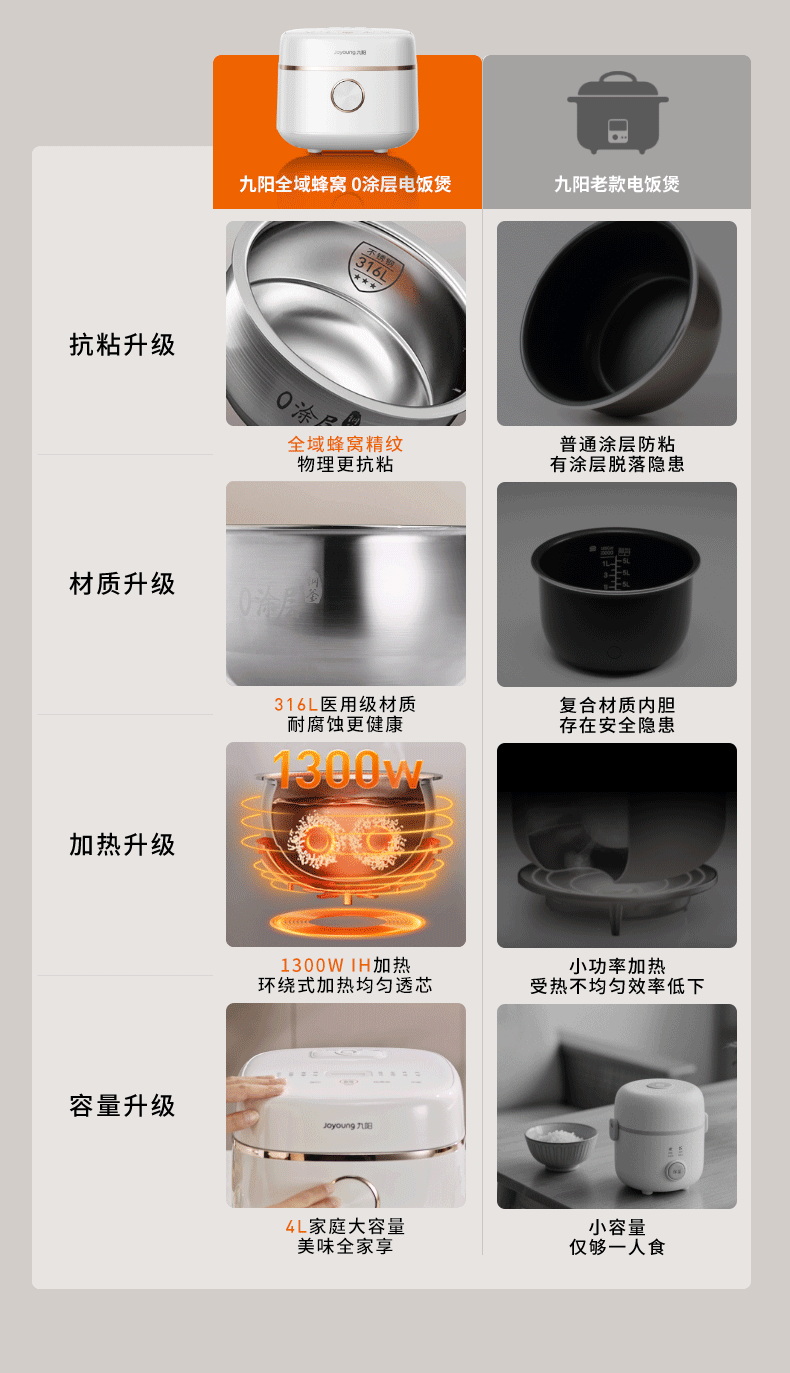 Joyoung Ih Rice Cooker 0 Coating Household 4L Large Capacity Multifunctional Rice Cooker 316 Honeycomb Steel Pot 2025 New Model