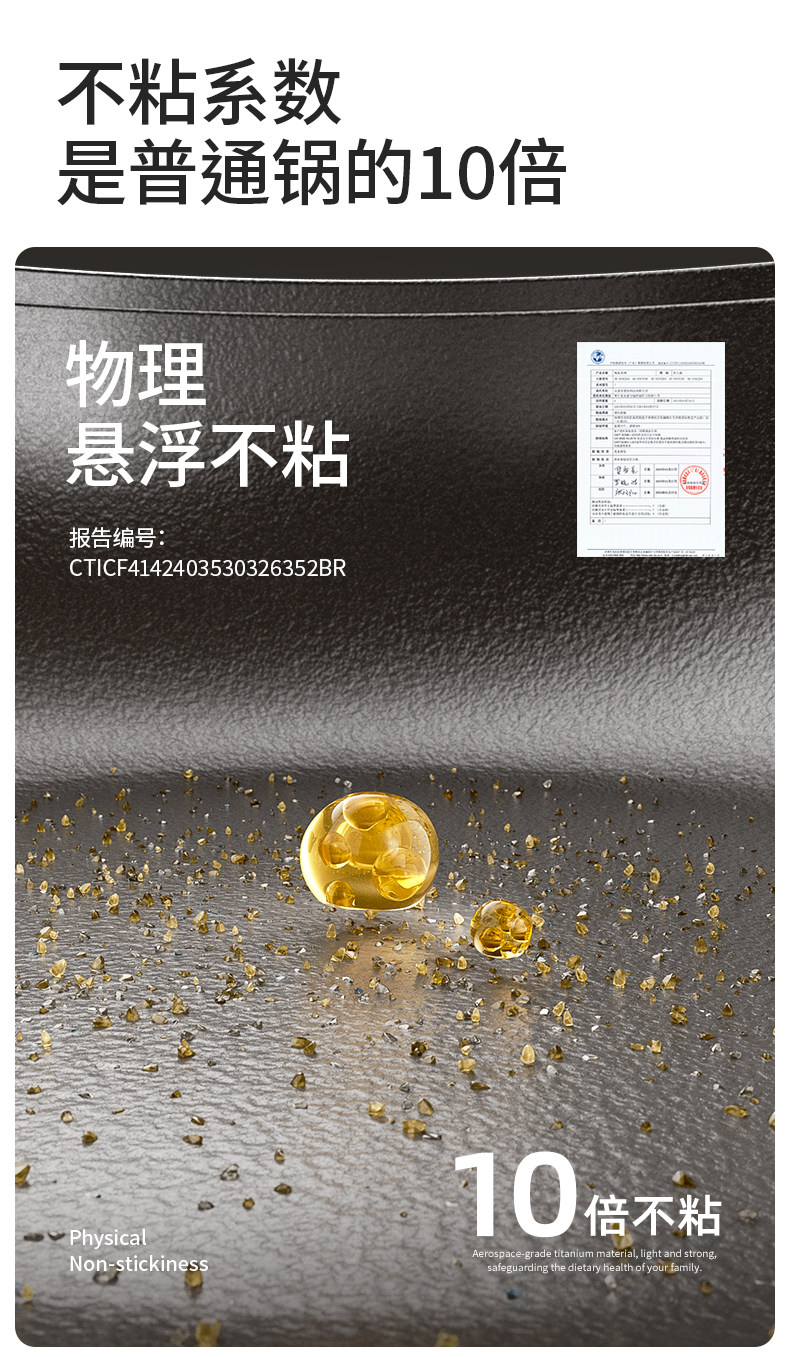 Micro-Pressure Titanium Frying Pan, Non-Stick Pan, Household Uncoated Frying and Stir-Frying Cookware, Suitable for Gas Stoves and Induction Cookers, Flat-Bottomed Pan X