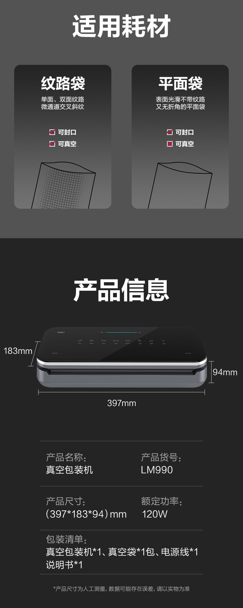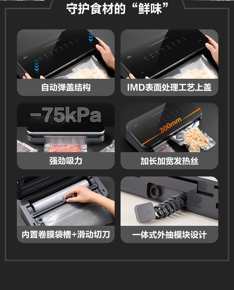 Deli Vacuum Sealer Lm990 Vacuum Packaging Machine Fresh-Keeping Sealing Machine Small Household New Model Fully Automatic