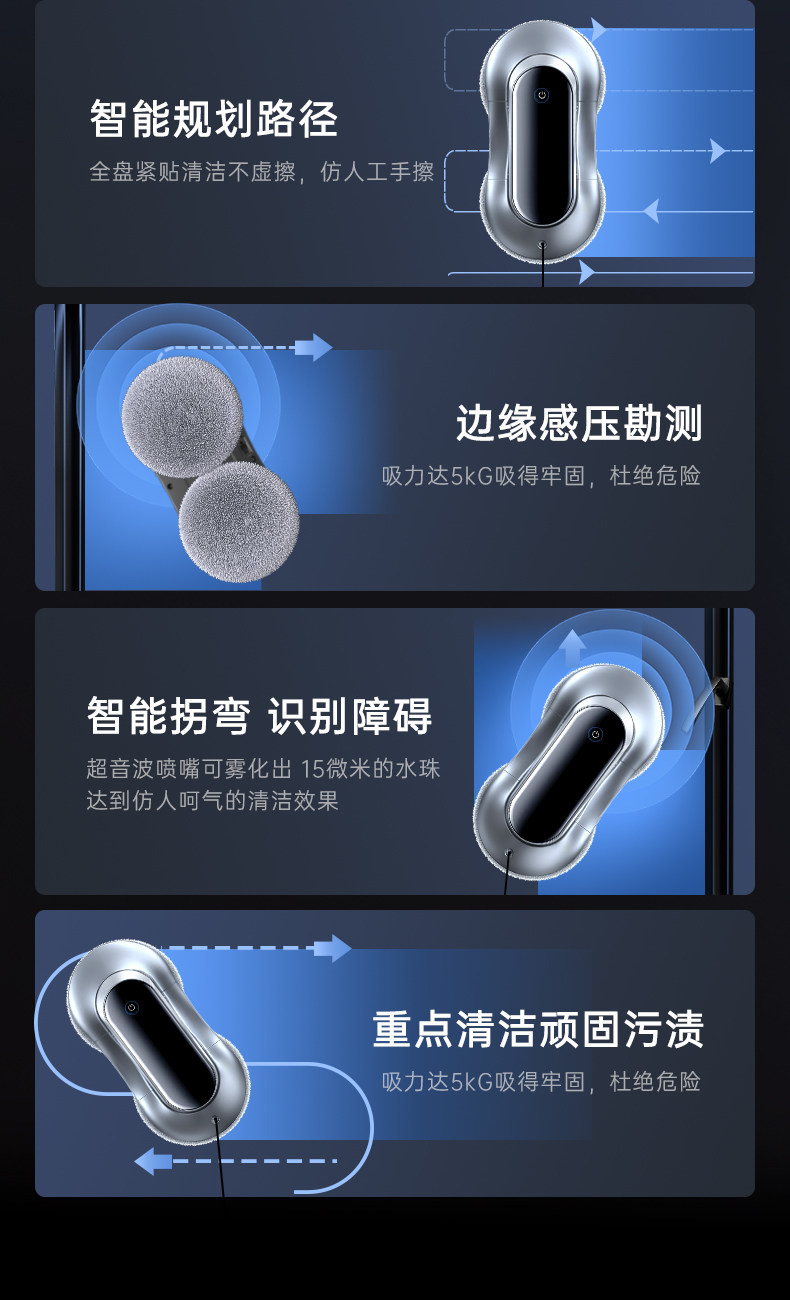Window Cleaning Robot with 8 Water Spray Nozzles, Fully Automatic Glass Cleaning Device, Electric Window Cleaning Robot for High-Rise Windows