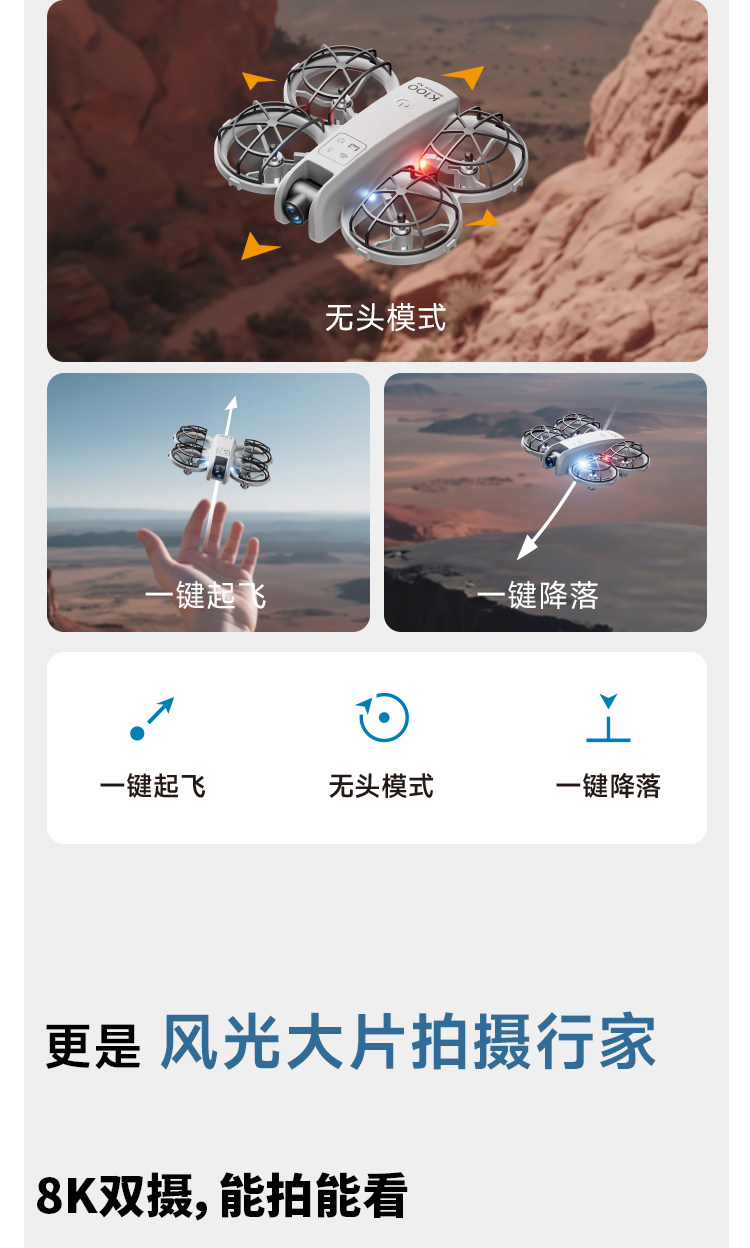 | Color Classification | 6K Single-Lens Camera [Basic Aerial Photography + Optical Flow Positioning + Auto Hovering + Carbon Brush Motor + Gesture Photo] - Black,6K Single-Lens Camera [Basic Aerial Photography + Optical Flow Positioning + Auto Hovering + Carbon Brush Motor + Gesture Photo] - Gray,8K Single-Lens Camera [Basic Aerial Photography + Optical Flow Positioning + Auto Hovering + Carbon Brush Motor + Gesture Photo] - Black,8K Single-Lens Camera [Basic Aerial Photography + Optical Flow Positioning + Auto Hovering + Carbon Brush Motor + Gesture Photo] - Gray,6K Dual Camera [Beginner-Friendly Aerial Photography + Optical Flow Positioning + Auto Hover + Carbon Brush Motor + Gesture Photo] - Black,6K Dual Camera [Beginner-Friendly Aerial Photography + Optical Flow Positioning + Auto Hover + Carbon Brush Motor + Gesture Photo] - Gray,8K Dual Camera [Beginner-Friendly Aerial Photography + Optical Flow Positioning + Auto Hover + Carbon Brush Motor + Gesture Photo] - Black,8K Dual Camera [Beginner-Friendly Aerial Photography + Optical Flow Positioning + Auto Hover + Carbon Brush Motor + Gesture Photo] - Gray,Recommended 8K Dual-Camera Drone with Integrated Screen – [Beginner-Friendly Aerial Photography + Optical Flow Positioning + Auto Hover + Carbon Brush Motors + Gesture Control] – Black,Recommended 8K Dual-Camera Drone with Integrated Screen: [Beginner-Friendly Aerial Photography + Optical Flow Positioning + Auto Hover + Carbon Brush Motor + Gesture Control] - Gray,Recommended 8K Dual Camera with Built-In Large Screen [Novice Aerial Photography + Optical Flow Positioning + Automatic Hovering + Carbon Brush Motor + Gesture Photography] Black,Recommended 8K Dual Camera with Built-In Large Screen [Novice Aerial Photography + Optical Flow Positioning + Automatic Hovering + Carbon Brush Motor + Gesture Photography] Gray,Large-Sized Gray 8K Dual Camera with Built-In Screen [Novice Aerial Photography + Optical Flow Positioning + Automatic Hovering + Brushless Motor + Gesture Photography] |