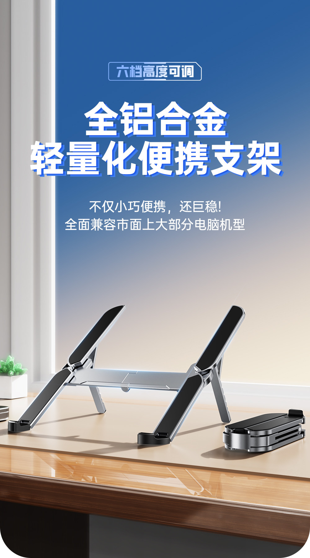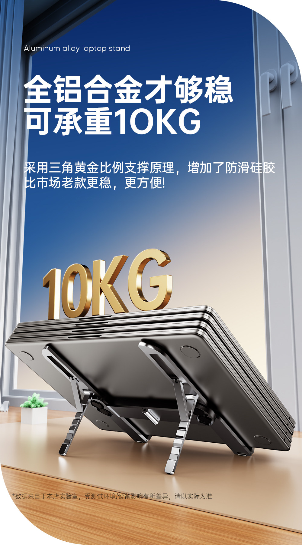 New Aluminum Alloy Laptop Stand, Computer Stand, Ultra-Light Suspended Cooling Stand, Foldable and Adjustable Support Stand