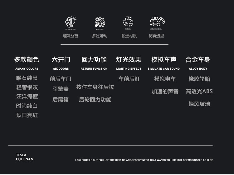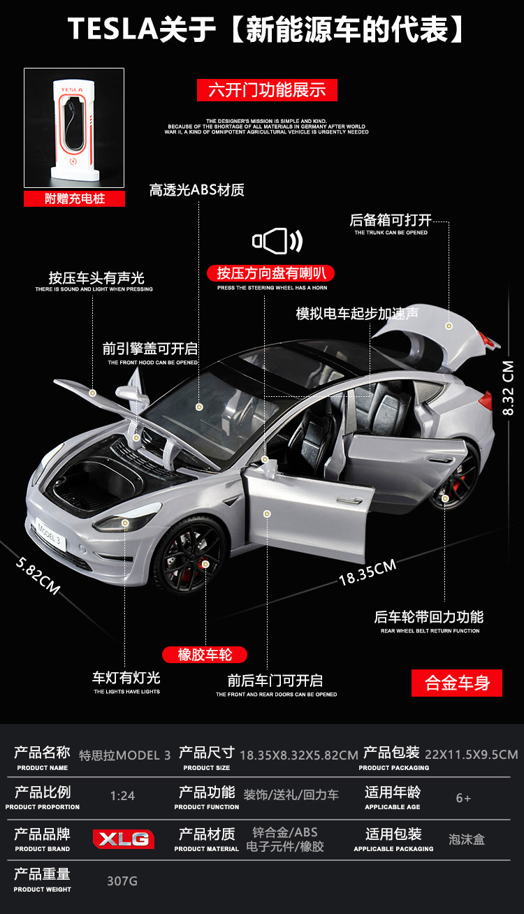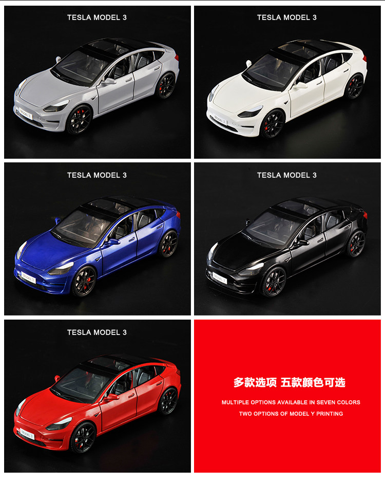| Color Classification | 1:24 Tesla Model 3 [Blue] Comes with Charging Pile,1:24 Tesla Model 3 [Red] Comes with Charging Pile,1:24 Tesla Model3 [Black] Comes with Charging Pile,1:24 Tesla Model 3 [White] Comes with Charging Pile,1:24 Tesla Model 3 [Gray] Comes with Charging Pile,1:32 Tesla Model 3 Renewed Version [White],1:32 Tesla Model 3 Renewed Version [Black],1:32 Tesla Model 3 Renewal Edition [Red],1:32 Tesla Model 3 Renewed Version [Blue],1:32 Tesla Model 3 [Black],1:32 Tesla Model 3 [Blue],1:32 Tesla Model 3 [Red],1:32 Tesla Model 3 [Purple],1:32 Tesla Model 3 [Pink],1:32 Tesla Model 3 [White],1:24 Tesla Model Y [Blue] Comes with Charging Pile,1:24 Tesla Model Y [Black] Comes with Charging Pile,1:24 Tesla Model Y [Red] Comes with Charging Pile,1:24 Tesla Model Y [Gray] Comes with Charging Pile,1:24 Tesla Model Y [White] Comes with Charging Pile,1:24 Tesla Roaders [Green],1:24 Tesla Roaders [Blue],1:24 Tesla Roaders [Red],1:24 Tesla Roaders [White],1:24 Tesla Roaders [Black],1:32 Tesla Pickup [Silver],1:32 Tesla Pickup [Green],1:32 Tesla Pickup [Blue],1:32 Tesla Pickup [Black],1:24 Tesla Pickup + Motorcycle [Silver],1:24 Tesla Pickup Truck + Motorcycle [Green],1:24 Tesla Pickup + Motorcycle [Black] |
