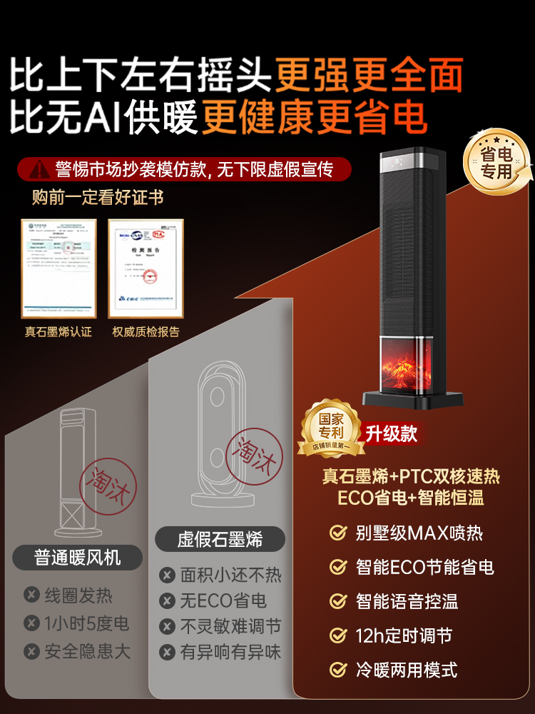 Heater Fan 2025 New Model for Whole House Large Area Home Use Ai Energy-Saving Electricity-Saving Heating Bathroom Device for Winter