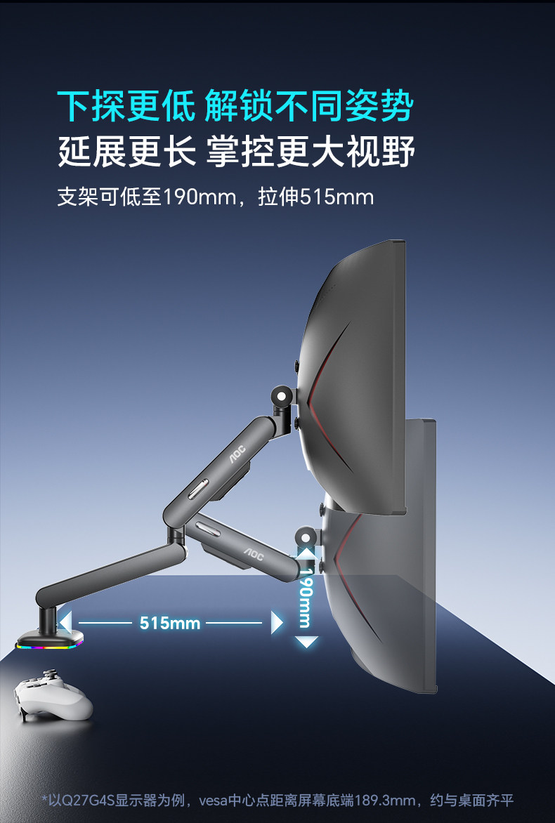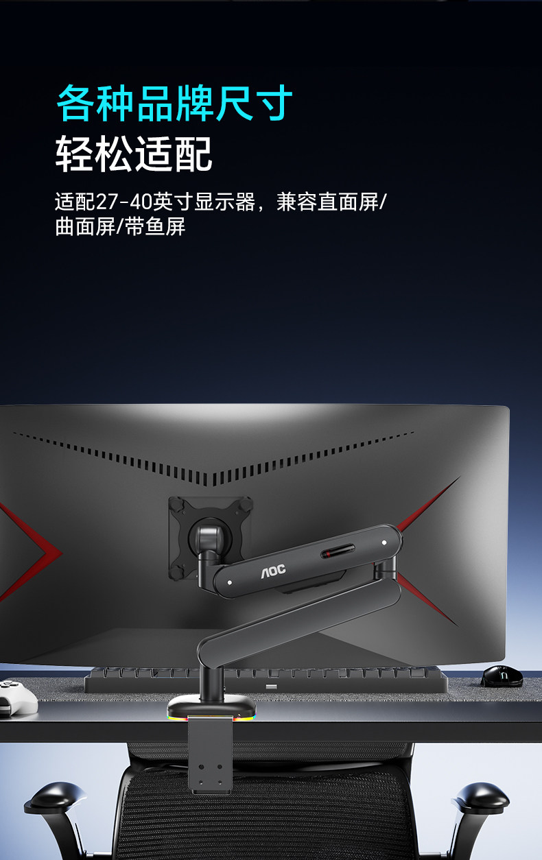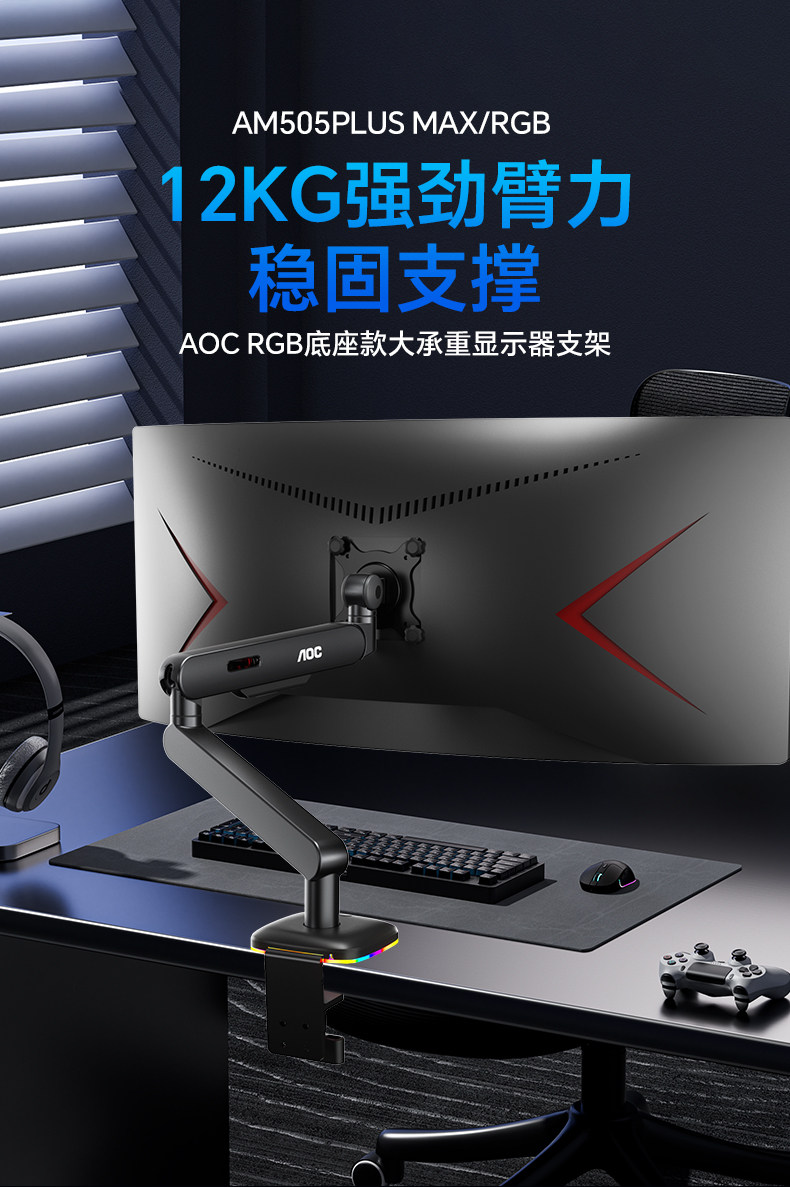 Aoc High Load-Bearing Am505Pmr Internet Cafe Model 12kg Monitor Stand Rgb Base Mechanical Arm Computer Screen