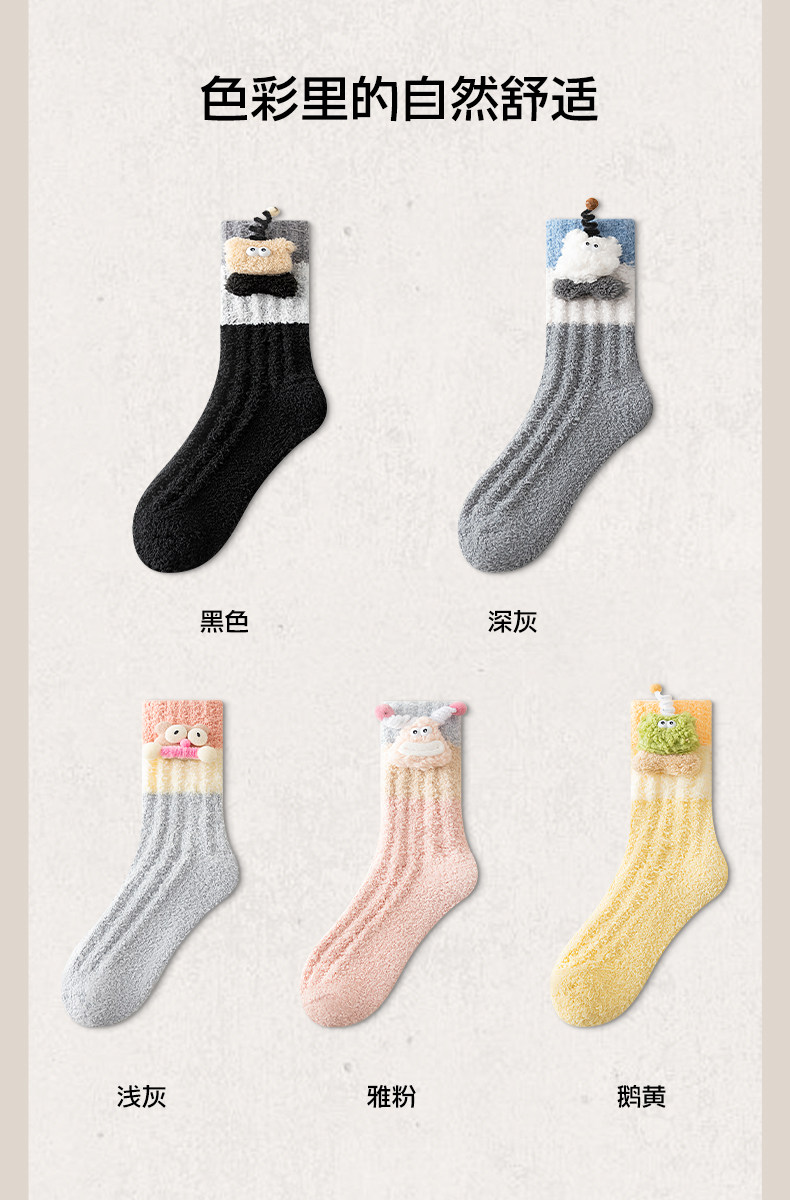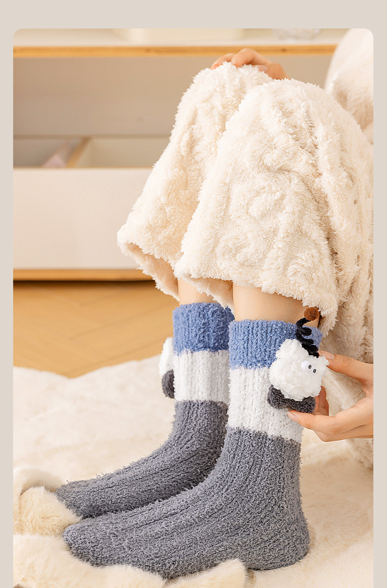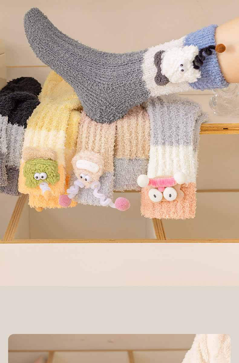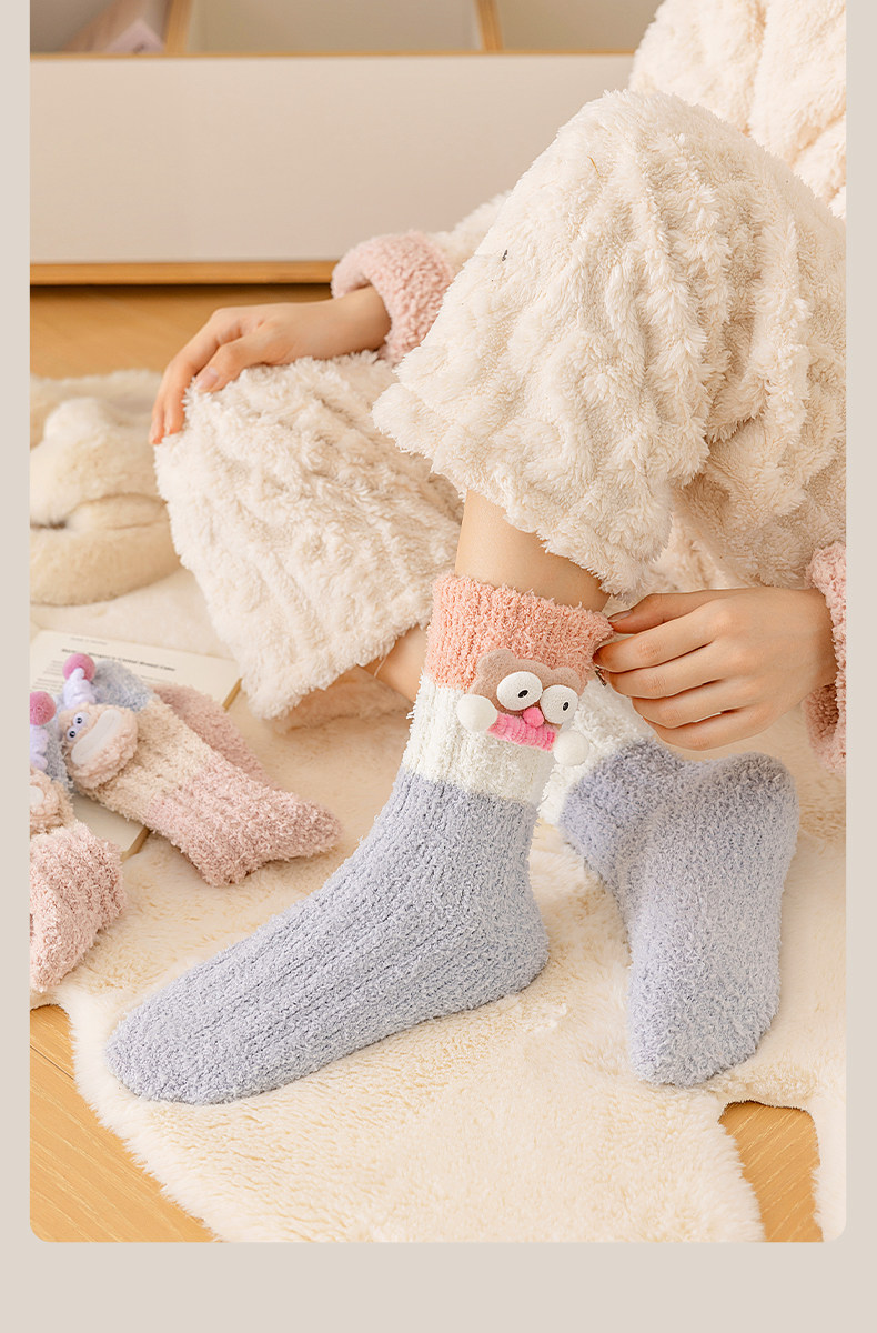 Coral Fleece Socks for Women, Autumn and Winter Mid-Calf Socks, Thickened, Cute Cartoon Style, Sleep Socks, Cold-Resistant, Warm, Home Floor Socks