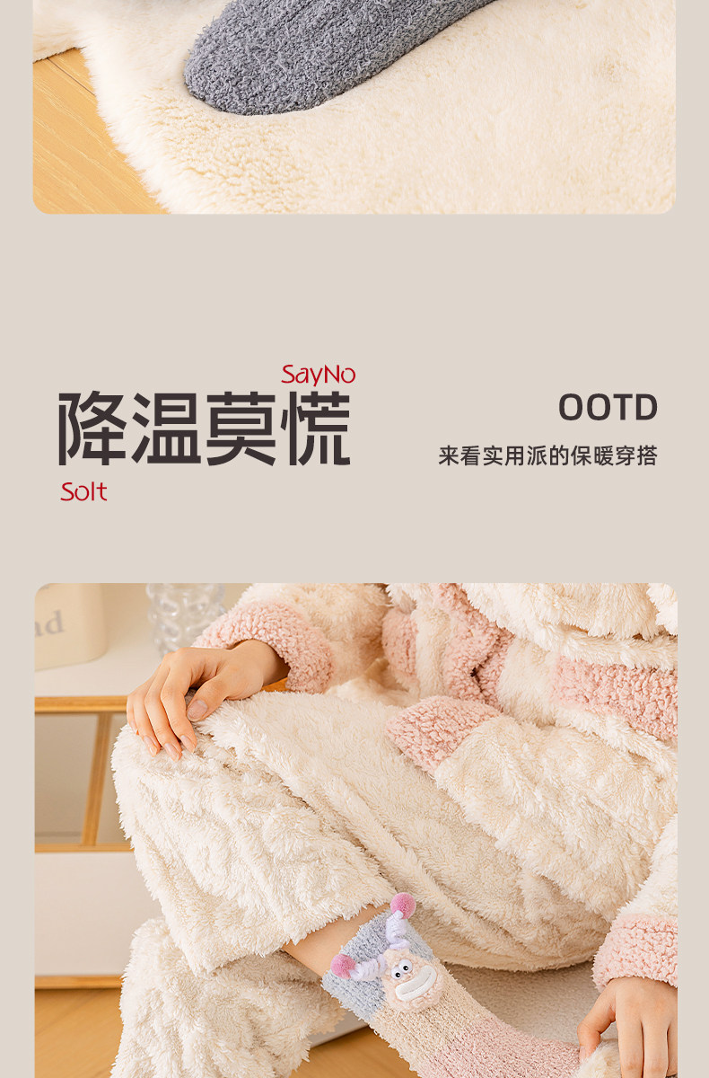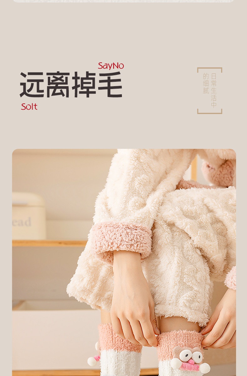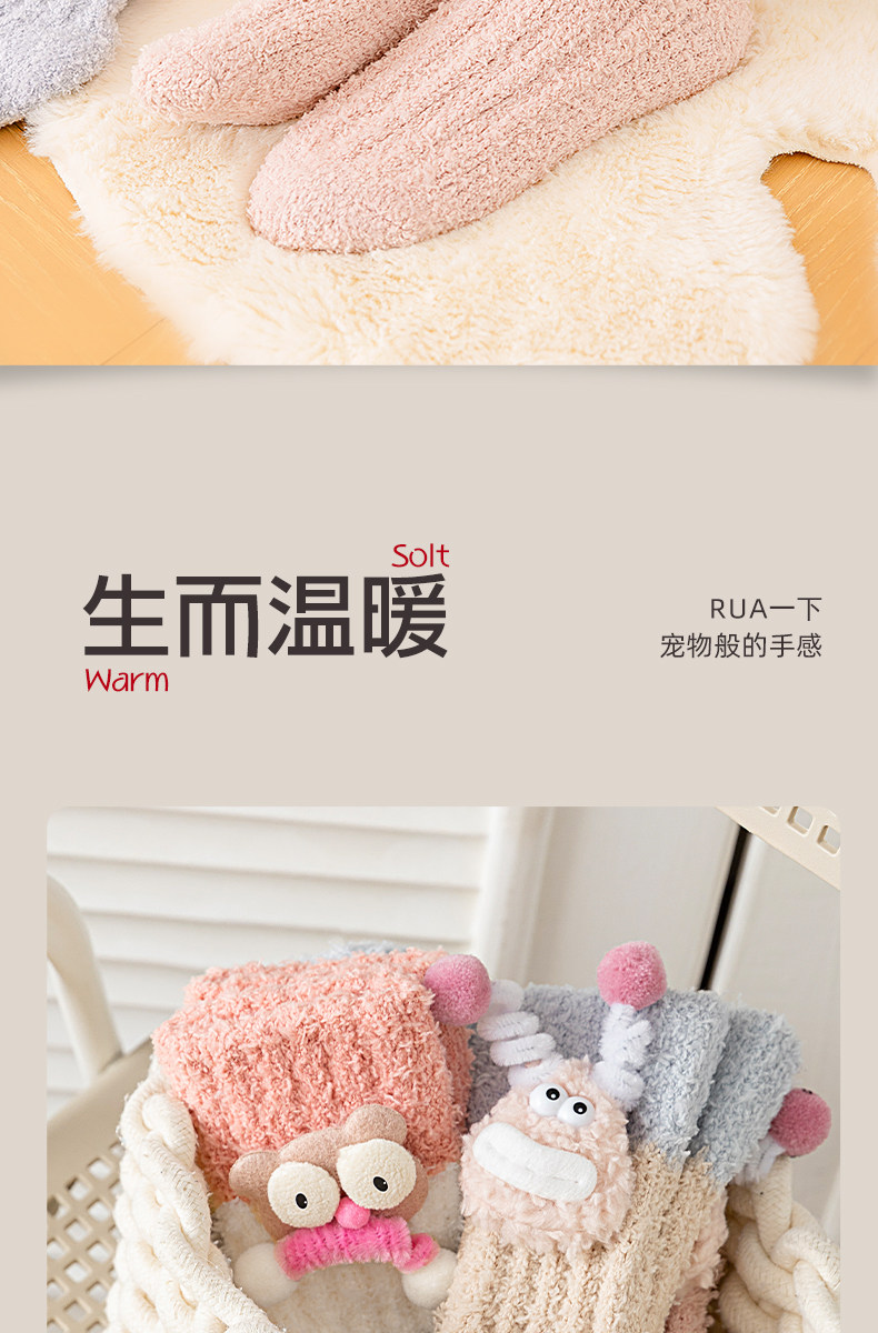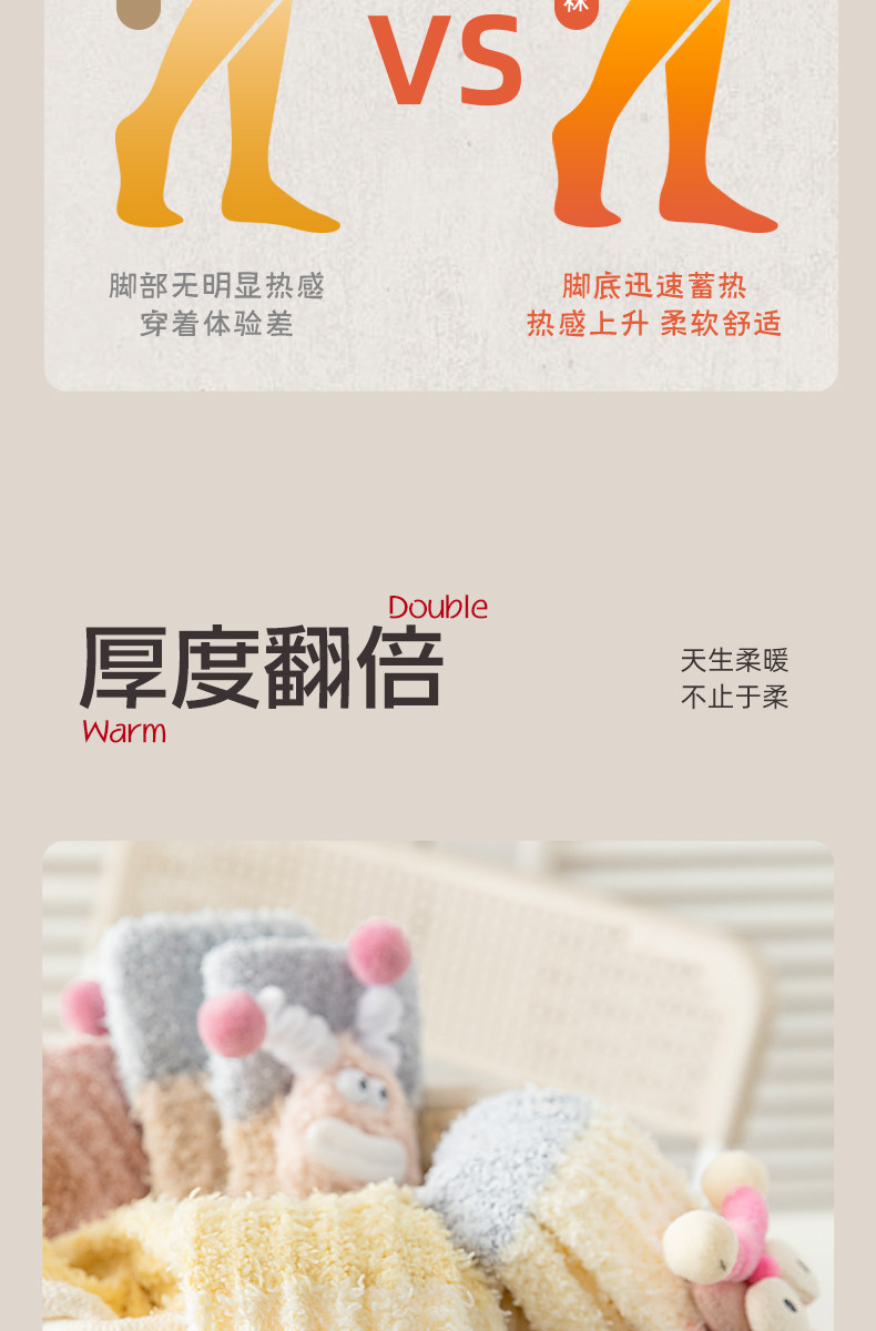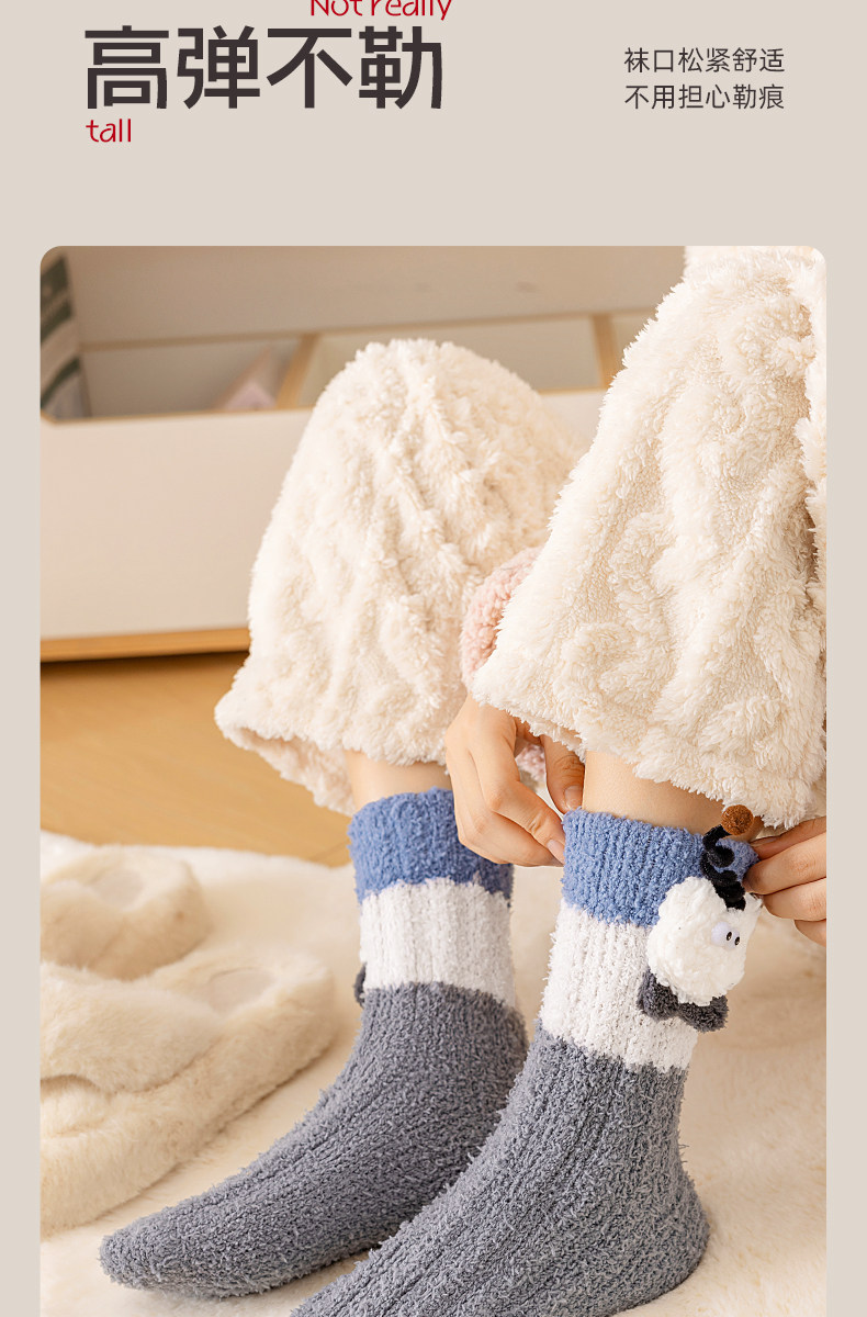Coral Fleece Socks for Women, Autumn and Winter Mid-Calf Socks, Thickened, Cute Cartoon Style, Sleep Socks, Cold-Resistant, Warm, Home Floor Socks