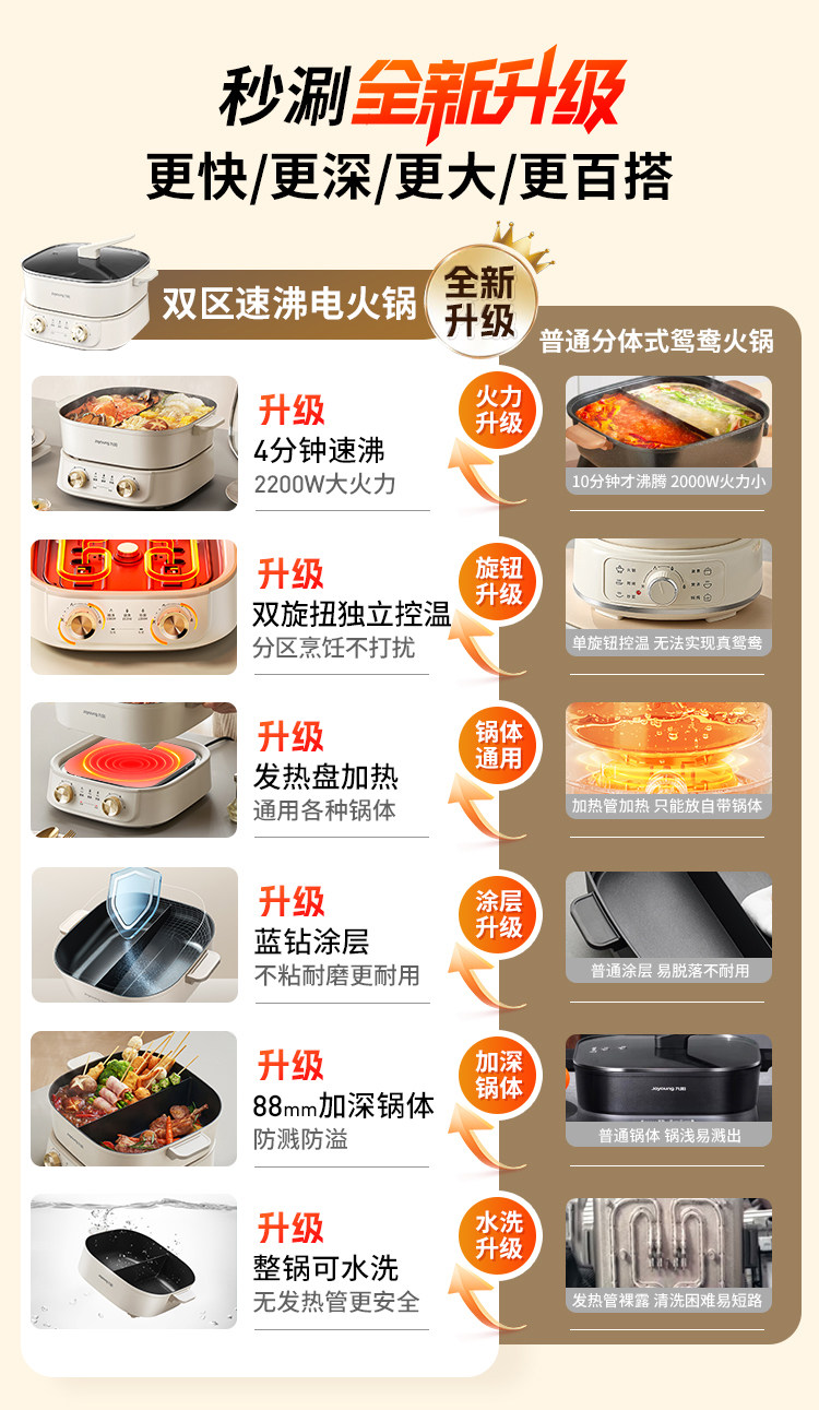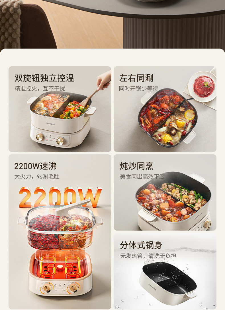 Joyoung Instant Hot Pot Electric Hot Pot for Home Use, Multifunctional Detachable Quick-Boil Electric Hot Pot, Electric Cooking Pot for Frying and Stir-Frying, New Product