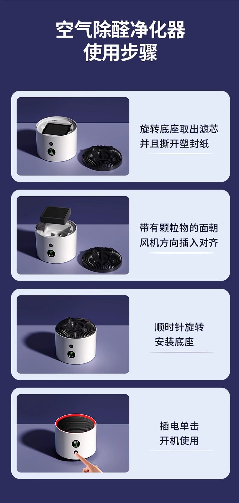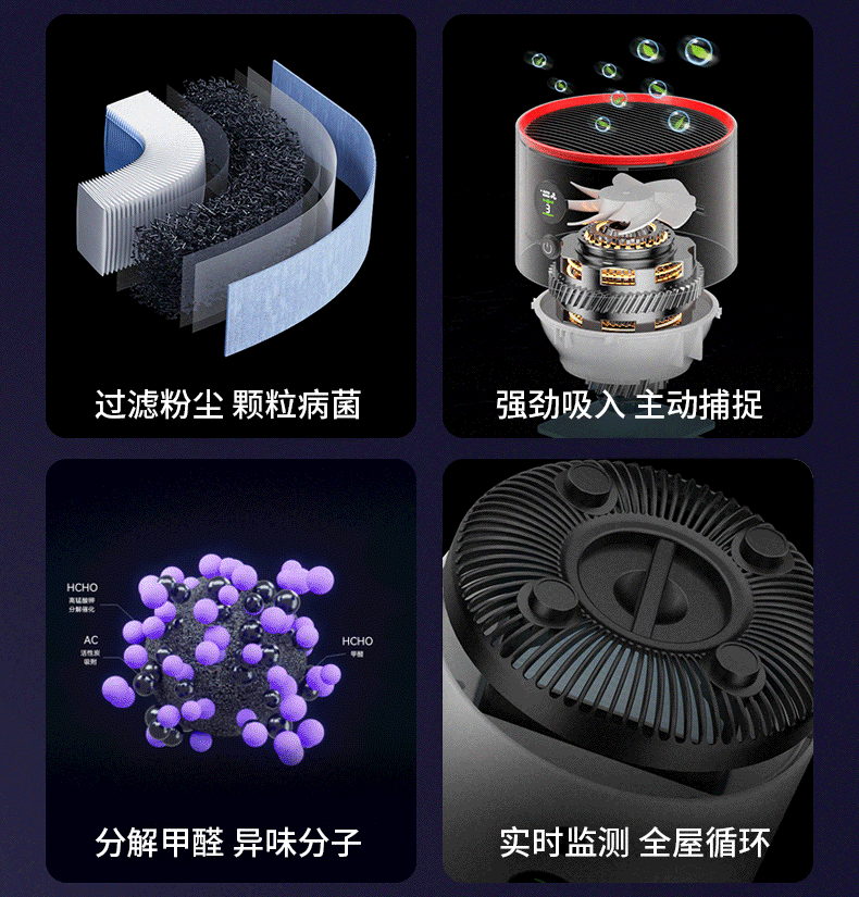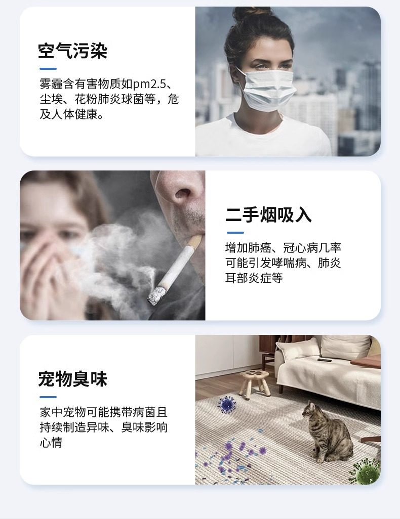 | Function | Sterilization,Remove Particulate Matter,Deodorant,Remove Voc,Smoke and Dust Removal,Remove Formaldehyde,Sucking Cat Hair,Remove Pollen,Remove Odor |