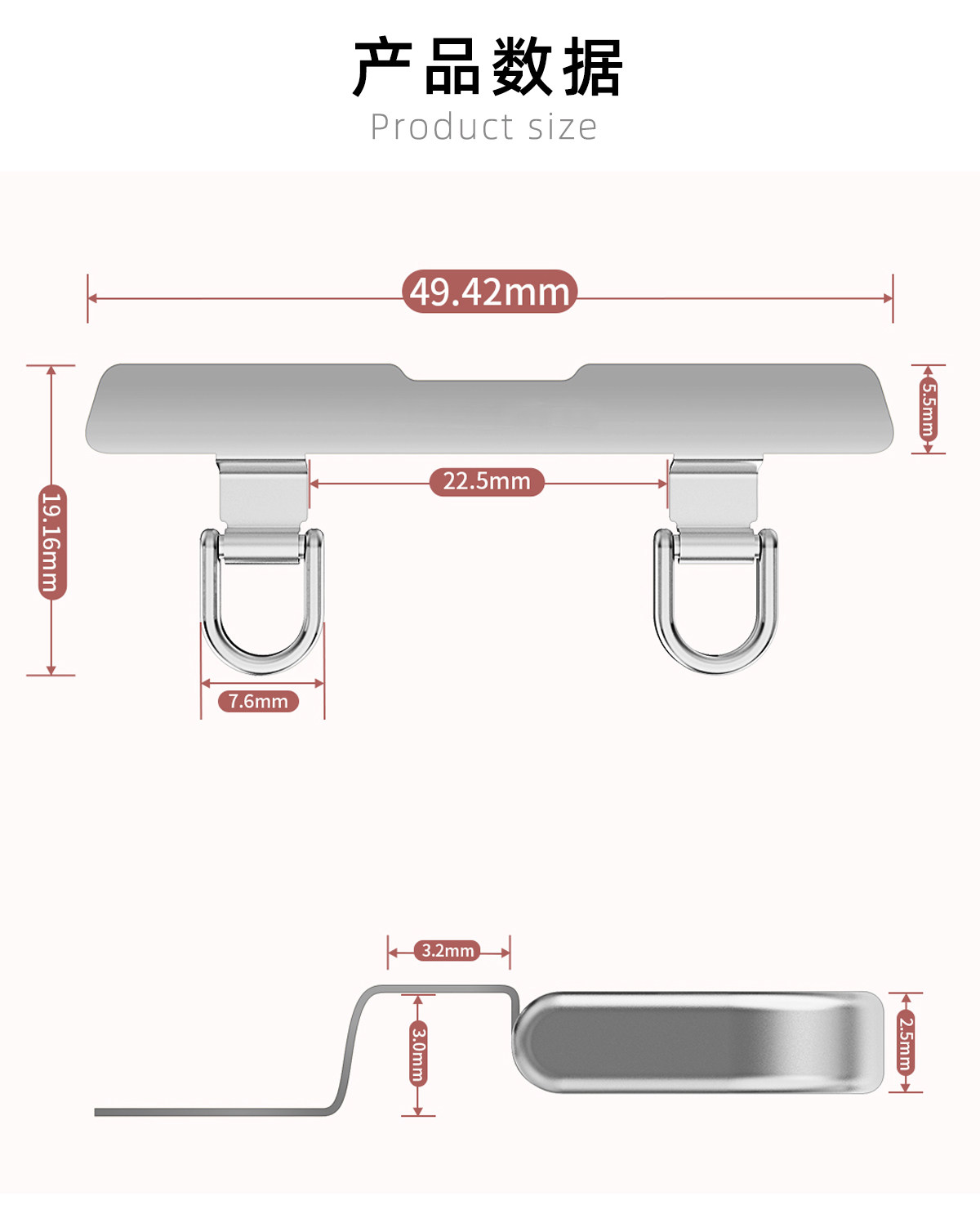 Geuamn and Dream Are Suitable for Apple Mobile Phones, with a 0.2m Ultra-Thin Metal Stainless Steel Double-Ear Lanyard and Double Buckle Clip