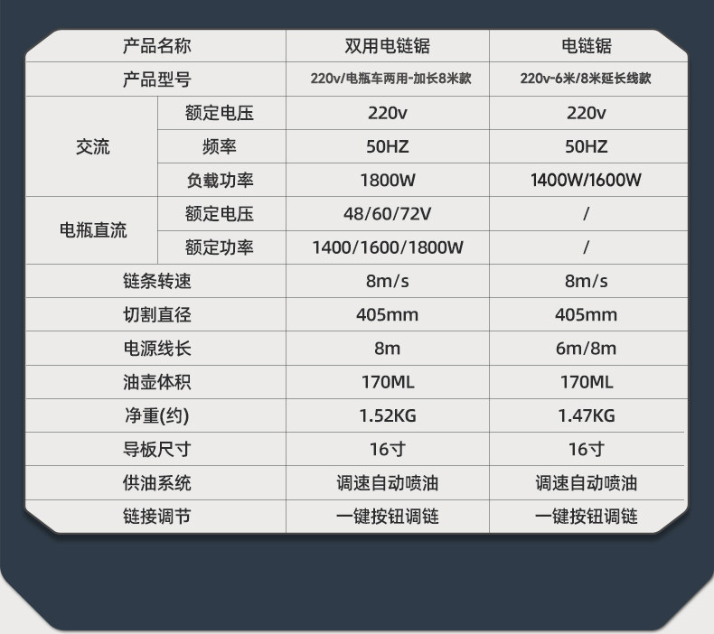 | Color Classification | [All-Purpose Logging Axe - 6m Series]220V 16inch +3 Original Chains + Polishing Set,[All-Purpose Logging Axe - 6m Series]220V 16inch +4 Original Chains + Polishing Set,[All-Purpose Logging Axe - 6m Series]220V 16inch +5 Original Chains + Polishing Set,[All-Purpose Logging Axe - 8m Series]220V 16inch +3 Original Chains + Polishing Set,[All-Purpose Logging Axe - 8m Series]220V 16inch +4 Original Chains + Polishing Set,[All-Purpose Logging Axe - 8m Series]220V 16inch +5 Original Chains + Polishing Set,[All-Purpose Logging Model· 8m Lines Dual-Purpose]Plug-In Electric Scooter 220V 16inch + 3 Original Chains + Polishing Kit,[All-Purpose Logging Model· 8m Lines Dual-Purpose]Plug-In Electric Scooter 220V 16inch + 4 Original Chains + Polishing Kit,[All-Purpose Logging Model· 8m Lines Dual-Purpose]Plug-In Electric Scooter 220V 16inch + 5 Original Chains + Polishing Kit |