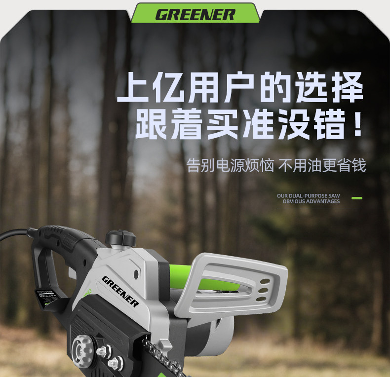 Green Forest Electric Chainsaw for Home Use, High-Power Heavy-Duty Outdoor Logging Tool, Electric Chain Saw for Home Use, Small Handheld Type