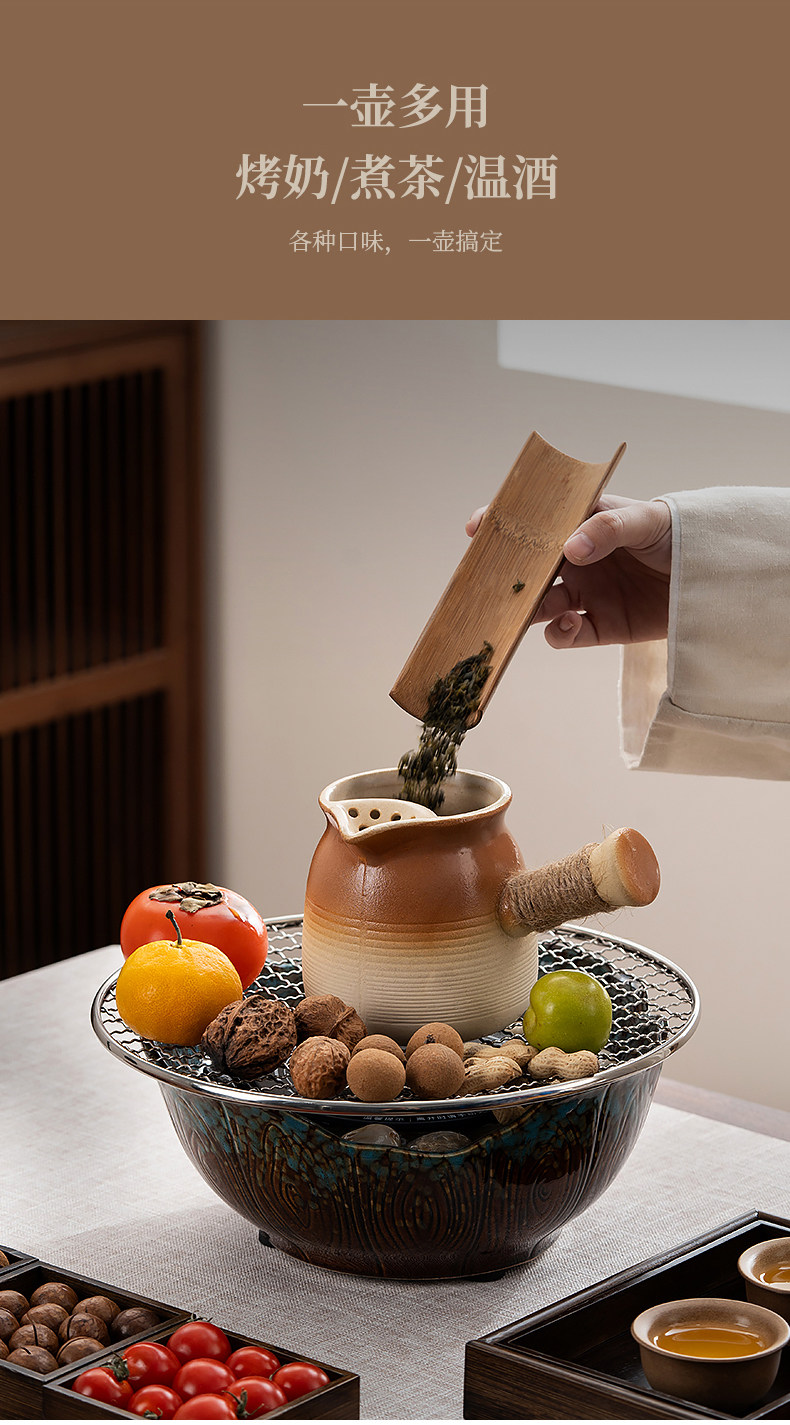 2025 New Model Tea Brewing Set, Complete Indoor Set with Dry-Burning Ceramic Pot, Milk Kettle, Portable Travel Bag