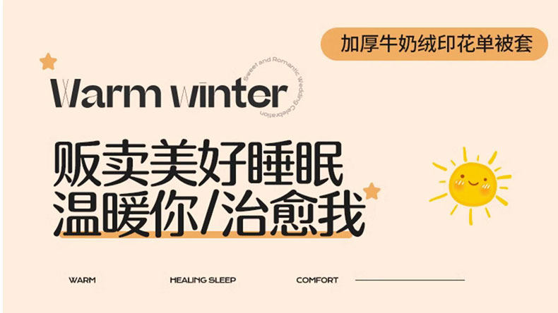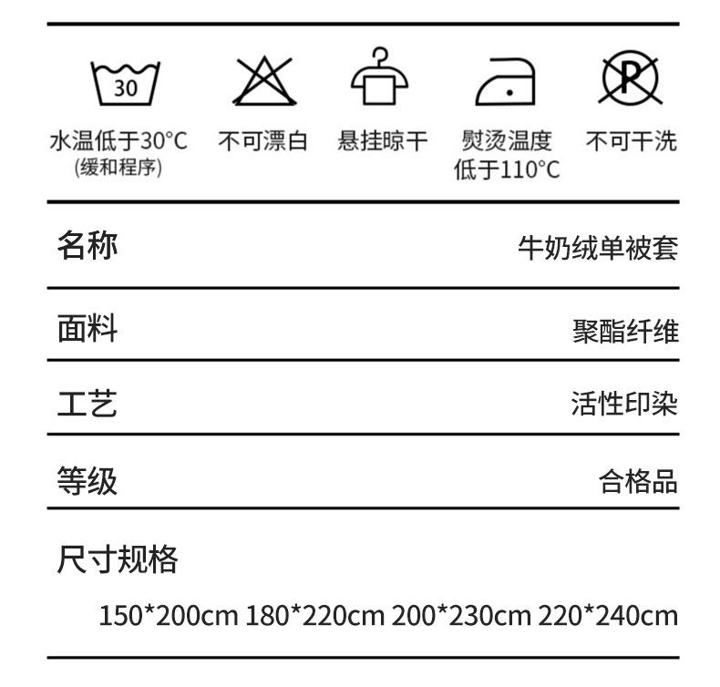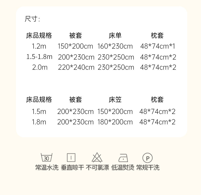 | Applicable Bed Size | Student Bed [Three-Piece Bed Sheet Set] - Suitable for 150X200Cm Quilt Core,1.2m Bed [Three-Piece Bed Sheet Set] - Suitable for 150X200Cm Quilt Core,1.5m Bed [Sheet Set of Four] - Suitable for 200X230Cm Quilt Core,1.8m Bed [Sheet Set of Four] - Suitable for 200X230Cm Quilt Core,2.0m Bed [Sheet Set of Four] - Suitable for 220X240Cm Quilt Core,150X200Cm Single Piece Quilt Cover [Double-Sided Plus Velvet, Double Warmth],200X230Cm Single Piece Quilt Cover [Double-Sided Plus Velvet, Double Warmth],220X240Cm Single Piece Quilt Cover [Double-Sided Plus Velvet, Double Warmth] |