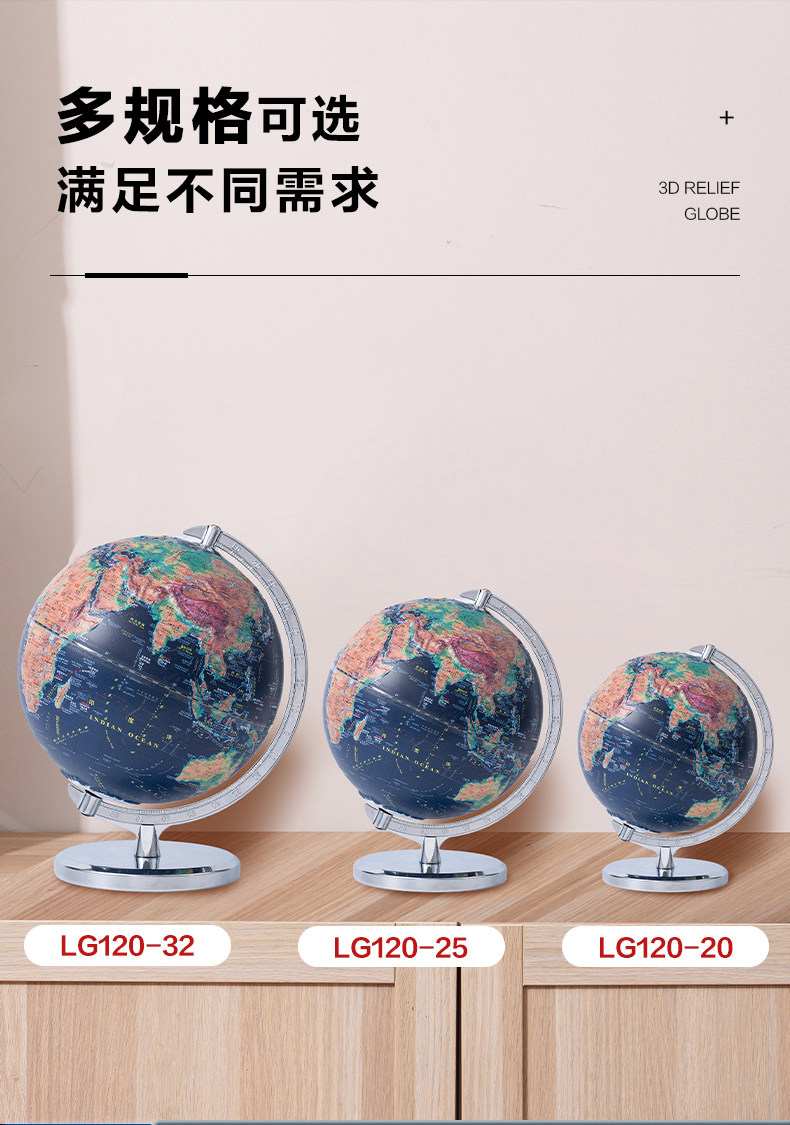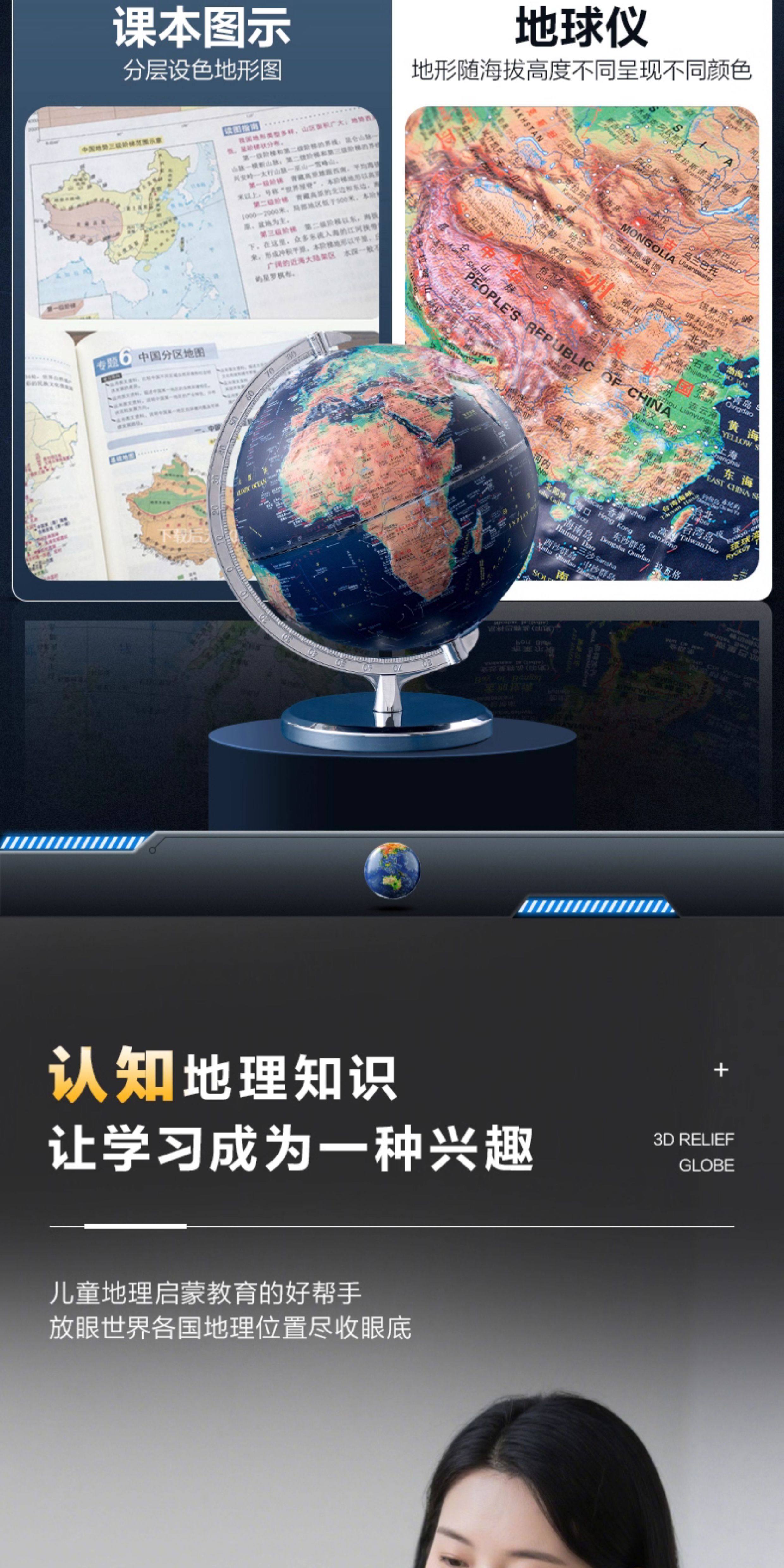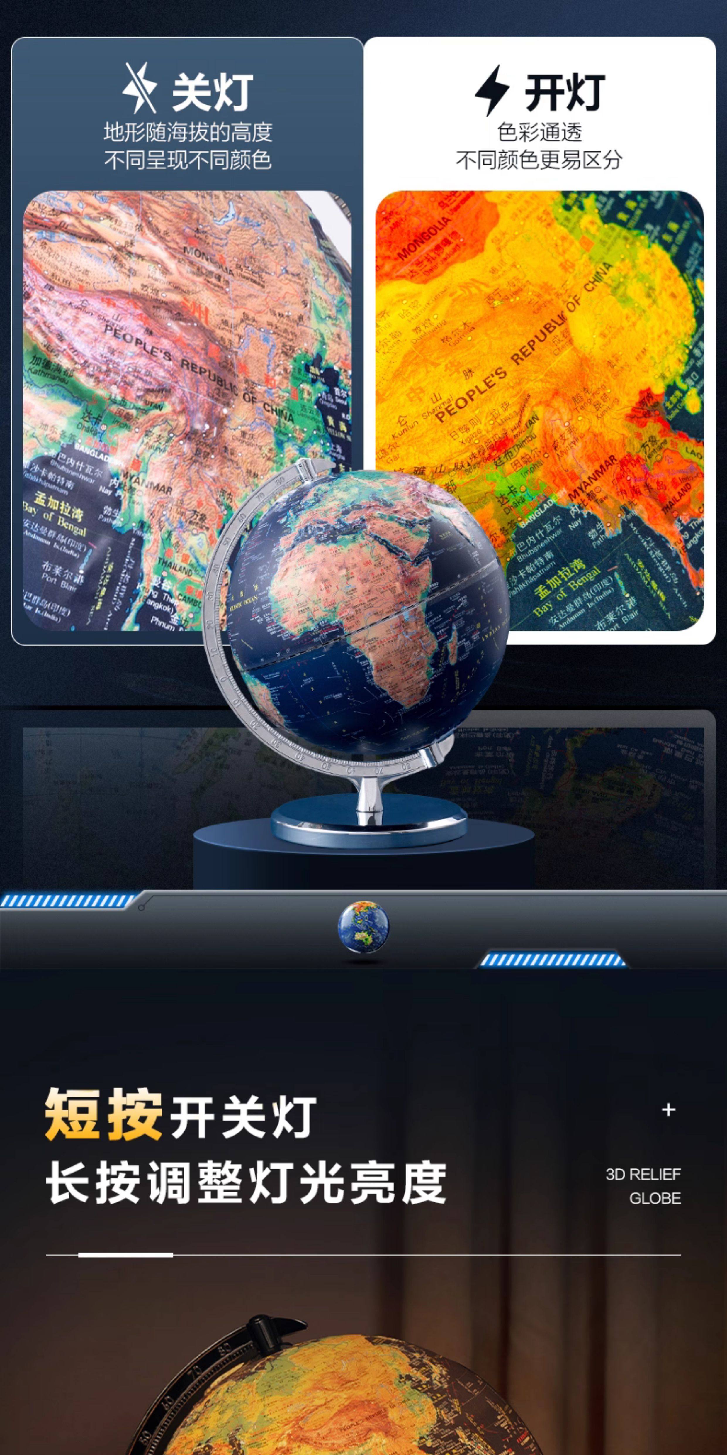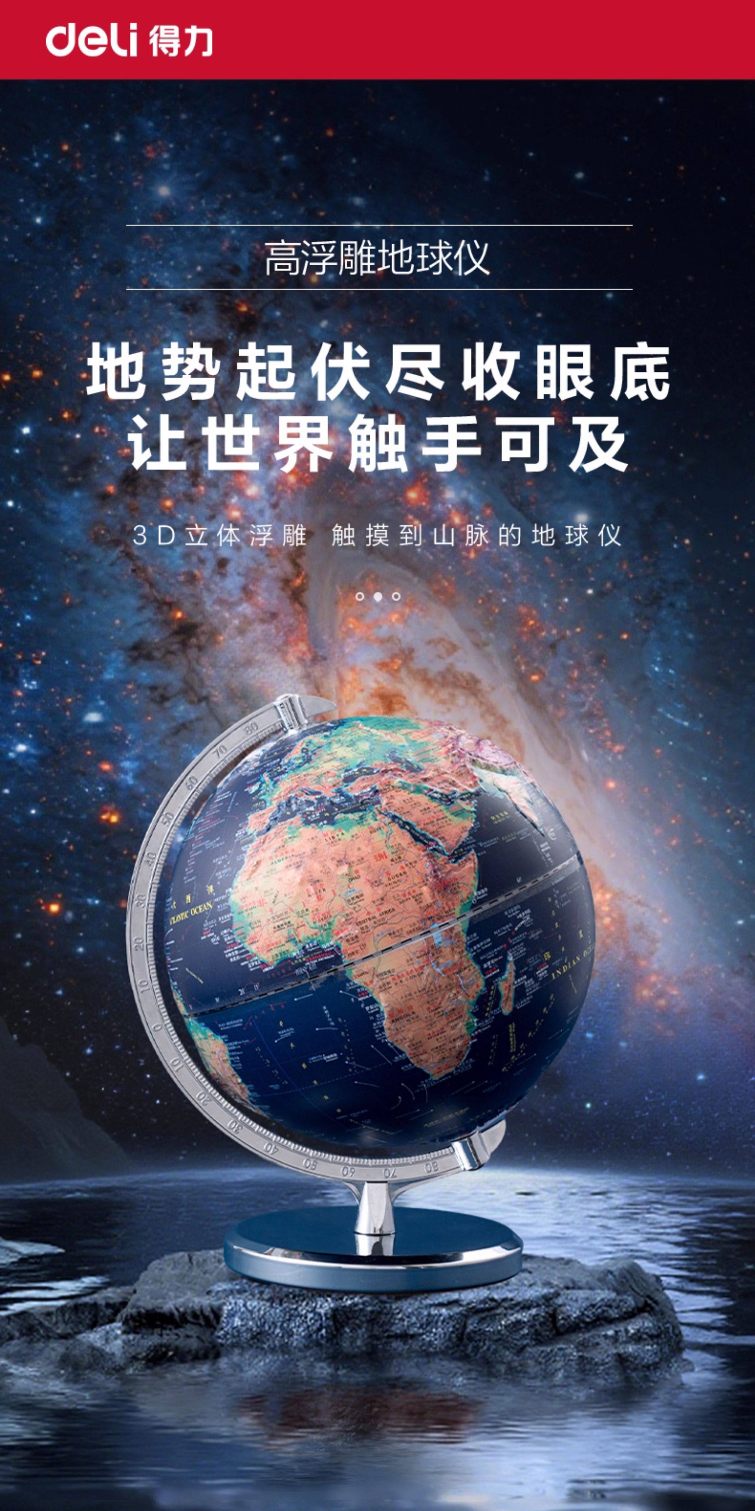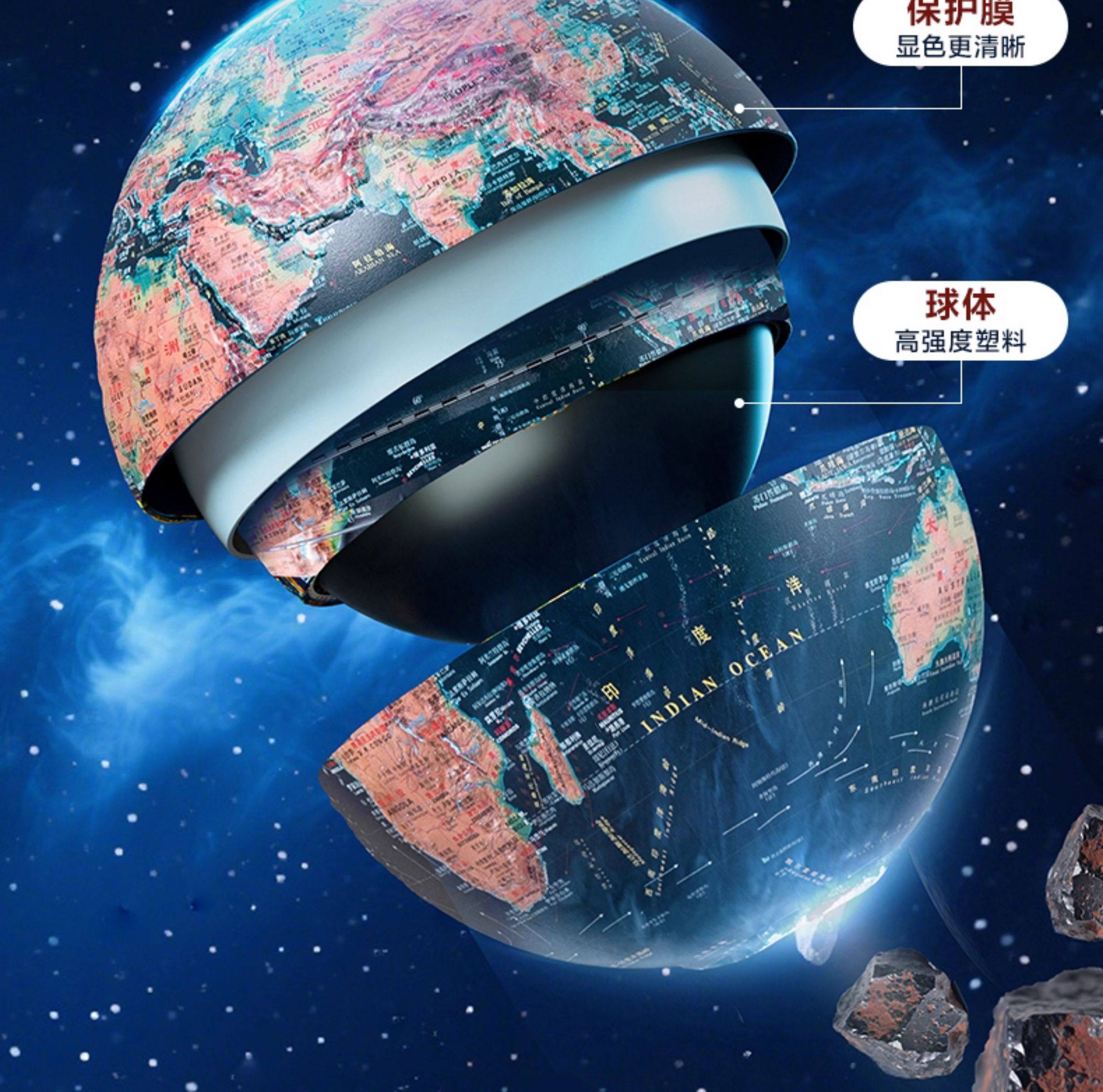Deli Ar Relief Globe 6mm Thickened Smart Globe Authentic 3D Relief Topography and Landform Educational Large High-Definition Gift for Children's Day