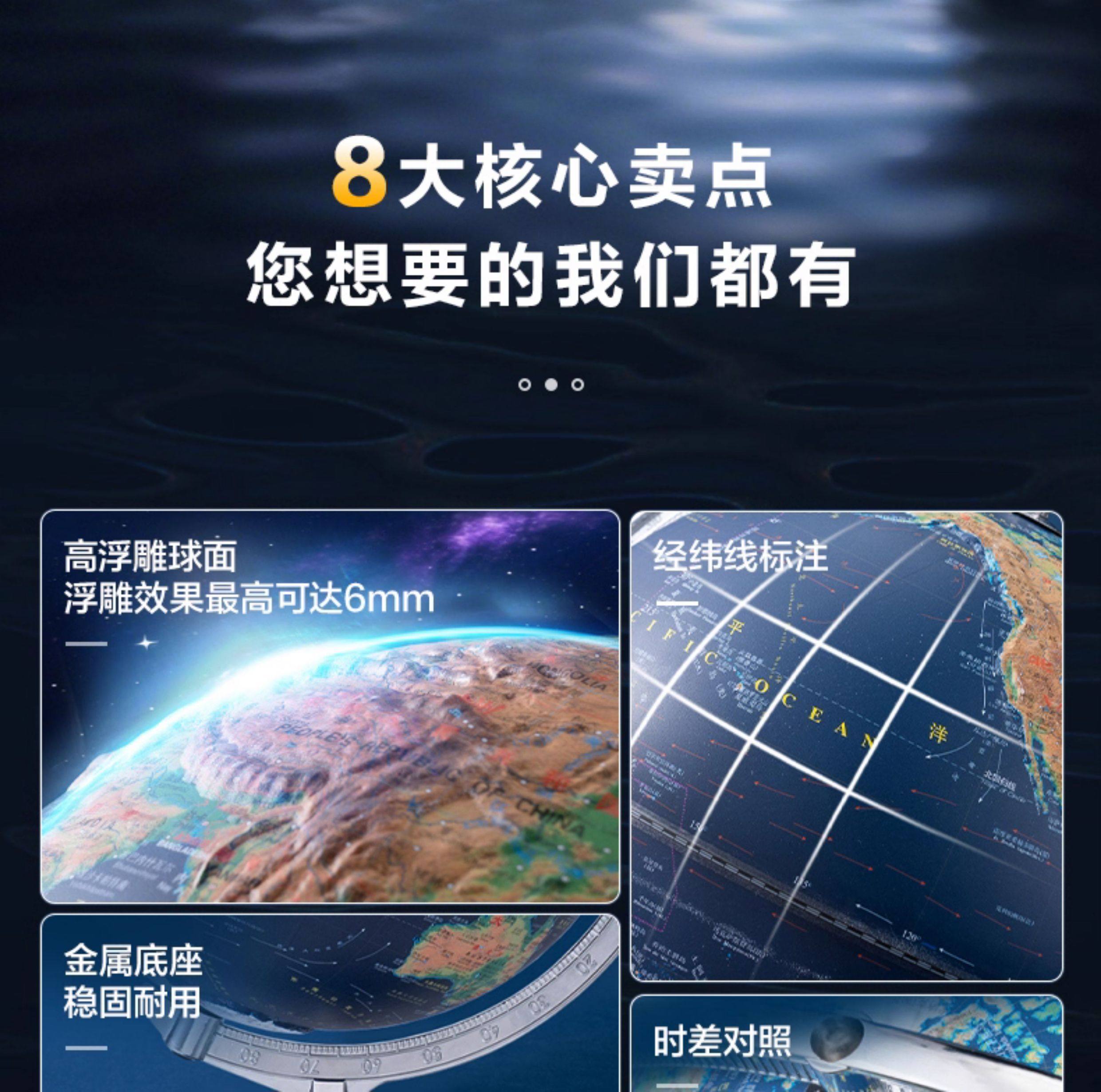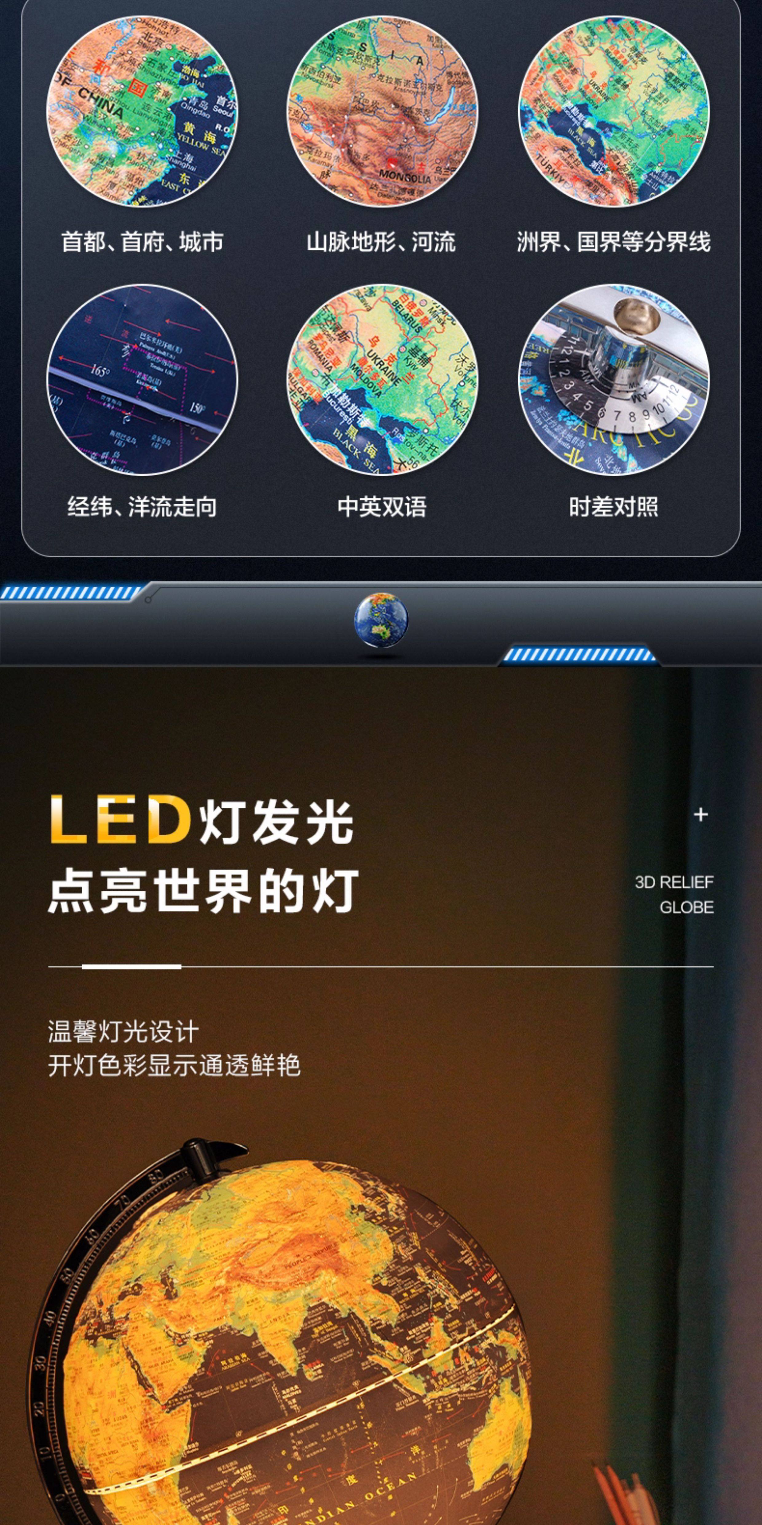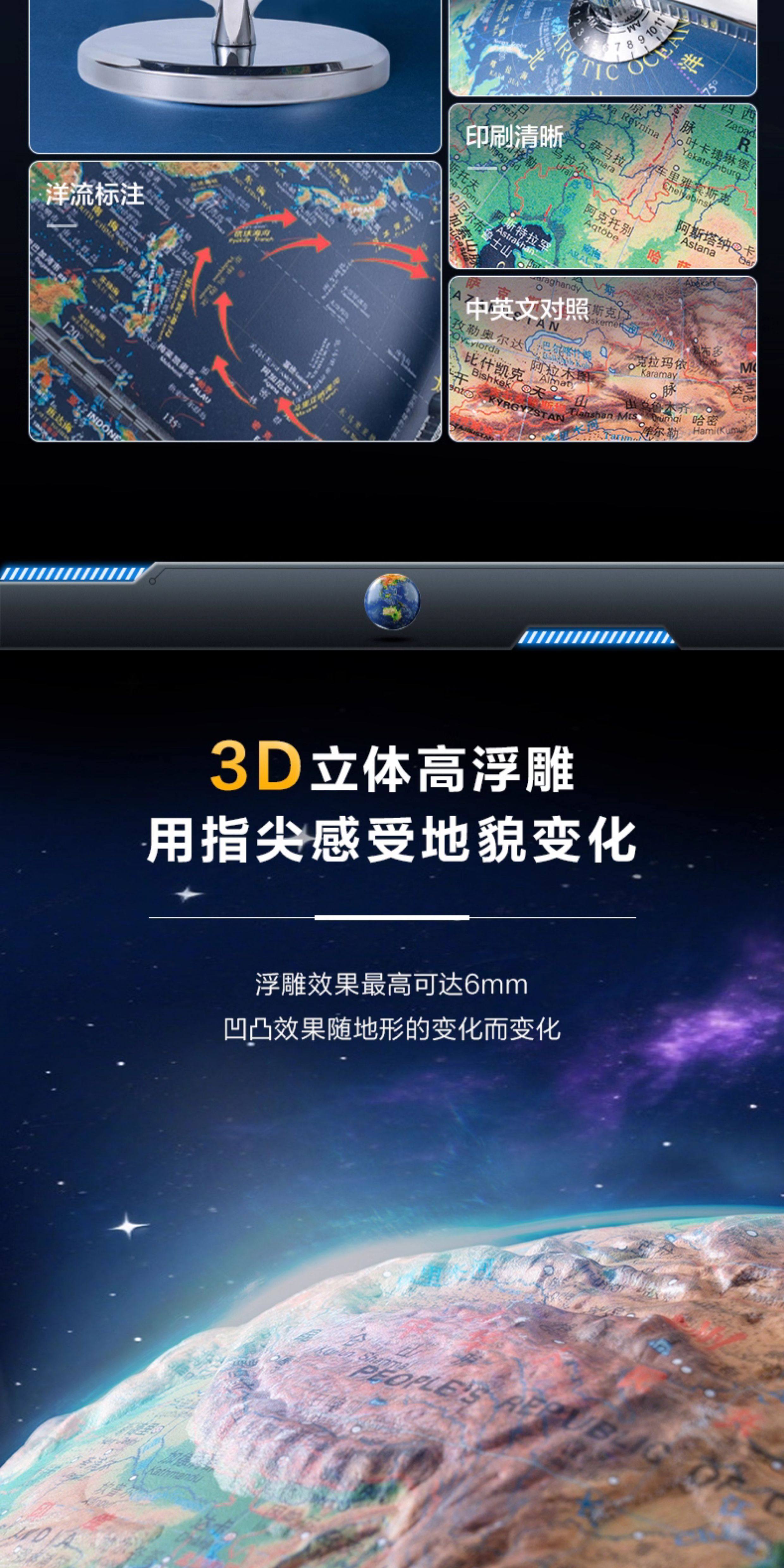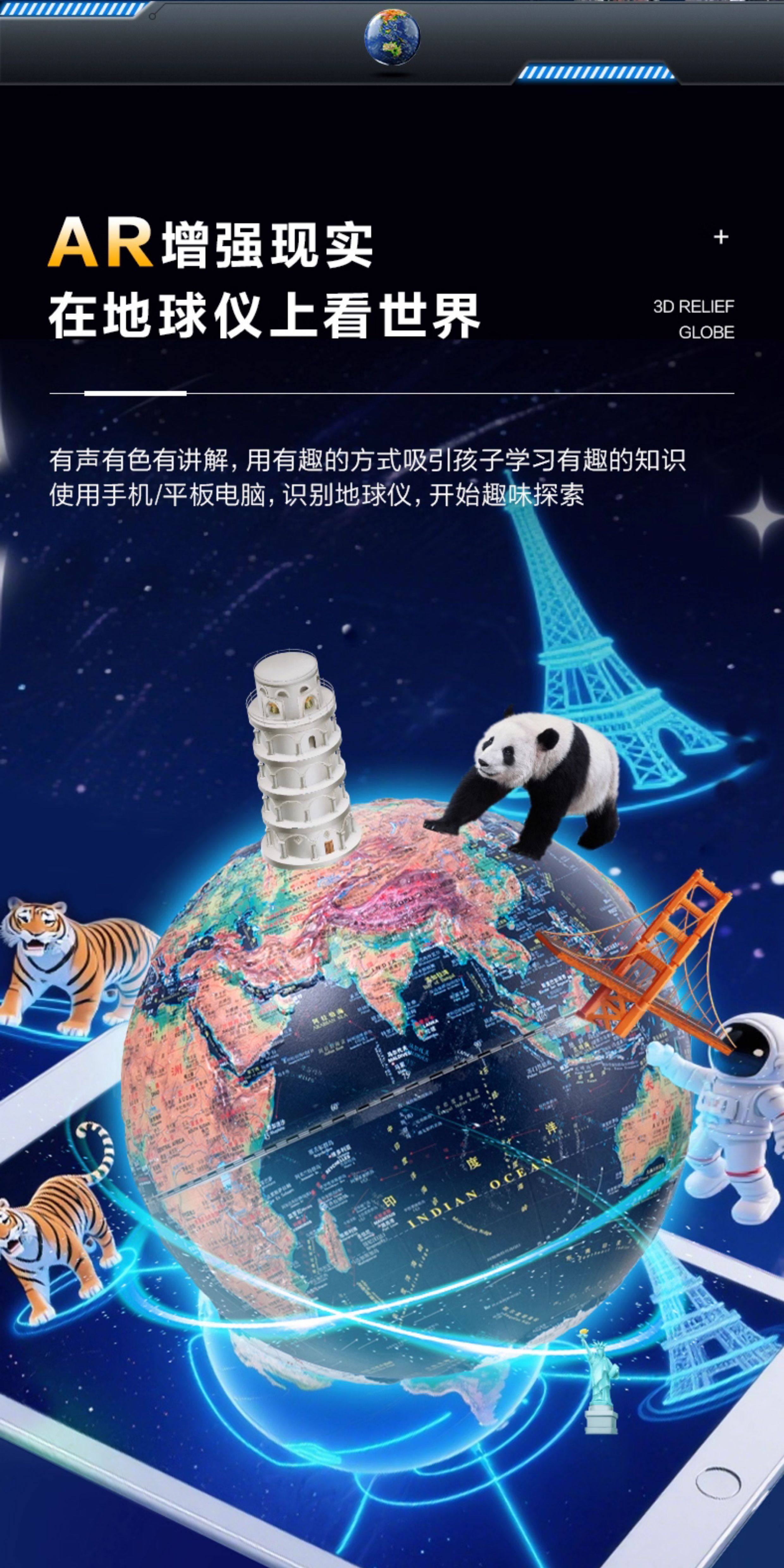 Deli Ar Relief Globe 6mm Thickened Smart Globe Authentic 3D Relief Topography and Landform Educational Large High-Definition Gift for Children's Day