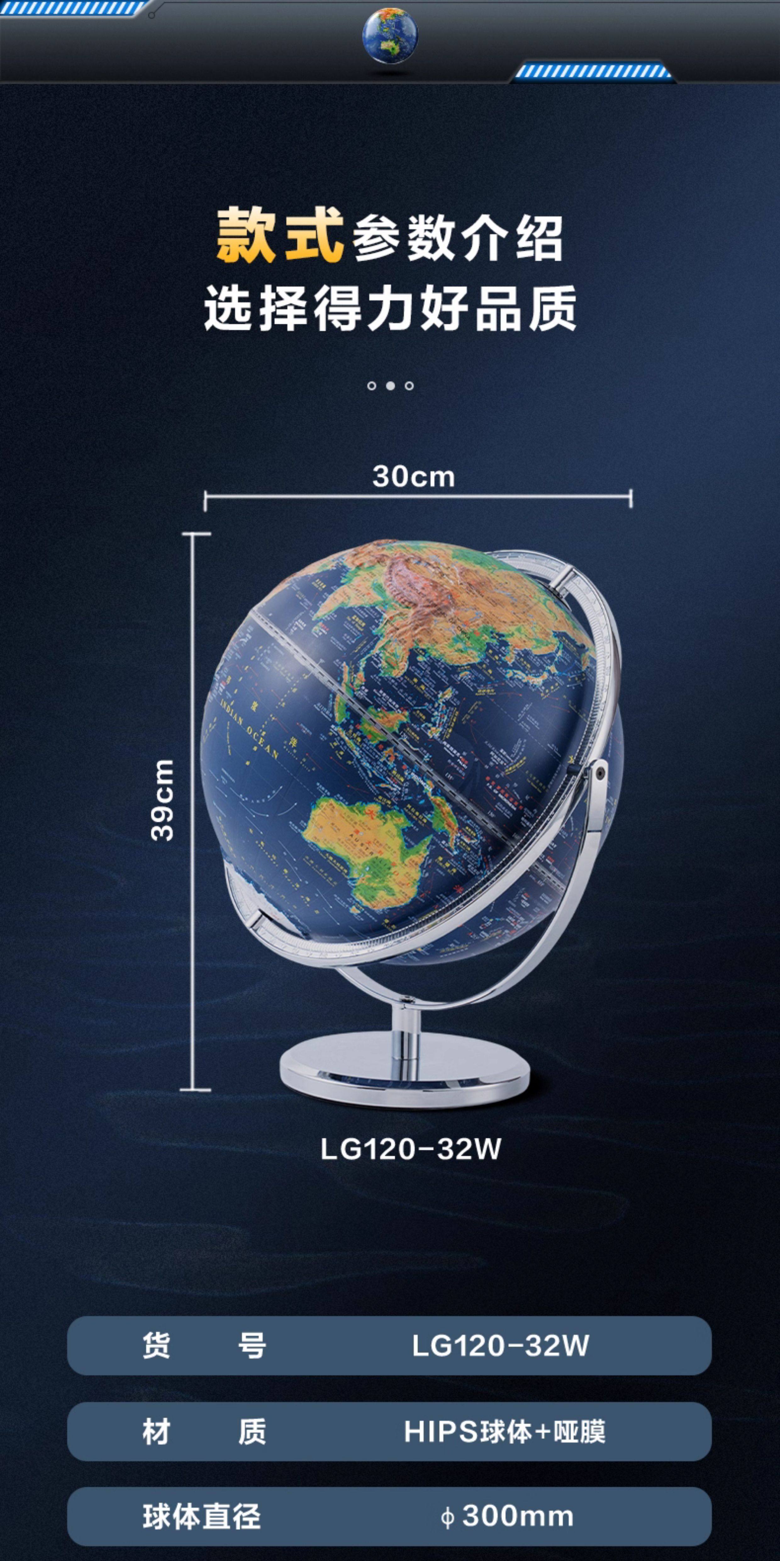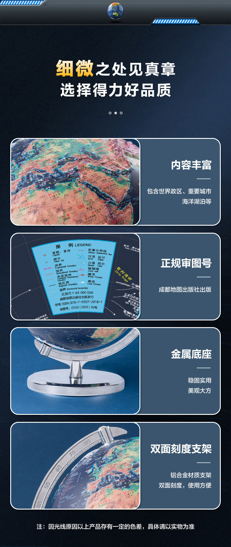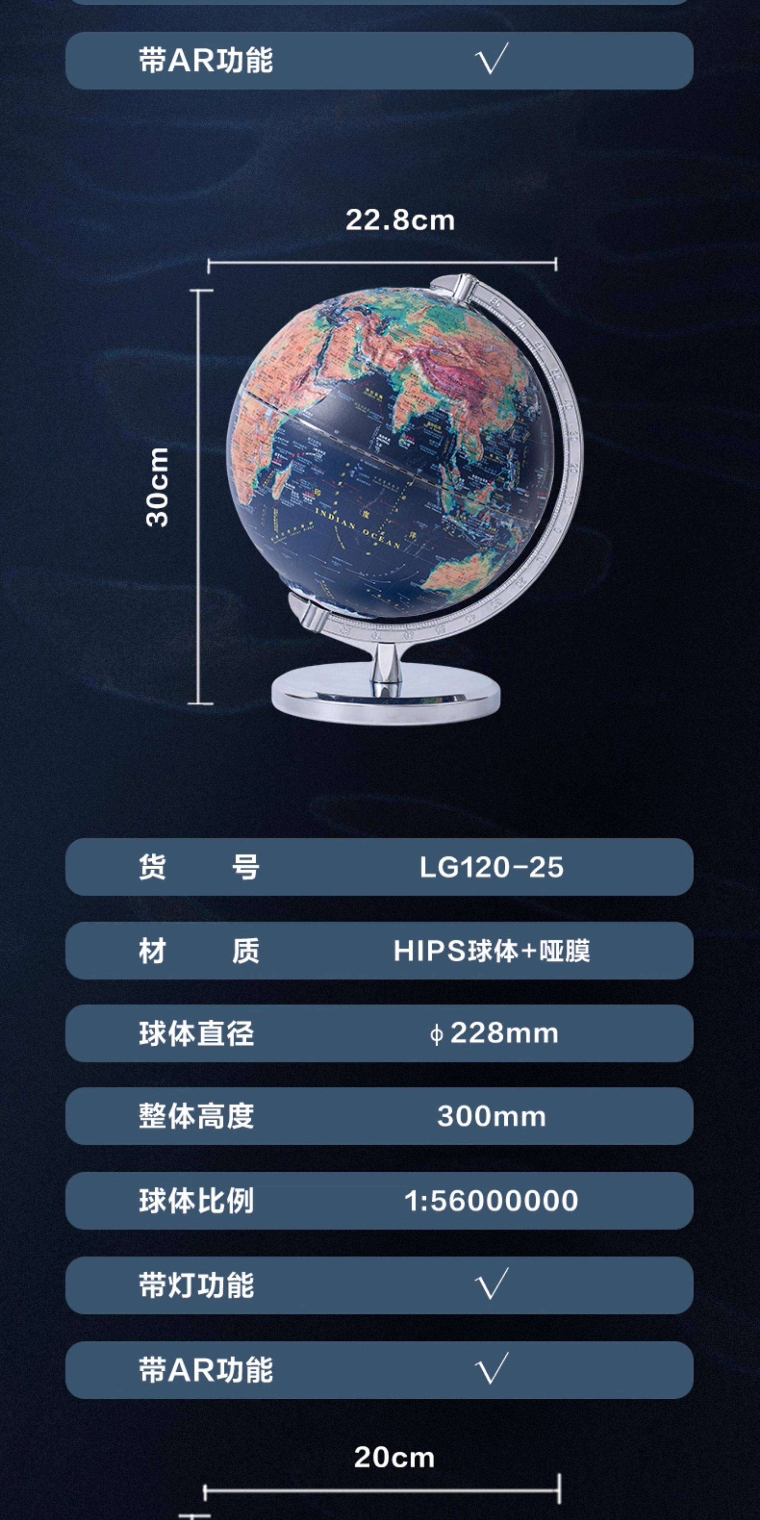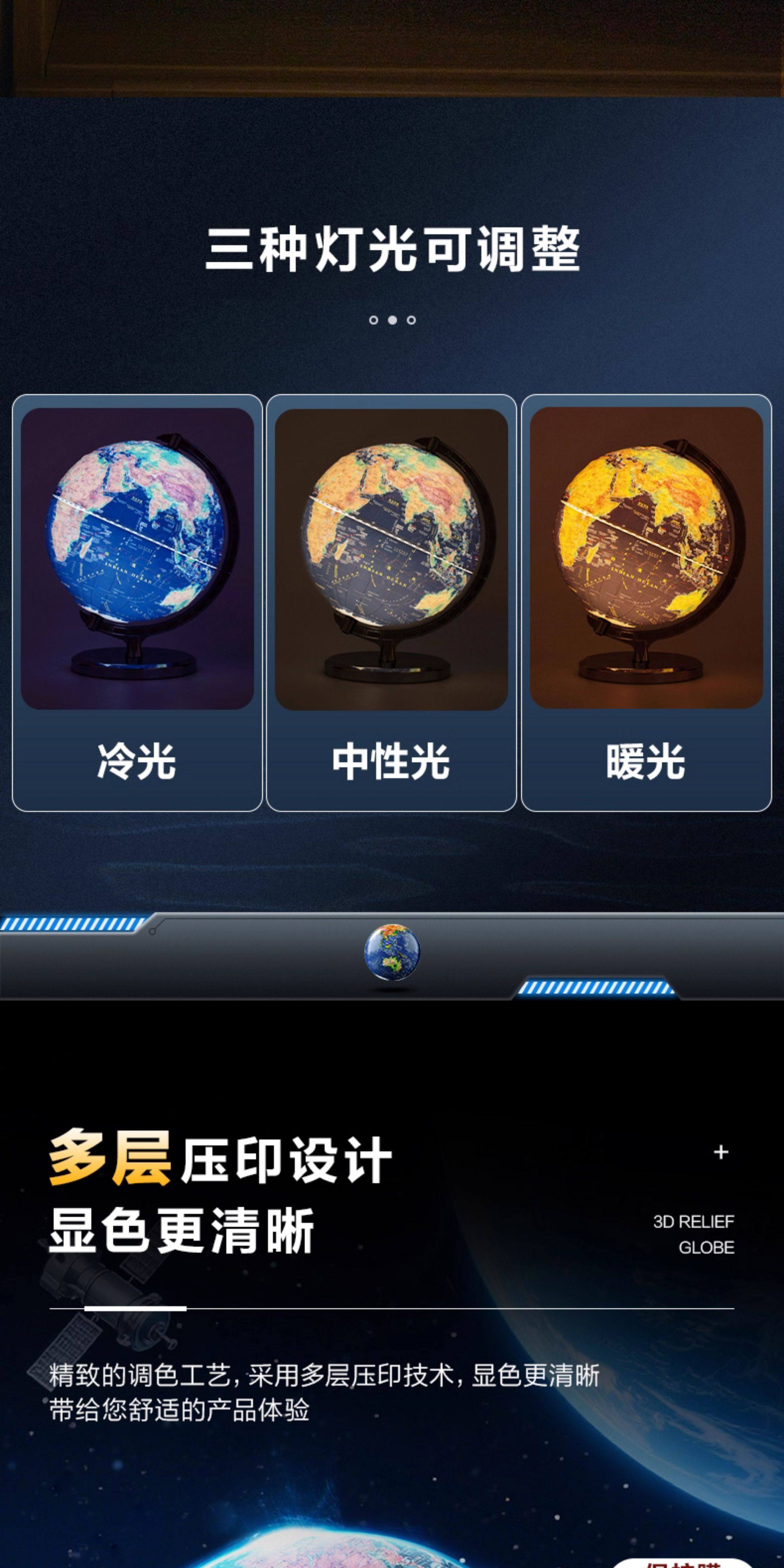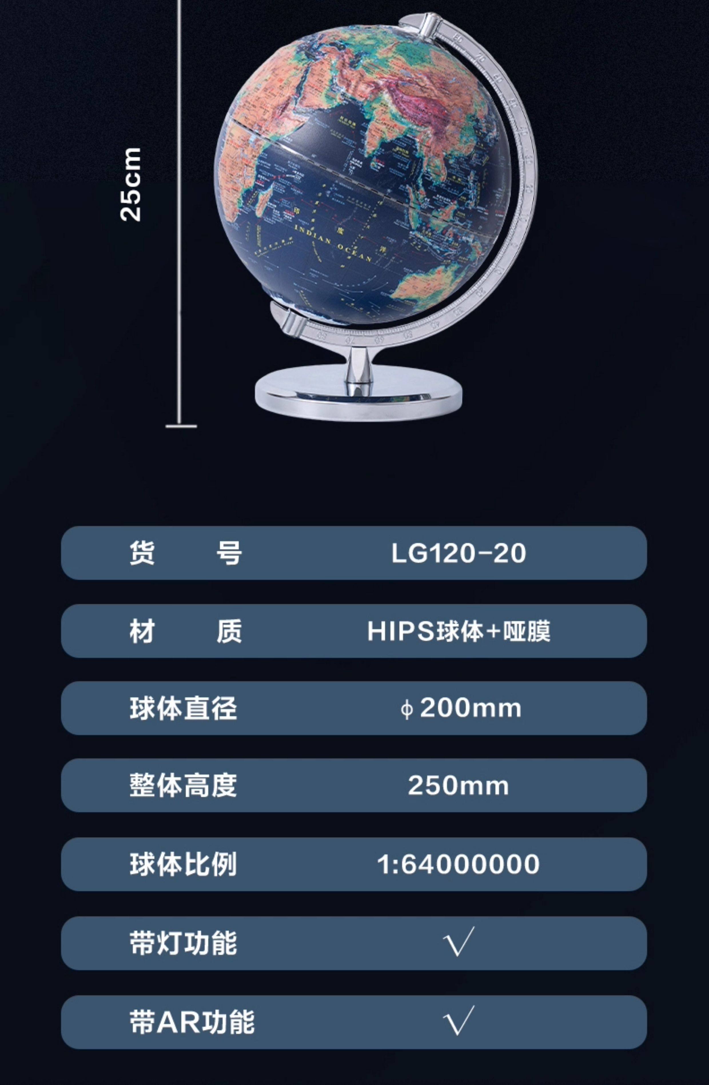 Deli Ar Relief Globe 6mm Thickened Smart Globe Authentic 3D Relief Topography and Landform Educational Large High-Definition Gift for Children's Day