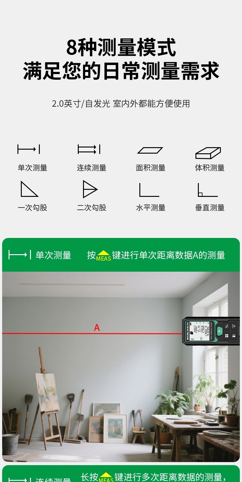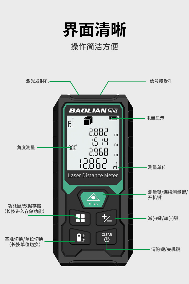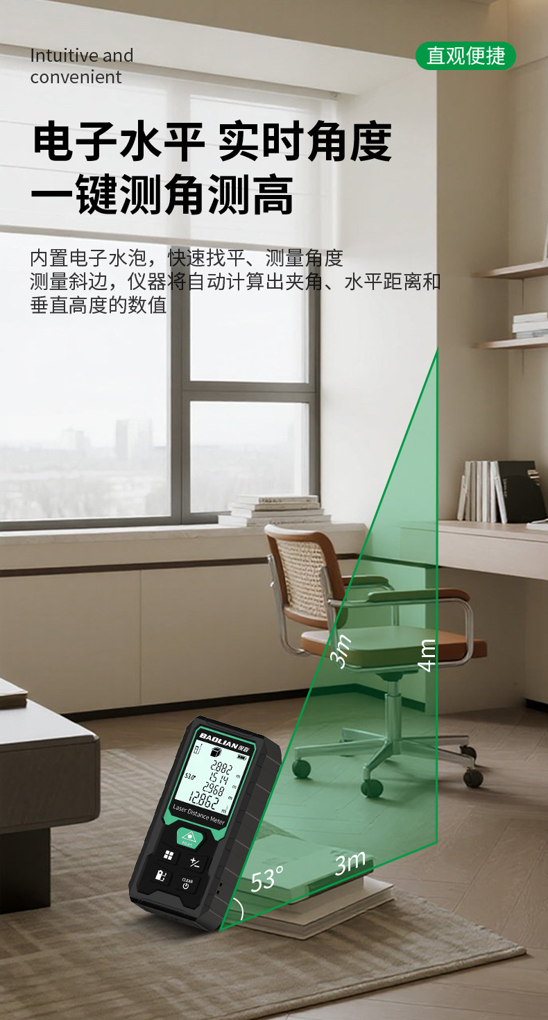 Laser Rangefinder High-Precision Handheld Laser Ruler Electronic Infrared Measuring Ruler Distance Instrument Room Measuring Tool