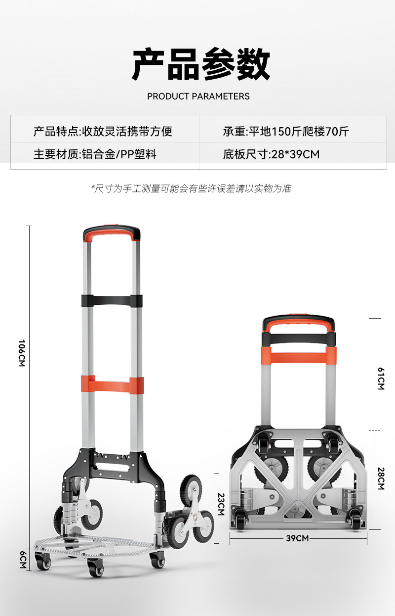 | Color Classification | Orange Handle [Premium Stair Climbing Model] Heavy-Duty Aluminum Alloy Wheel Frame✅Rubber Silent Stair Climbing Wheel + Rope,Orange Handle [Premium Stair Climbing Model] Heavy-Duty Aluminum Alloy Wheel Frame✅Rubber Silent Stair Climbing Wheels + 4 Forward Wheels + Rope,Orange Handle [Premium Stair Climbing Model] Heavy-Duty Aluminum Alloy Wheel Frame✅Rubber Silent Stair Climbing Wheel + Large Capacity Shopping Bag + Rope,Orange Handle [Premium Stair Climbing Model] Heavy-Duty Aluminum Alloy Wheel Frame✅Rubber Silent Stair Climbing Wheels + 4 Omnidirectional Front Wheels + Large Capacity Shopping Bag + Rope,Orange Handle [Flagship Stair Climbing Model] Thickened Aluminum Alloy Wheel Frame✅Tpr Silent Stair Climbing Wheel + Rope,Orange Handle [Flagship Stair Climbing Model] Thickened Aluminum Alloy Wheel Frame✅Tpr Silent Stair Climbing Wheels + 4 Forward Wheels + Rope,Orange Handle [Flagship Stair Climbing Model] Thickened Aluminum Alloy Wheel Frame✅Tpr Silent Stair Climbing Wheel + Large Capacity Shopping Bag + Rope,Orange Handle [Flagship Stair Climbing Model] Thickened Aluminum Alloy Wheel Frame✅Tpr Silent Stair Climbing Wheels + 4 Forward Wheels + Large Capacity Shopping Bag + Rope,Orange Handle [Luxury Stair Climbing Model] Thickened Aluminum Alloy Wheel Frame✅Crystal Climbing Wheel + Rope,Orange Handle [Luxury Stair Climbing Model] Thickened Aluminum Alloy Wheel Frame✅Crystal Climbing Wheel + 4 10,000 Forward Wheels + Rope,Orange Handle [Luxury Stair Climbing Model] Thickened Aluminum Alloy Wheel Frame✅Crystal Climbing Wheel + Large Capacity Shopping Bag + Rope,Orange Handle [Luxury Stair Climbing Model] Thickened Aluminum Alloy Wheel Frame✅Crystal Climbing Wheel + 4 10,000 Forward Wheels + Large Capacity Shopping Bag + Rope,[Upgraded Model] Orange✅Thickened Aluminum Alloy Wheel Frame✅Enlarge Rubber Wheel + Rope,Orange Handle [Upgraded Model] Thickened Aluminum Alloy Wheel Frame✅Enlarged Rubber Wheel + 4 Universal Front Wheels + Rope,Orange Handle [Upgraded Model] Thickened Aluminum Alloy Wheel Frame✅Enlarged Rubber Wheel + Large Capacity Shopping Bag + Rope,Orange Handle [Upgraded Model] Thickened Aluminum Alloy Wheel Frame✅Enlarged Rubber Wheels + 4 Universal Front Wheels + Large Capacity Shopping Bag + Rope |