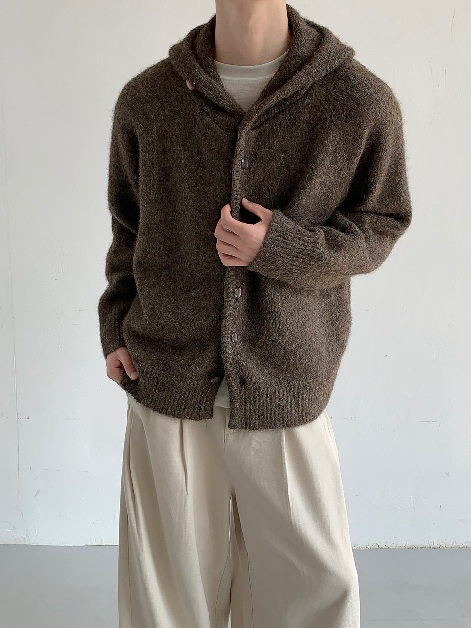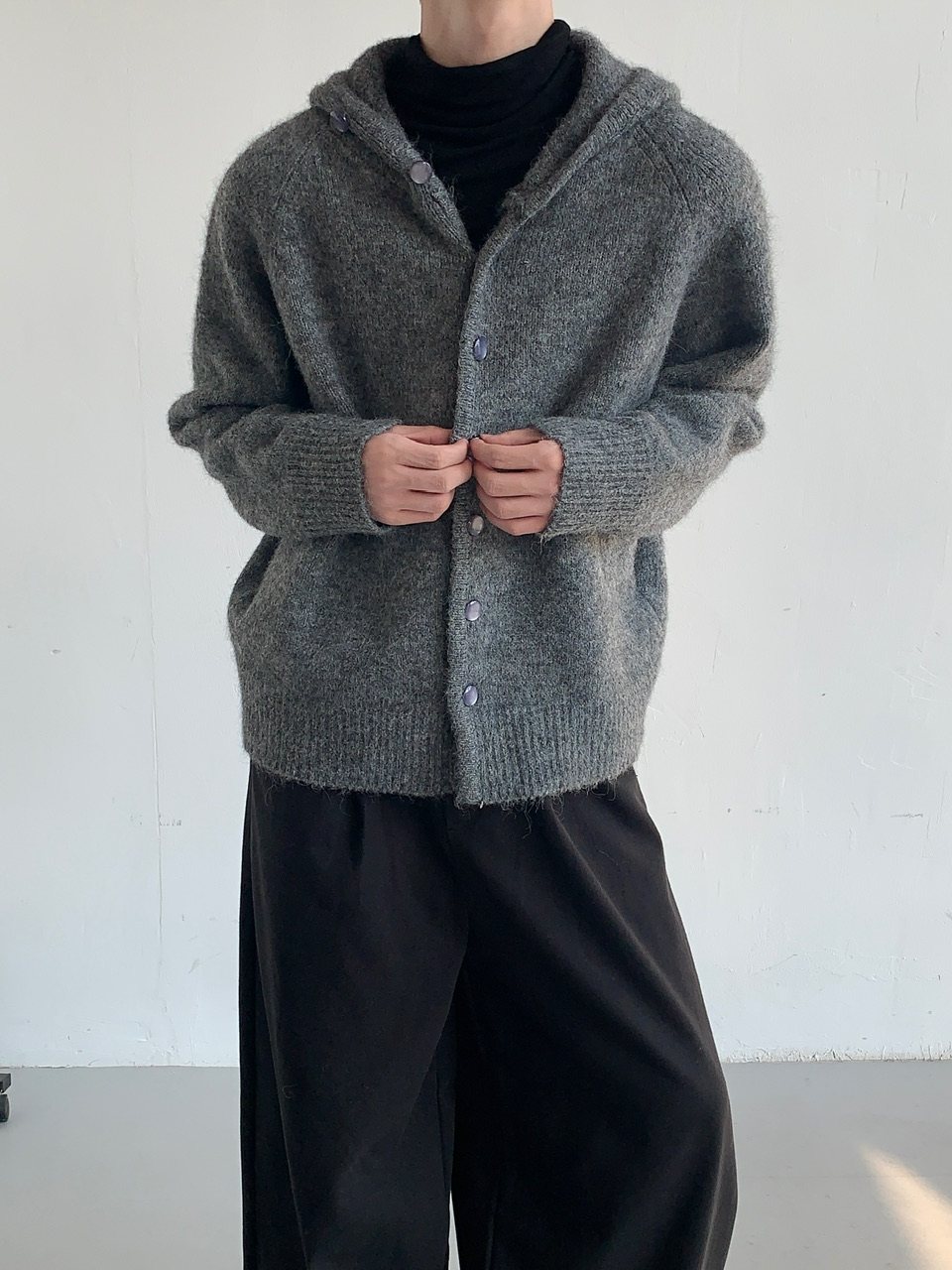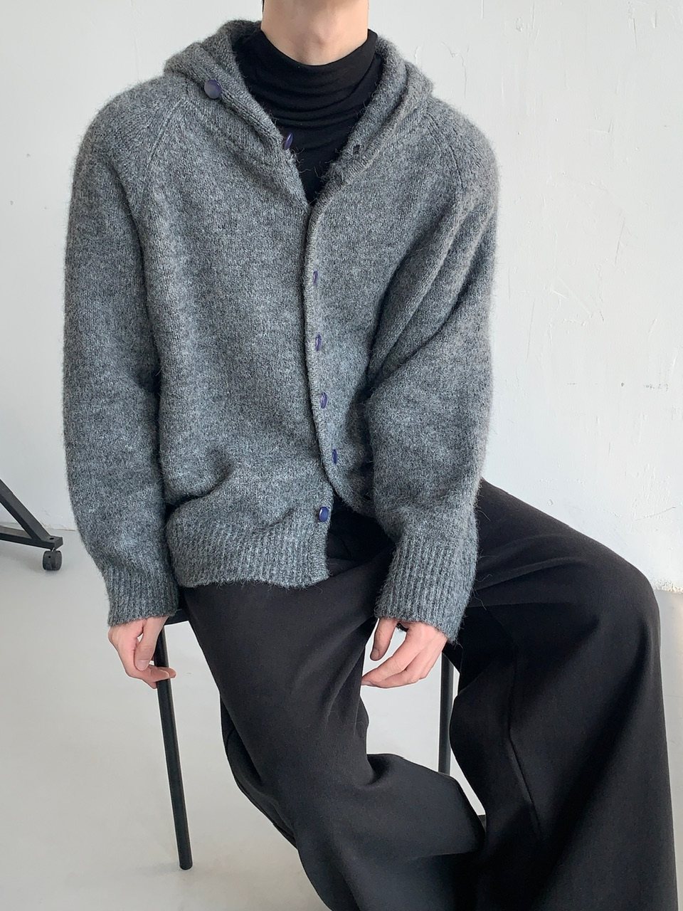 Dark Gray Hooded Sweater for Men, Autumn and Winter, Lazy and High-End Knitted Cardigan, American Retro Cleanfit Jacket