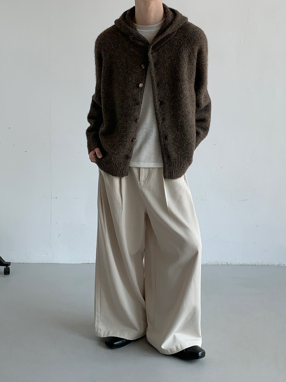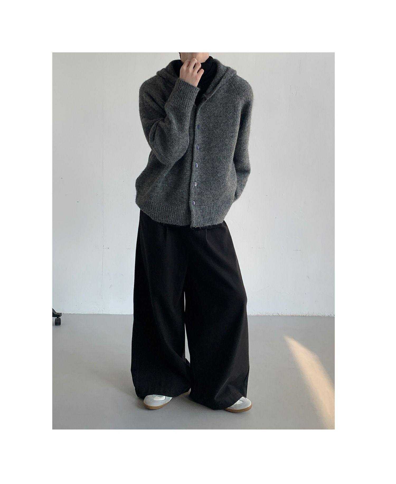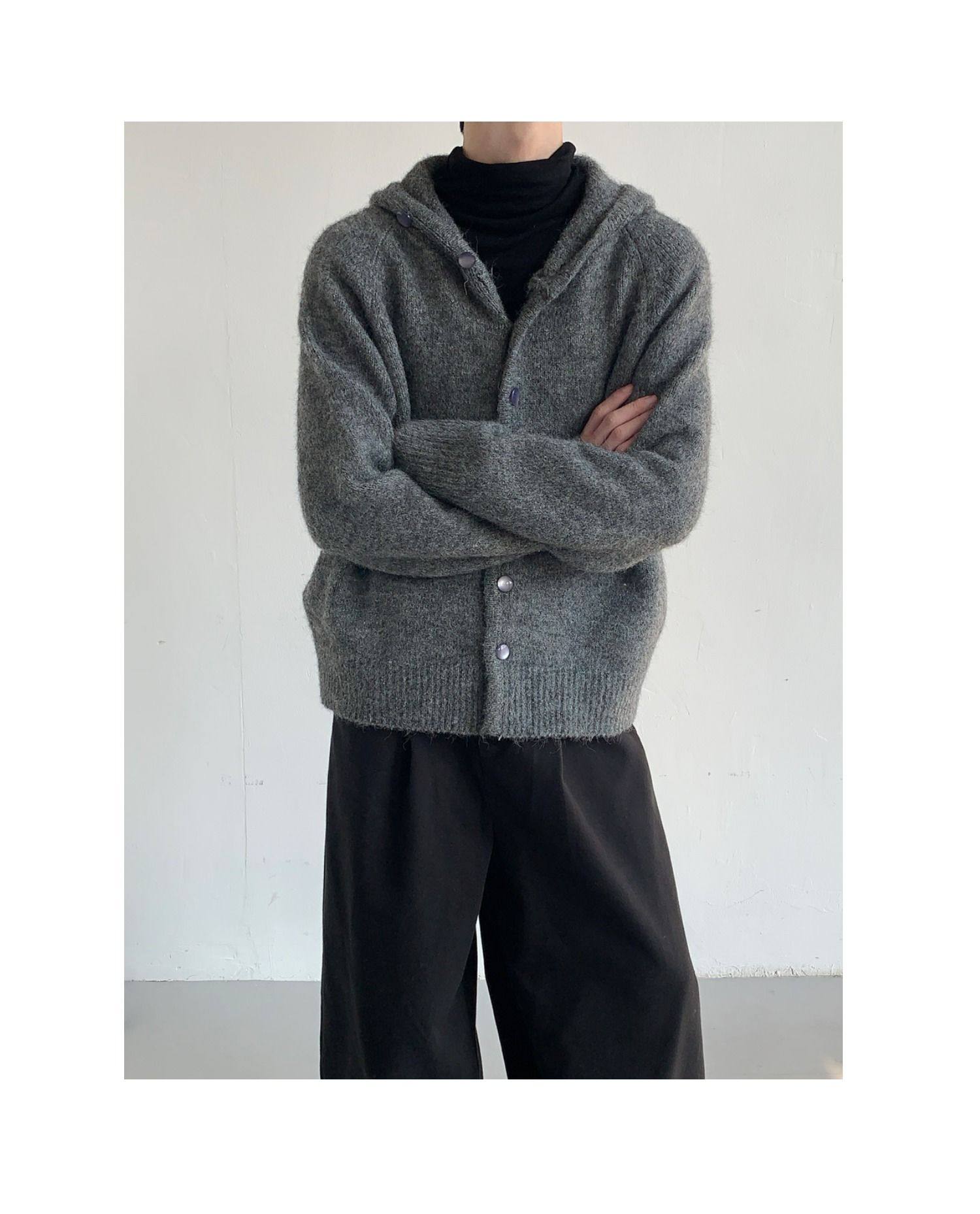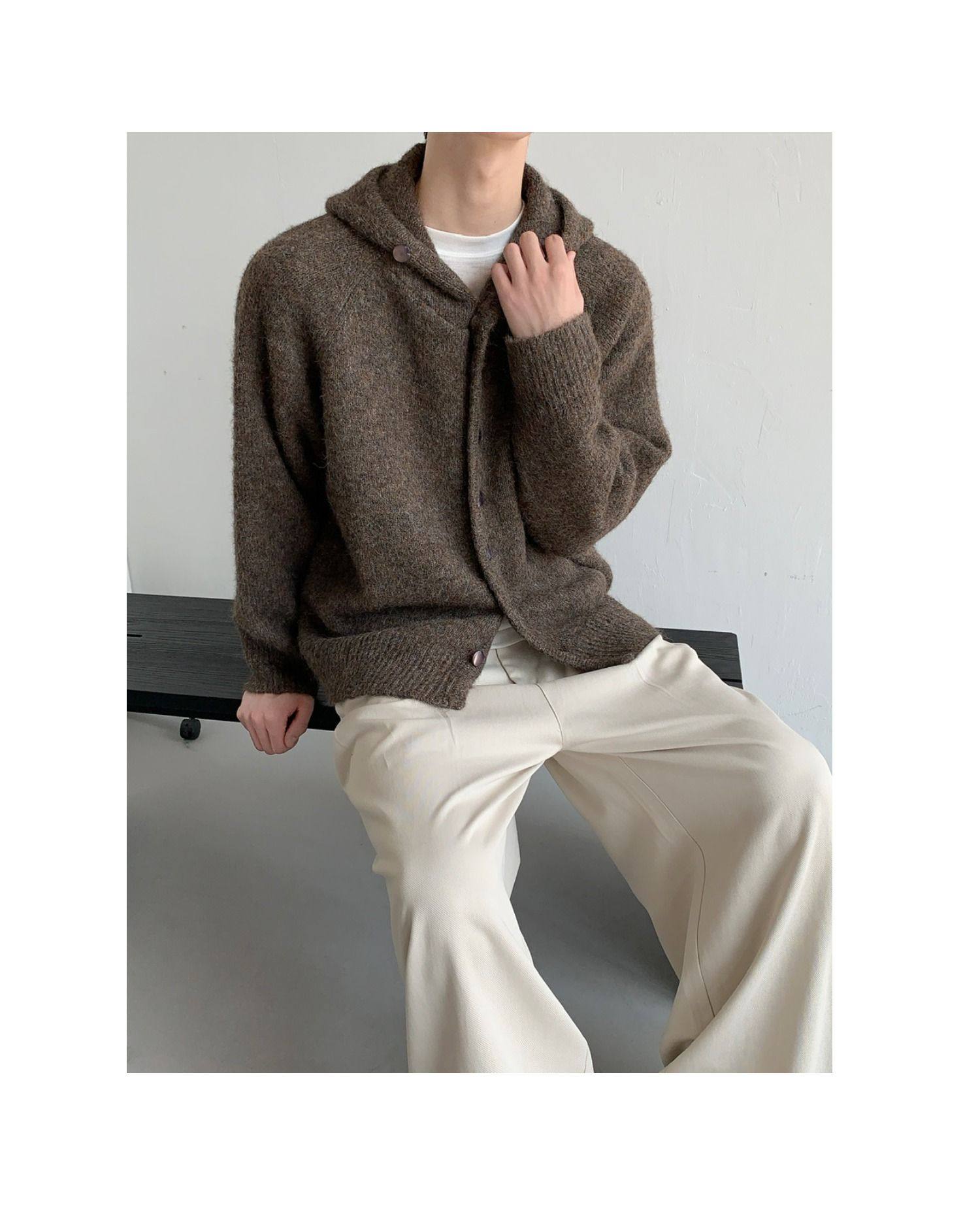 Dark Gray Hooded Sweater for Men, Autumn and Winter, Lazy and High-End Knitted Cardigan, American Retro Cleanfit Jacket