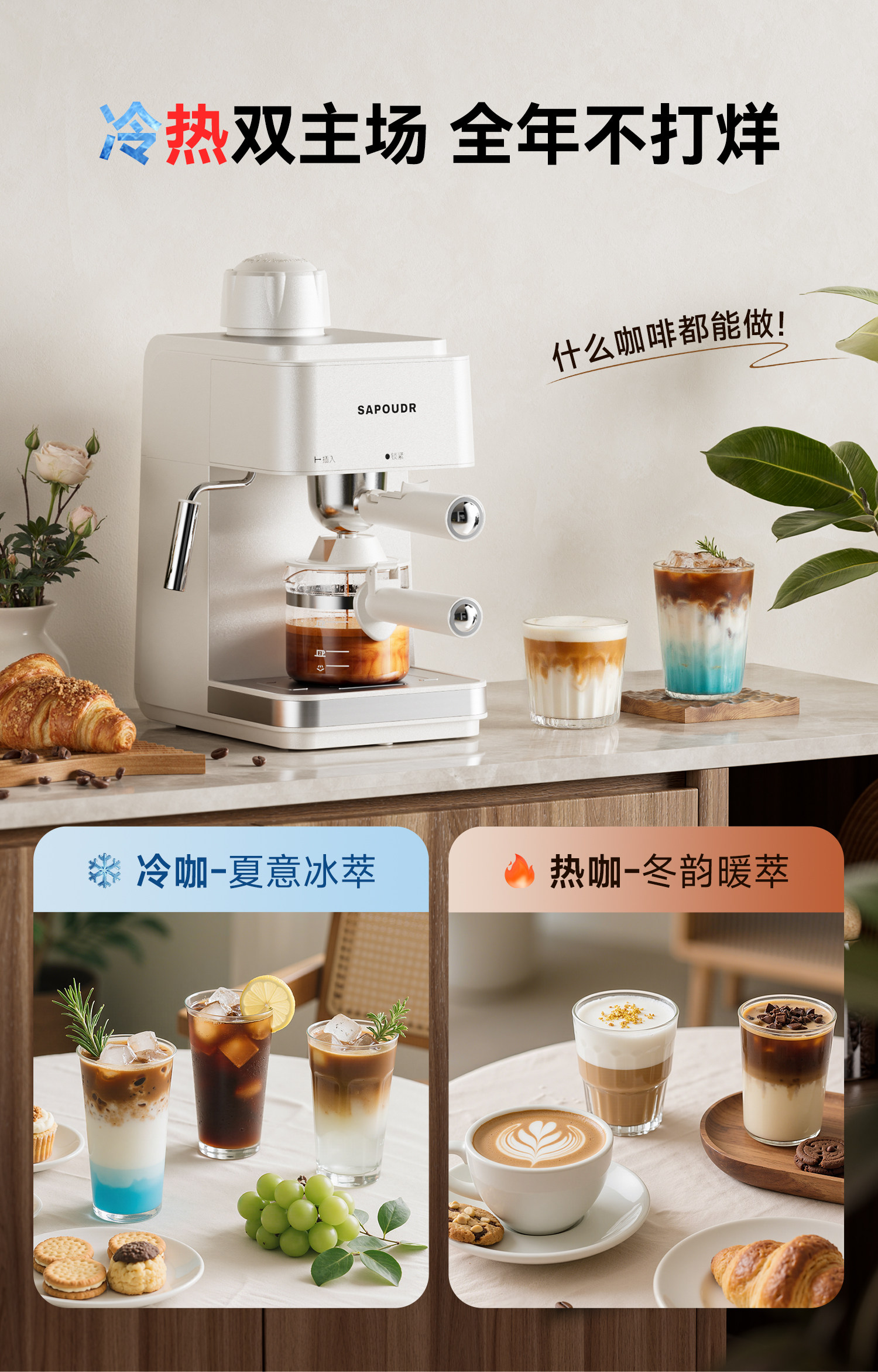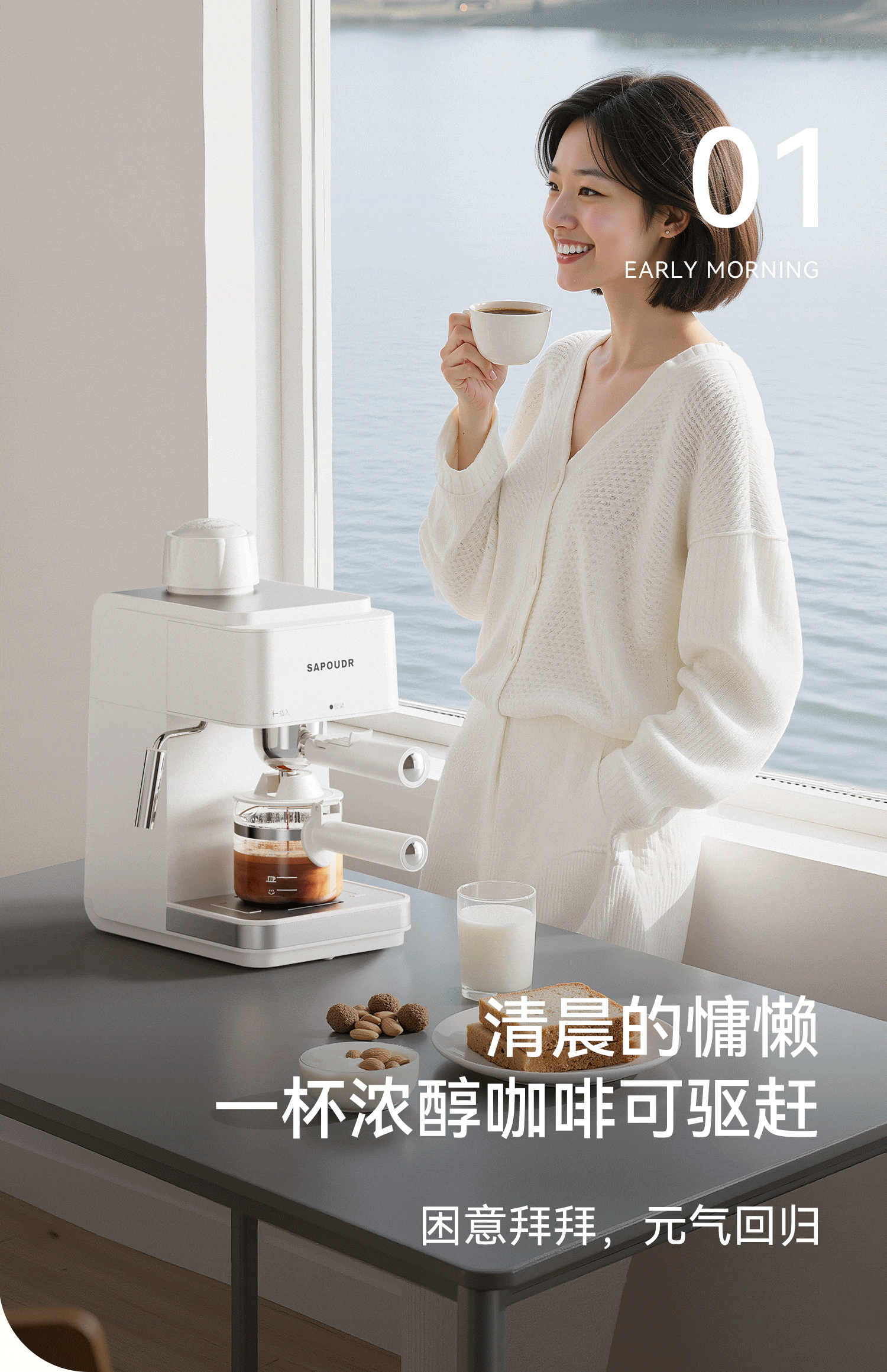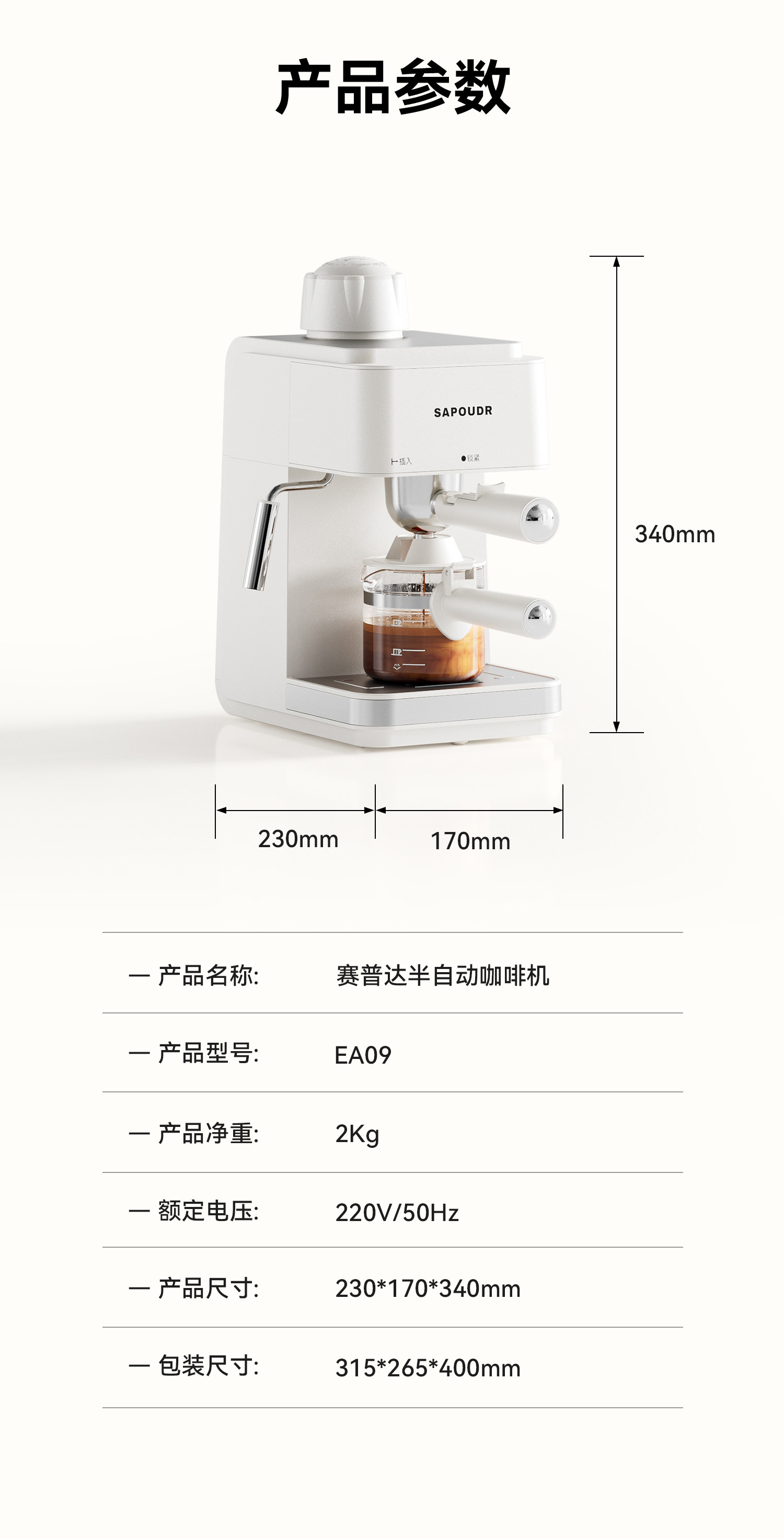 [300 Yuan Gift] Saipuda Ea09 Coffee Machine, Small Home Office Espresso Semi-Automatic All-In-One Machine