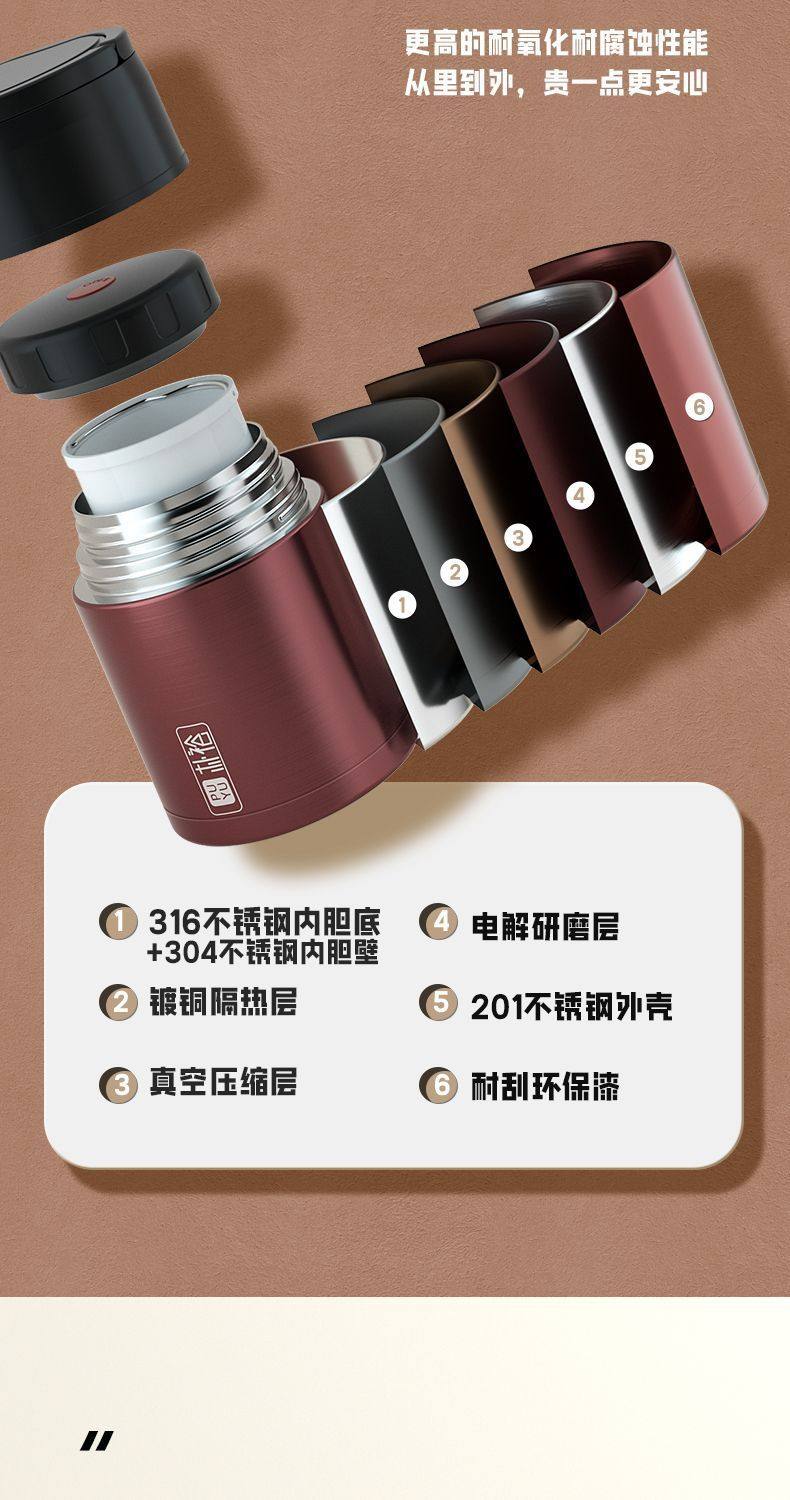 316 Stainless Steel Stewing Cup, Office Worker's Breakfast Cup, Simmering Cup with Handle, Insulated Cup, Large Capacity Soup Stewing Pot
