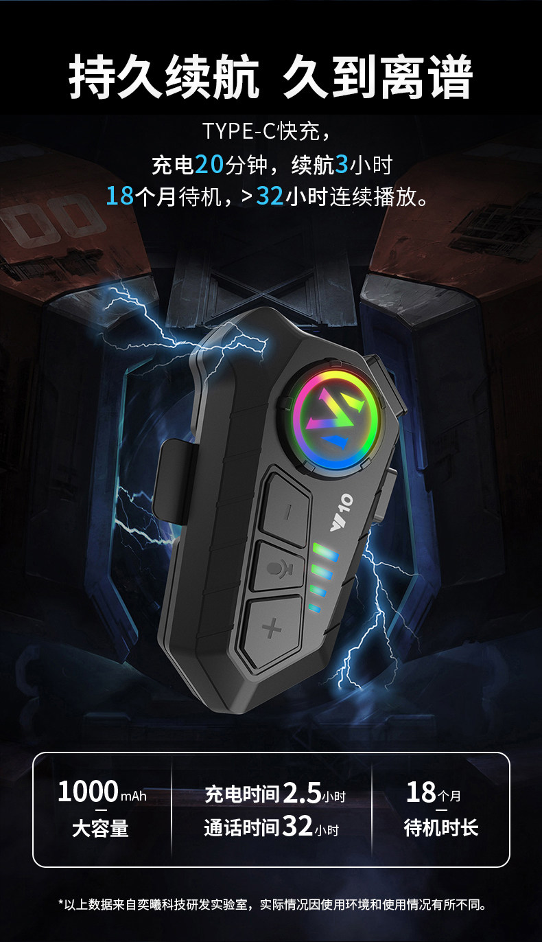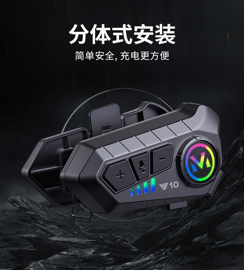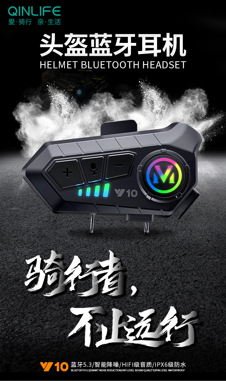 Qinlifey10 Helmet Bluetooth Headset for Listening to Music and Making Calls, Waterproof Motorcycle Helmet Bluetooth Headset with Long Battery Life