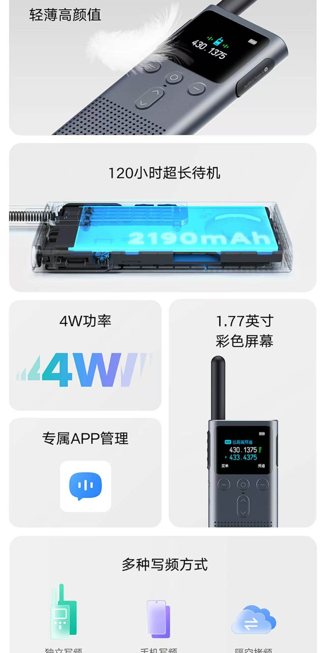 Xiaomi Walkie-Talkie 2S Brand New Genuine Upgraded Version, Ultra-Light and Ultra-Thin, Supports Bluetooth Headset Connection, Ultra-Long Standby Time