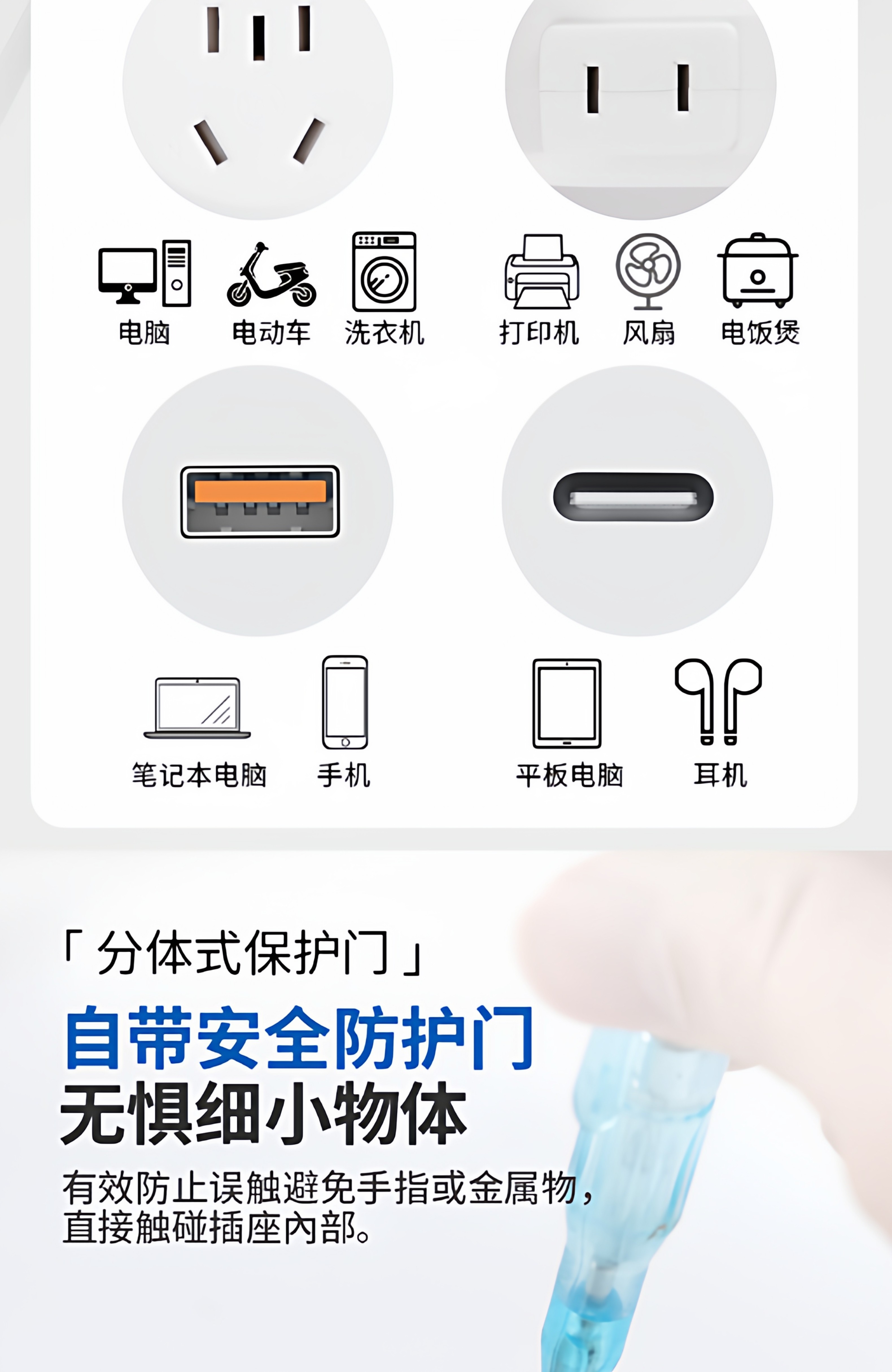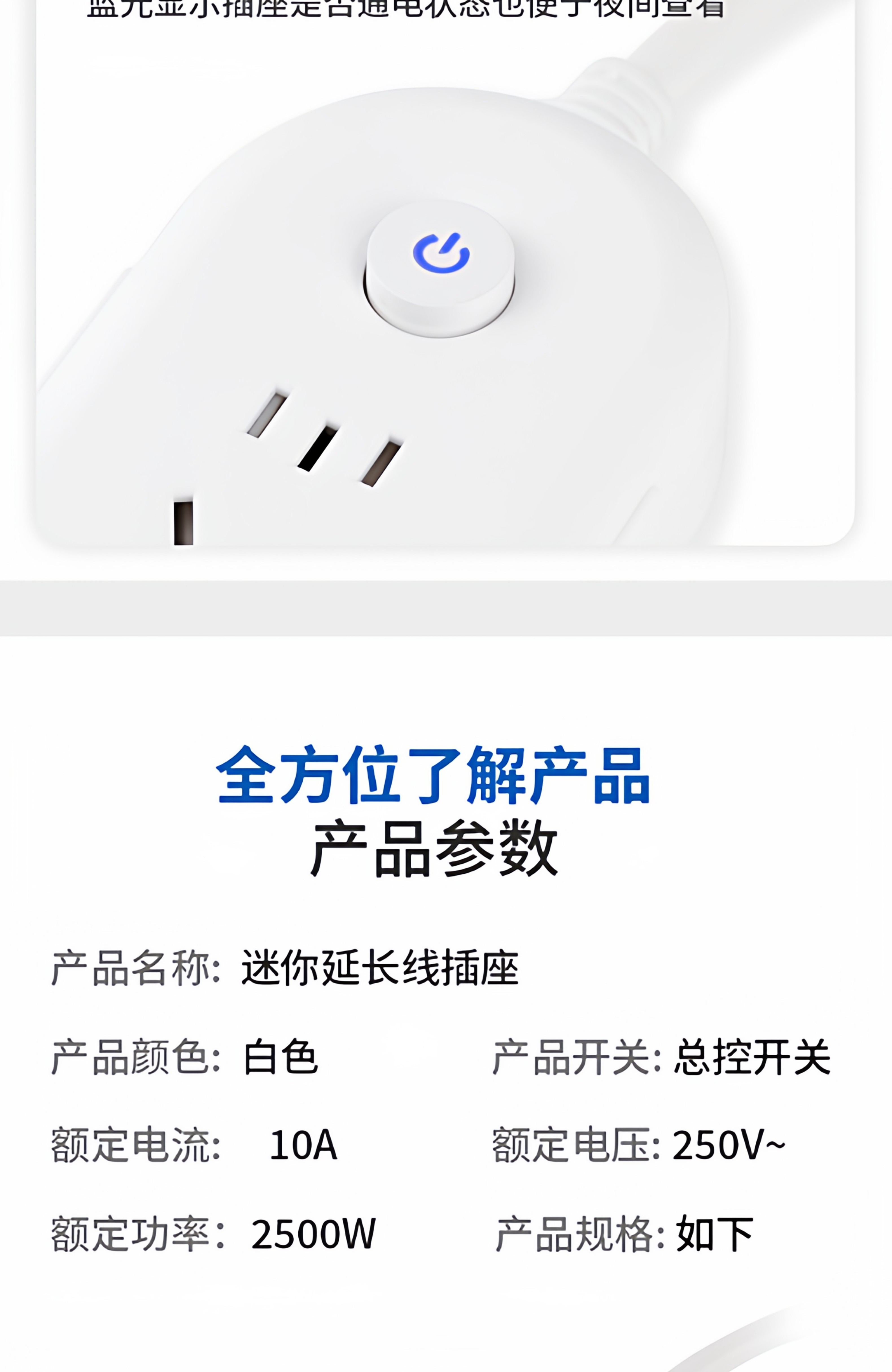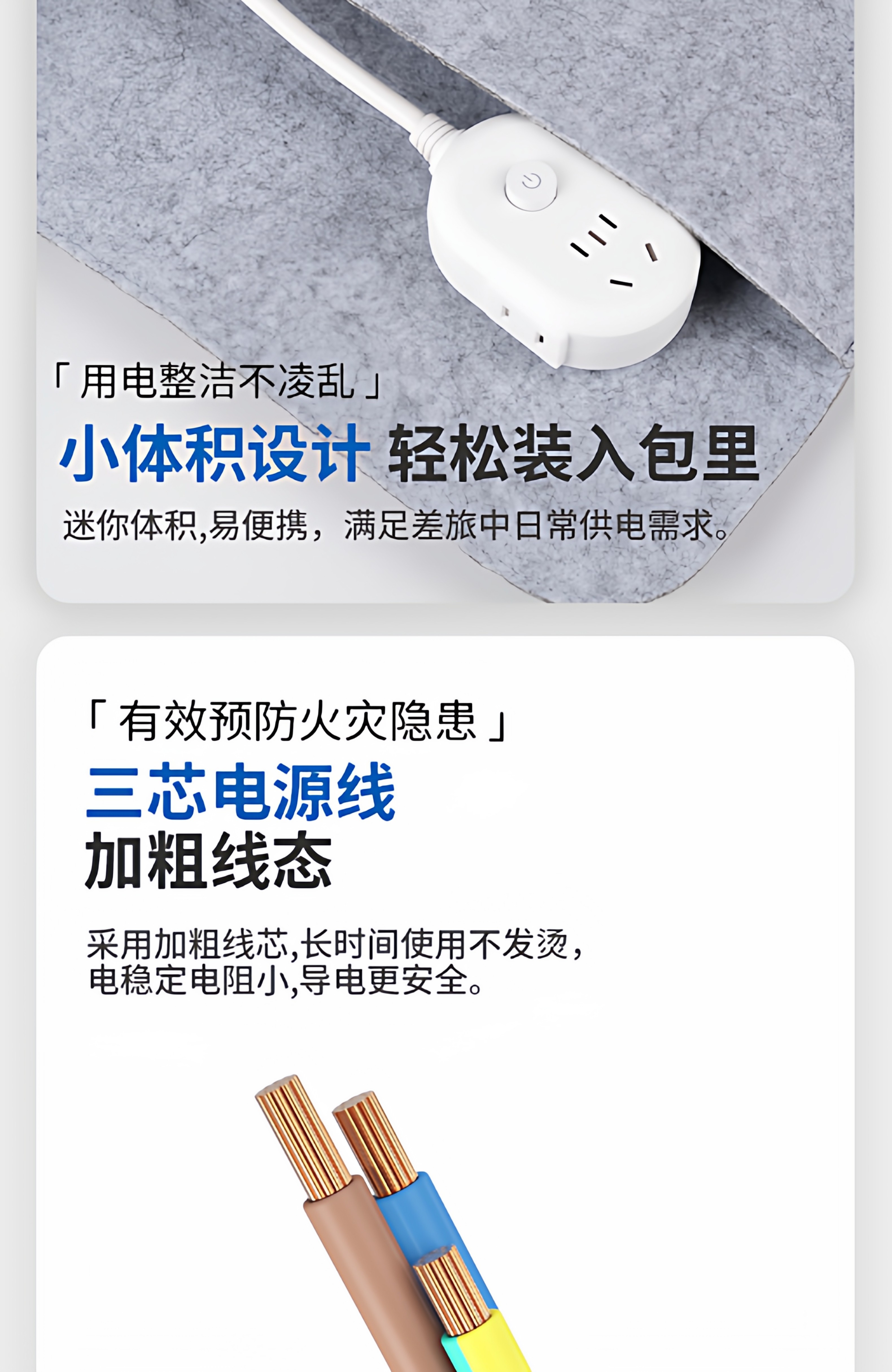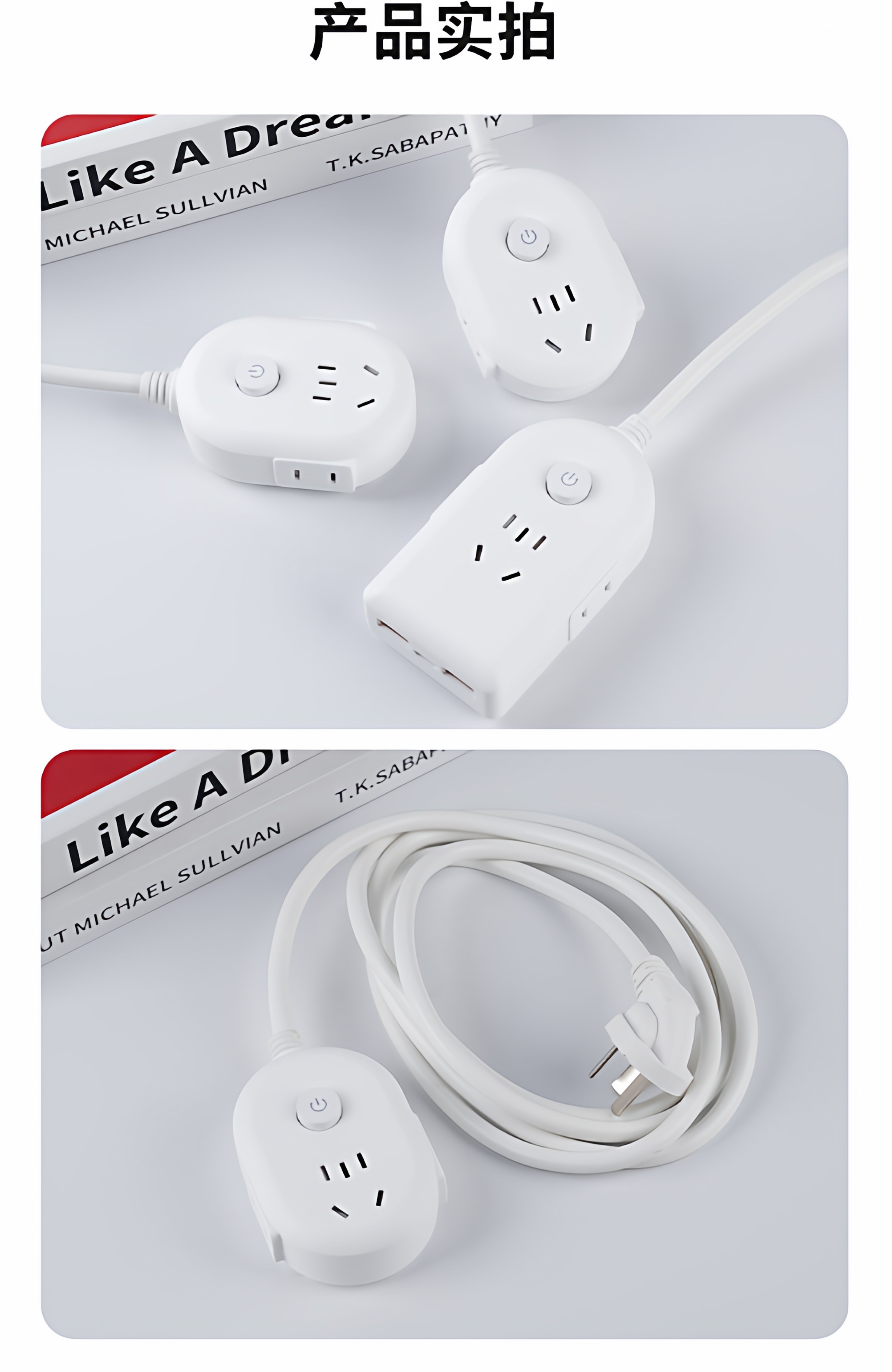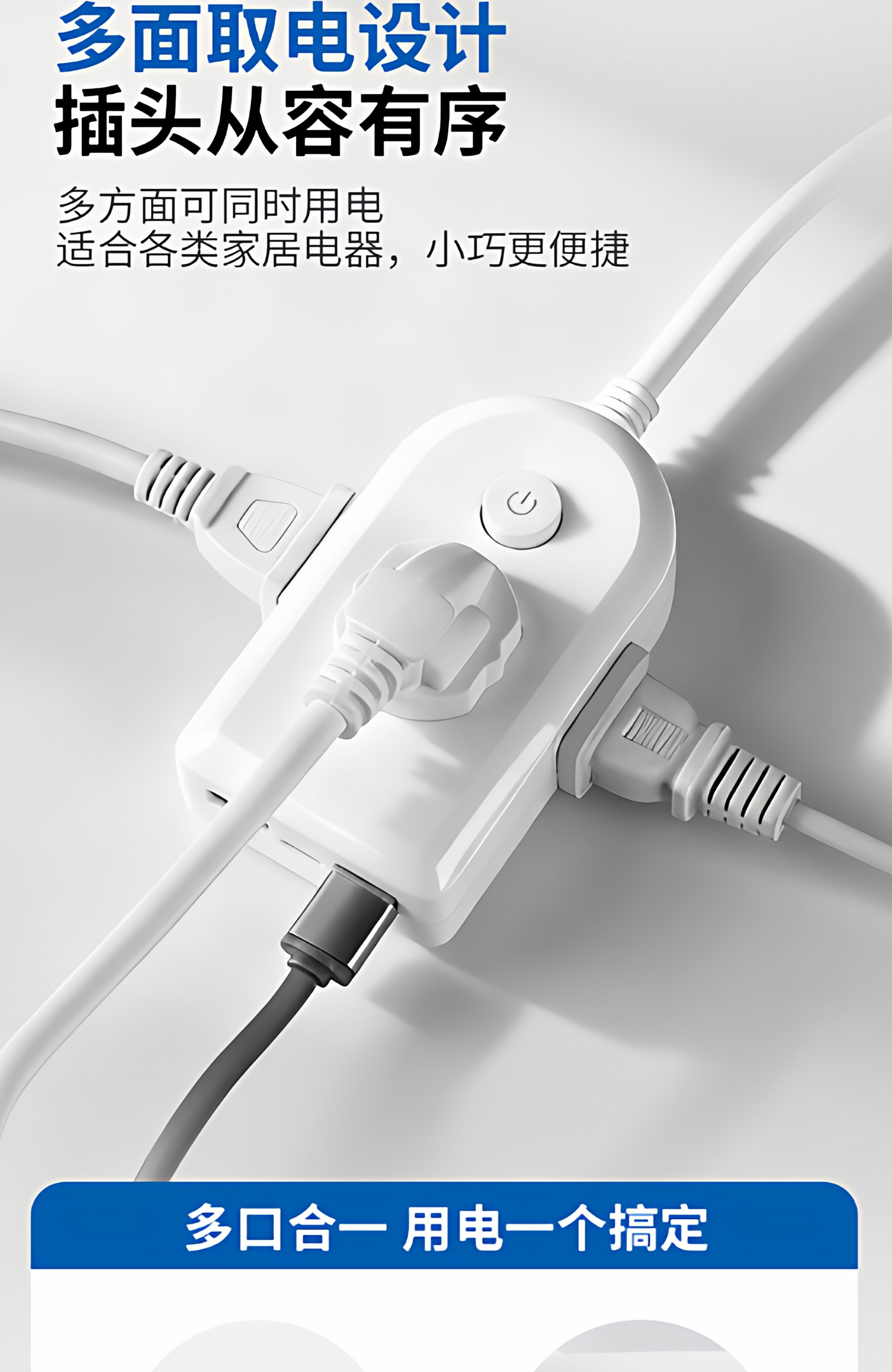 Multi-Functional Travel Power Strip with One-To-Three USB Charging Extension Cord, Portable Multi-Port Power Strip for Student Dormitories