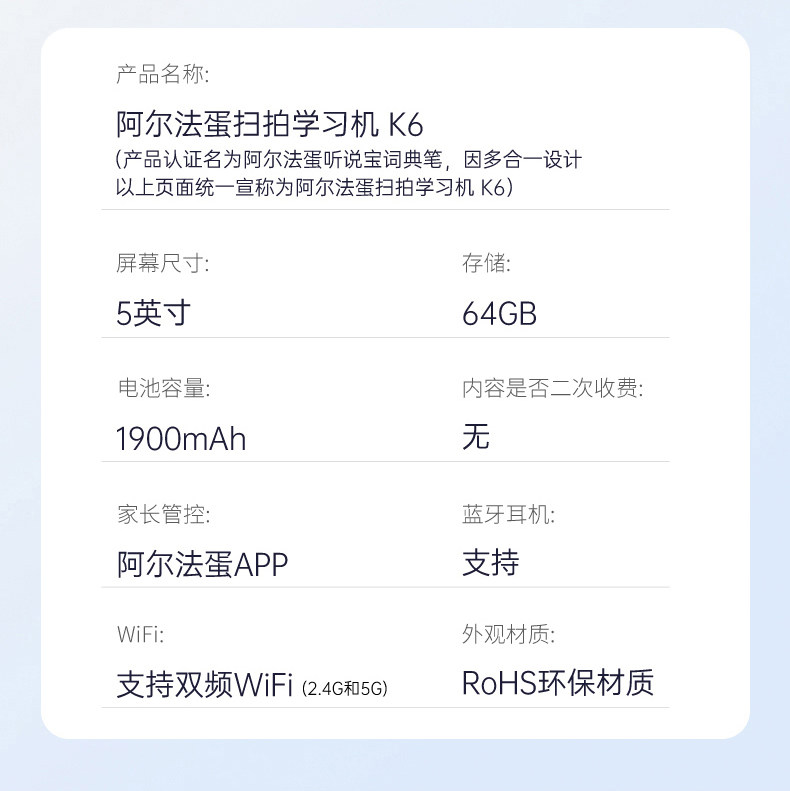 [Official Flagship Genuine Product] Alpha Egg Scanning Learning Device K6 Elementary School, Middle School, High School Dictionary Pen Listening Treasure Electronic Dictionary Scanning Translation Pen English Reading Pen Official Flagship Online Store