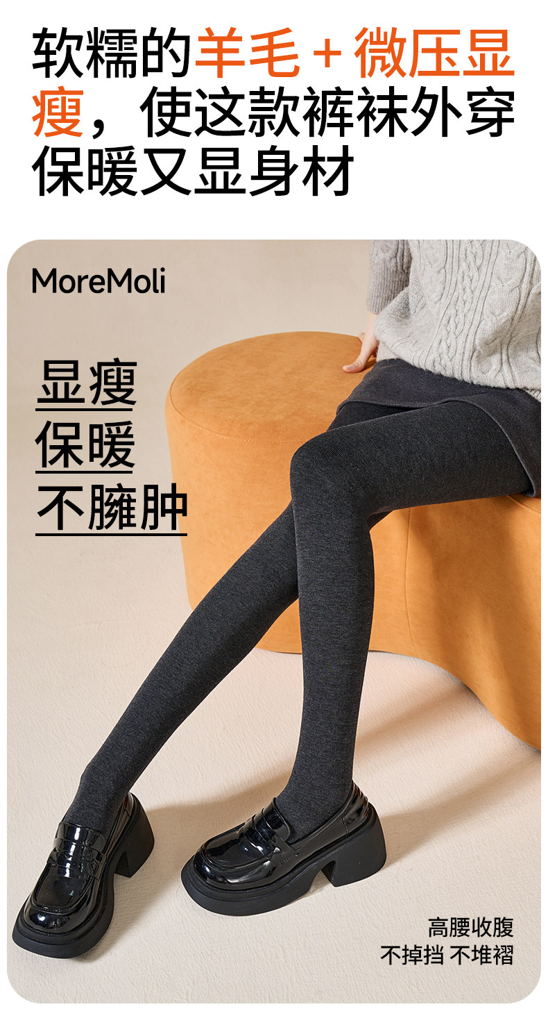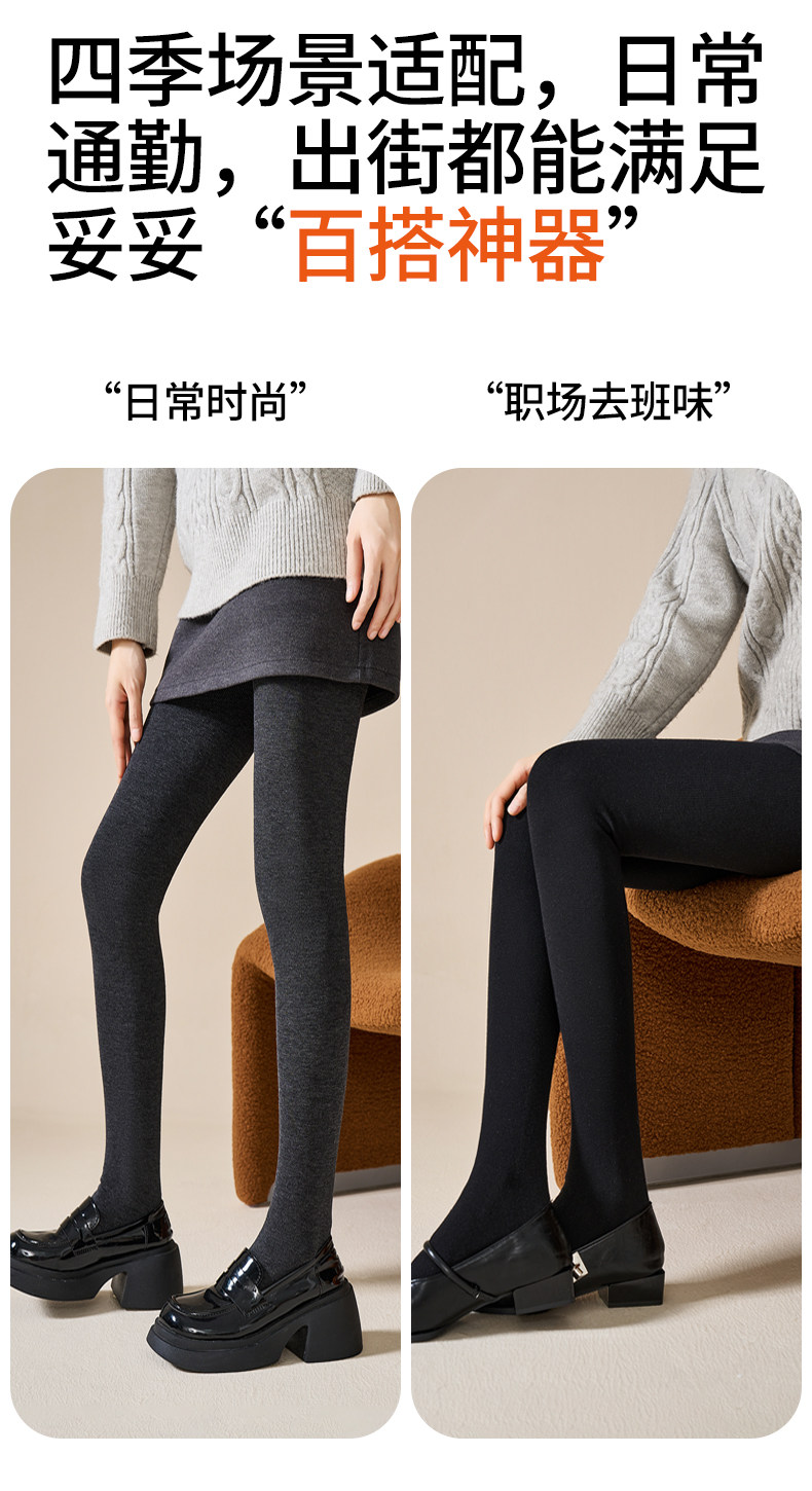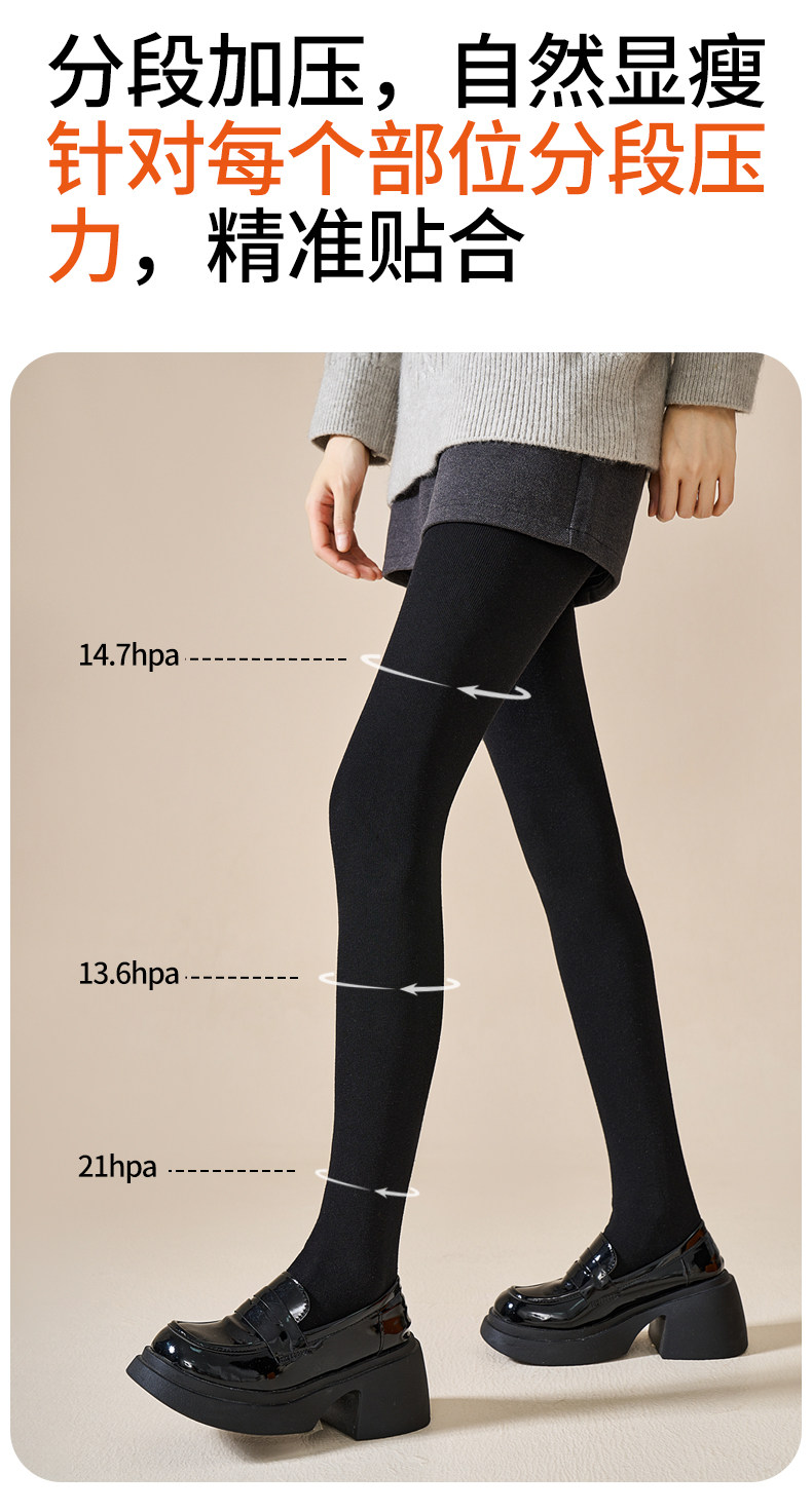 Black Wool Socks for Women, Autumn and Winter, Fleece-Lined, Thickened, Leggings, Warm, Pressure Slimming, Footless Socks, Suitable for Wearing with Small Leather Shoes