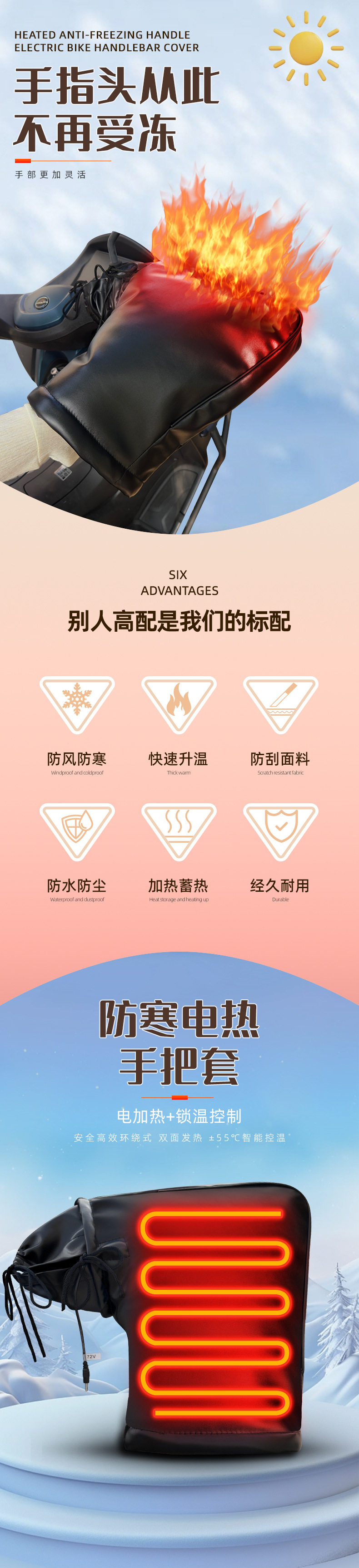 German Electric Vehicle Heated Handlebar Motorcycle Men's Electric Bike Electric Heating Windproof Gloves for Winter Riding Warmth