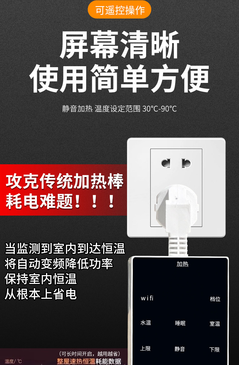 Radiator Heating Rod Intelligent Temperature Control Automatic Constant Temperature Heating Water Boiler Stainless Steel Electric Heating Tube Silent Heater