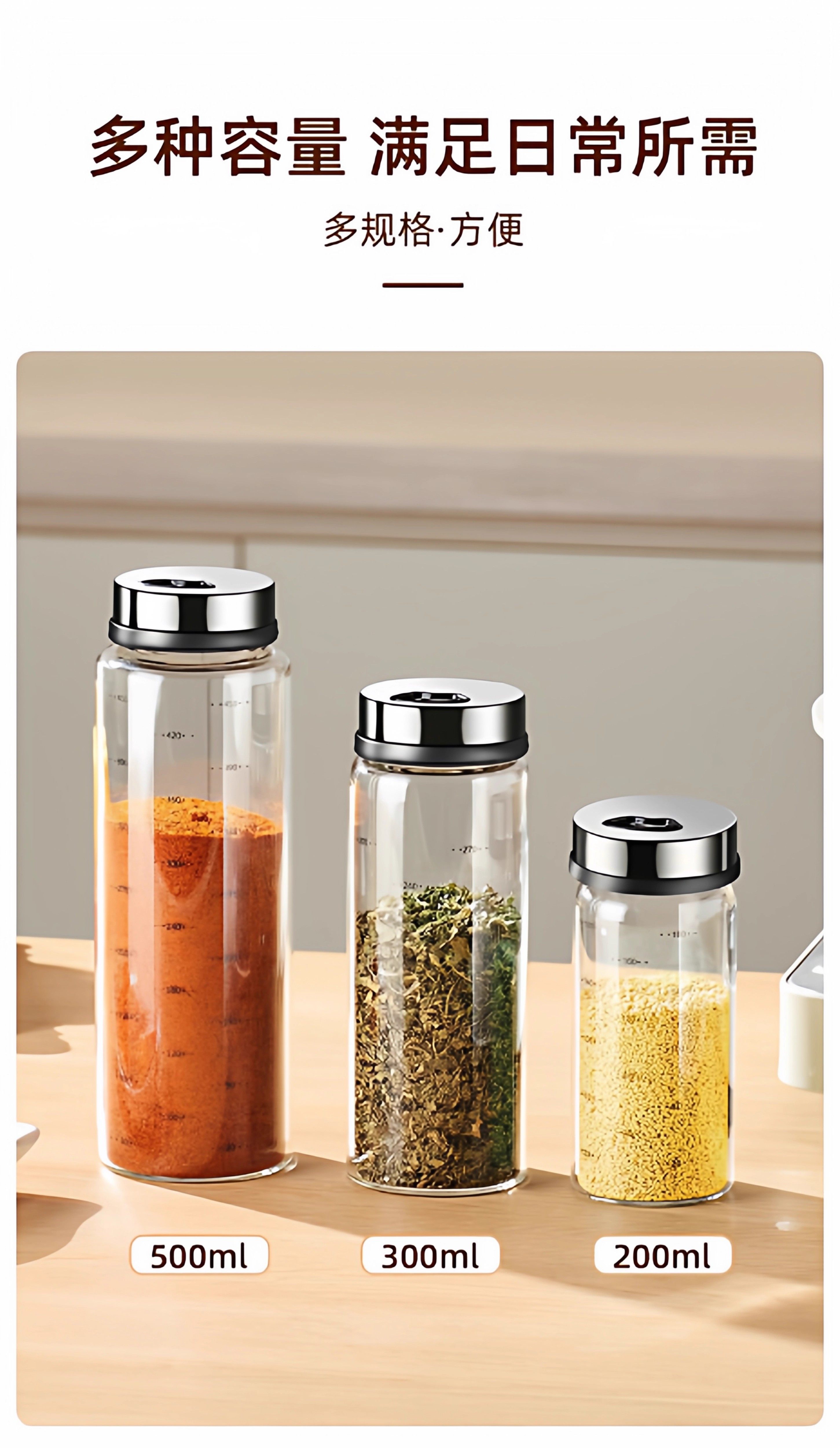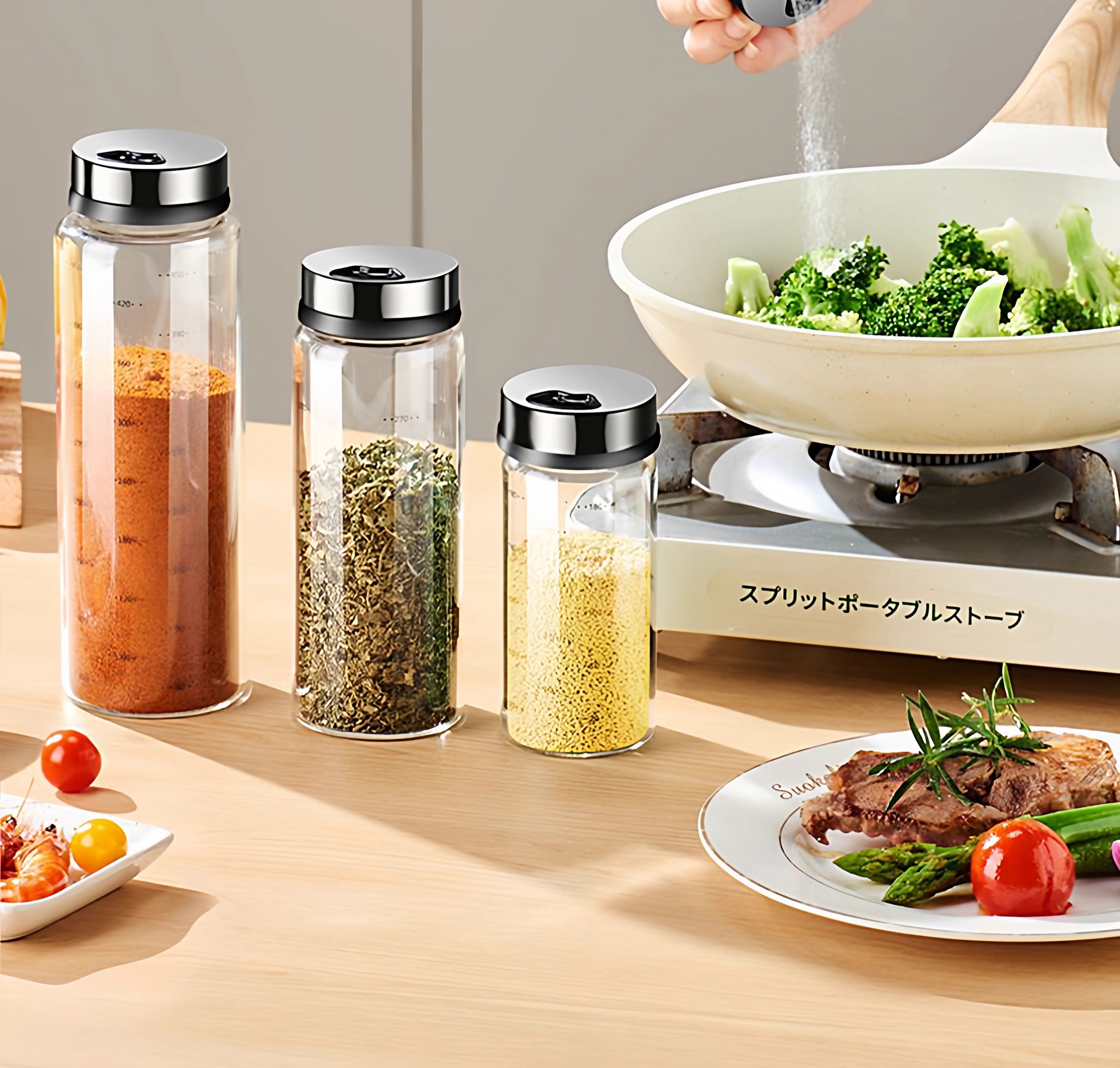 German-Style Kitchen Glass Seasoning Salt Jar Condiment Bottle Household Barbecue Pepper Powder Seasoning Set