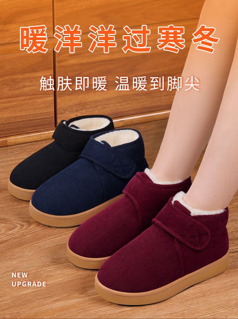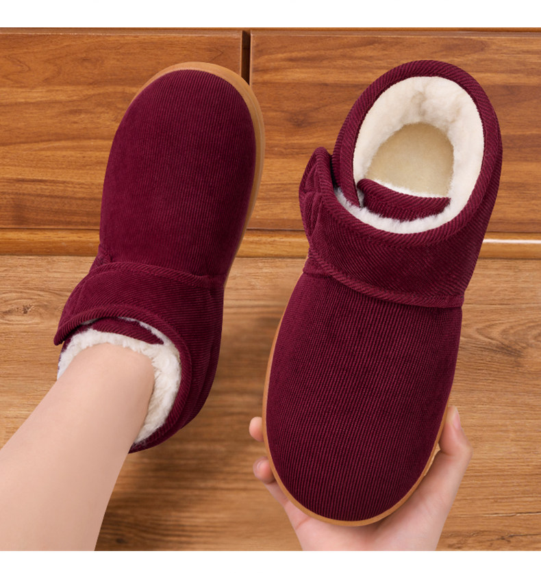 Women's Winter Cotton Shoes with Added Fleece and Thick Wool, Non-Slip Cotton Slippers for Middle-Aged and Elderly, New Model for Mothers, Men's Warm Shoes for the Elderly