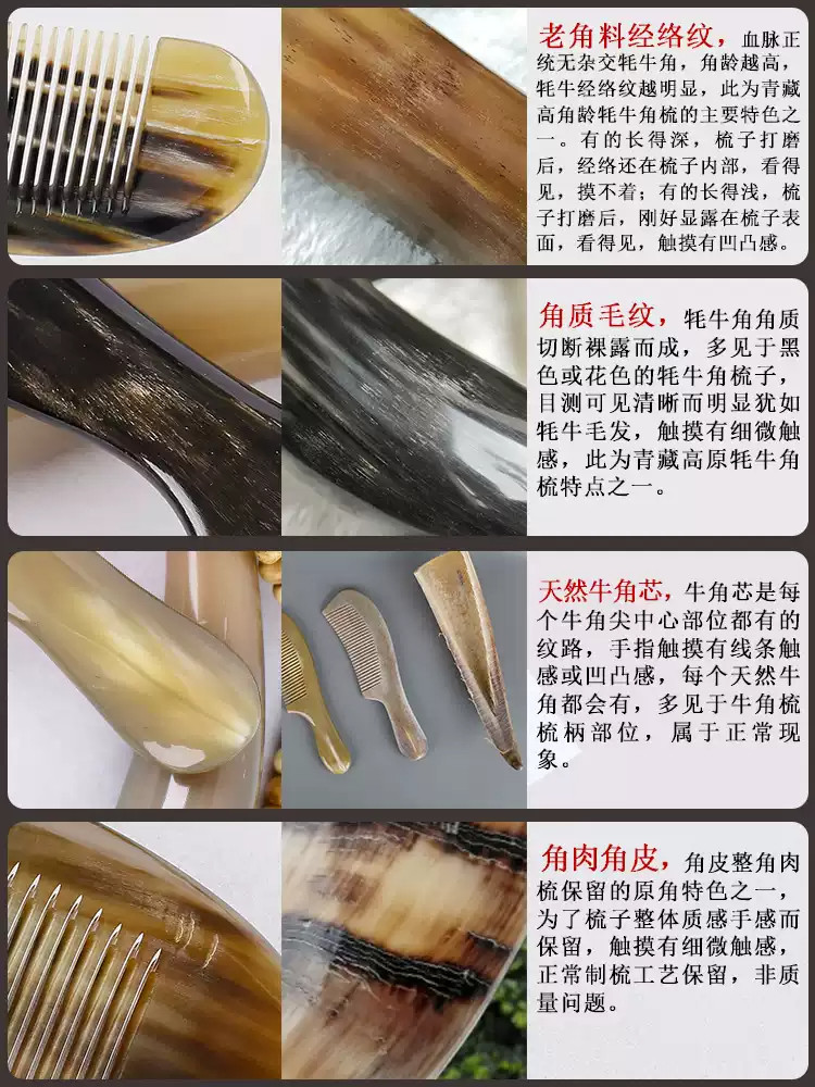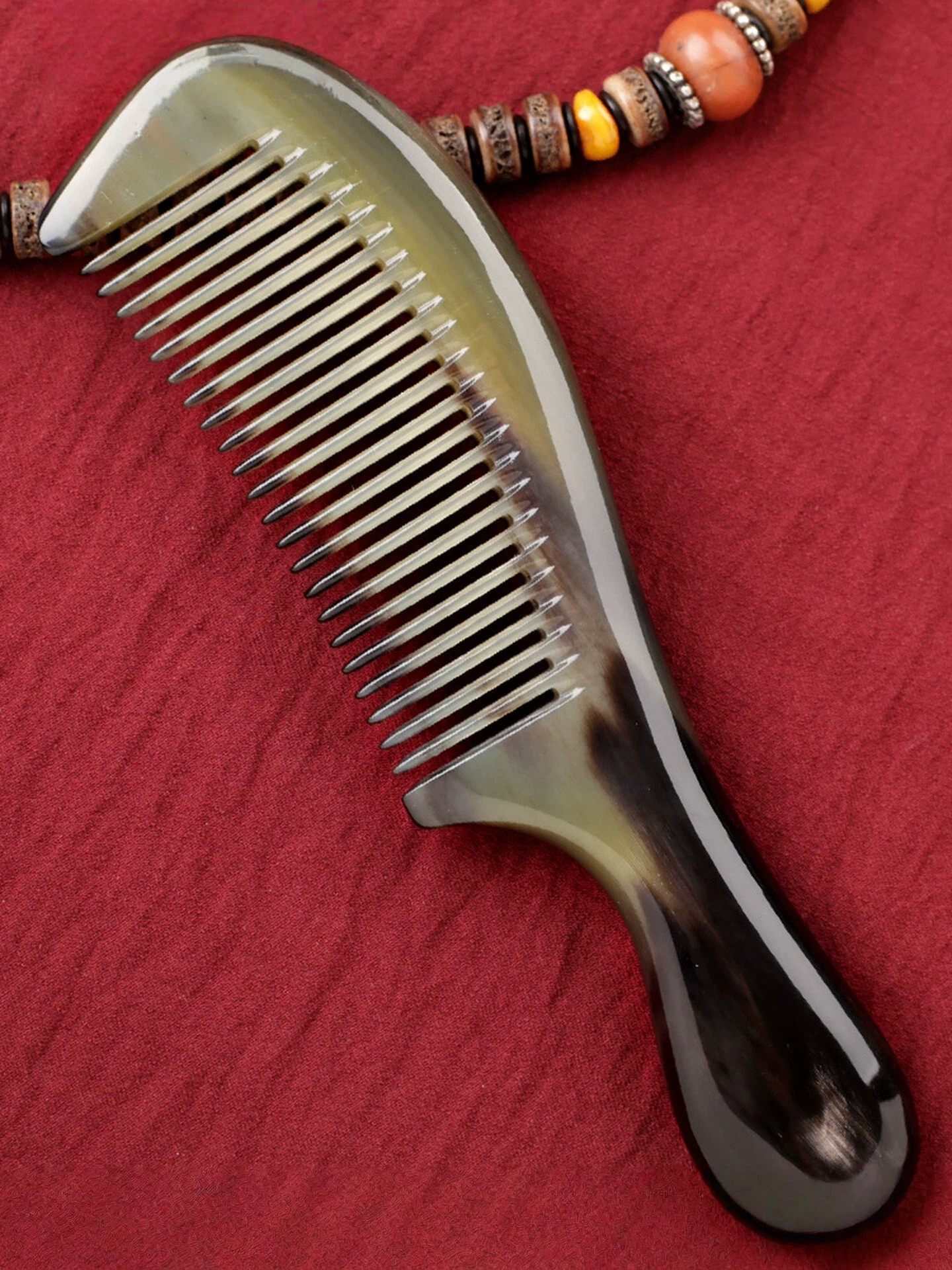 Authentic Natural Tibetan Yak Horn Comb, Thickened Version, Women's Long Hair Comb, Home Use Men's Scalp Massage Meridian Comb