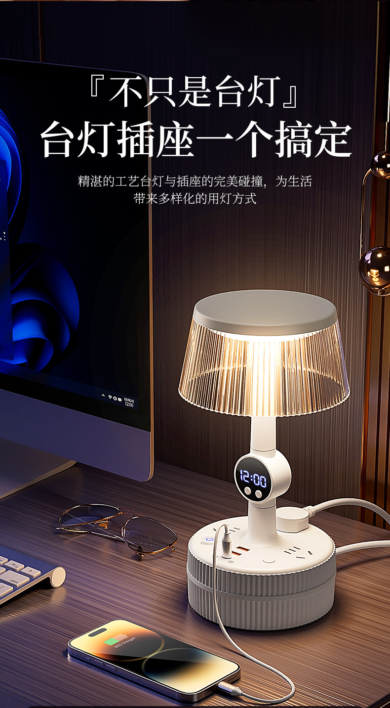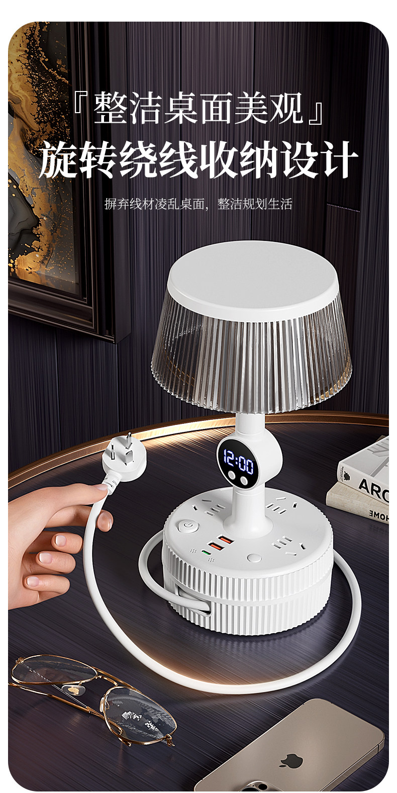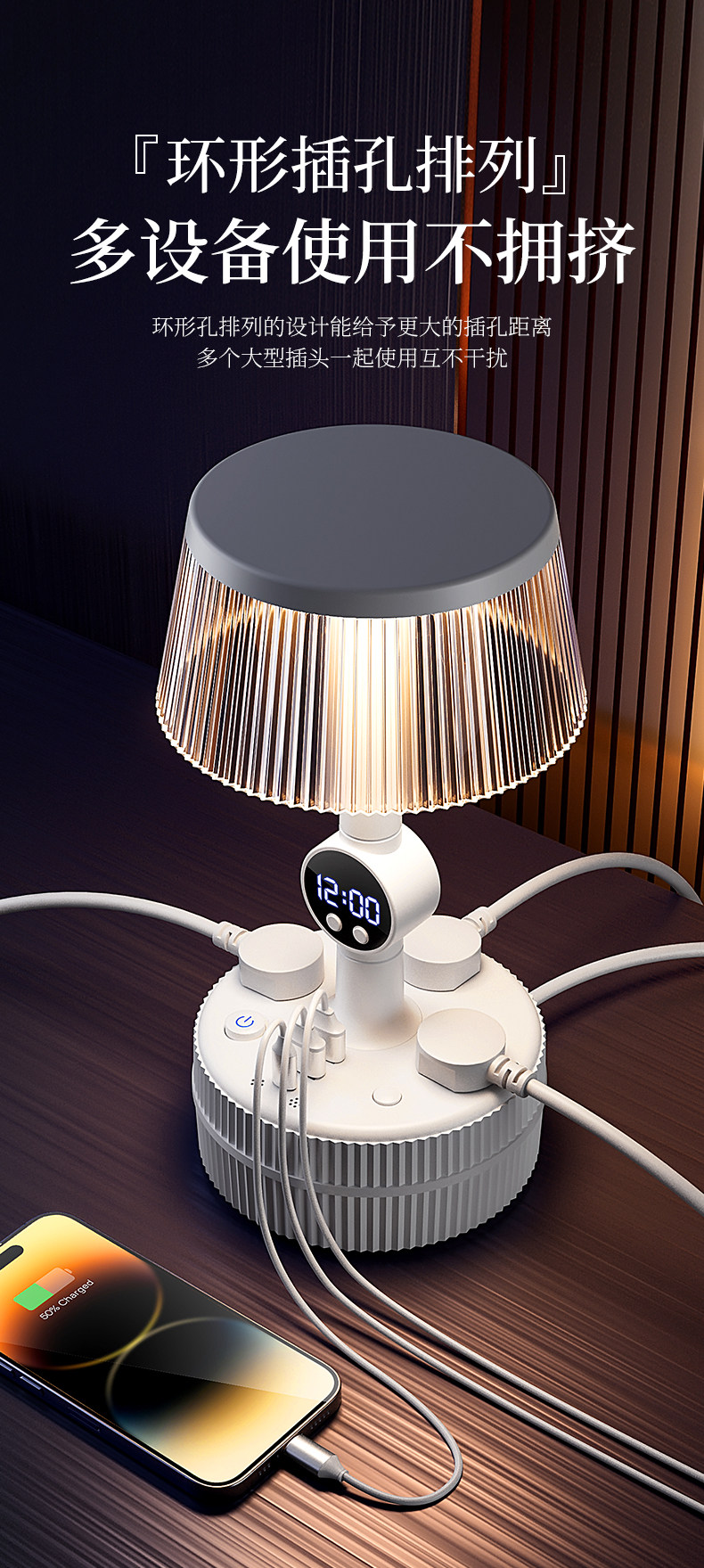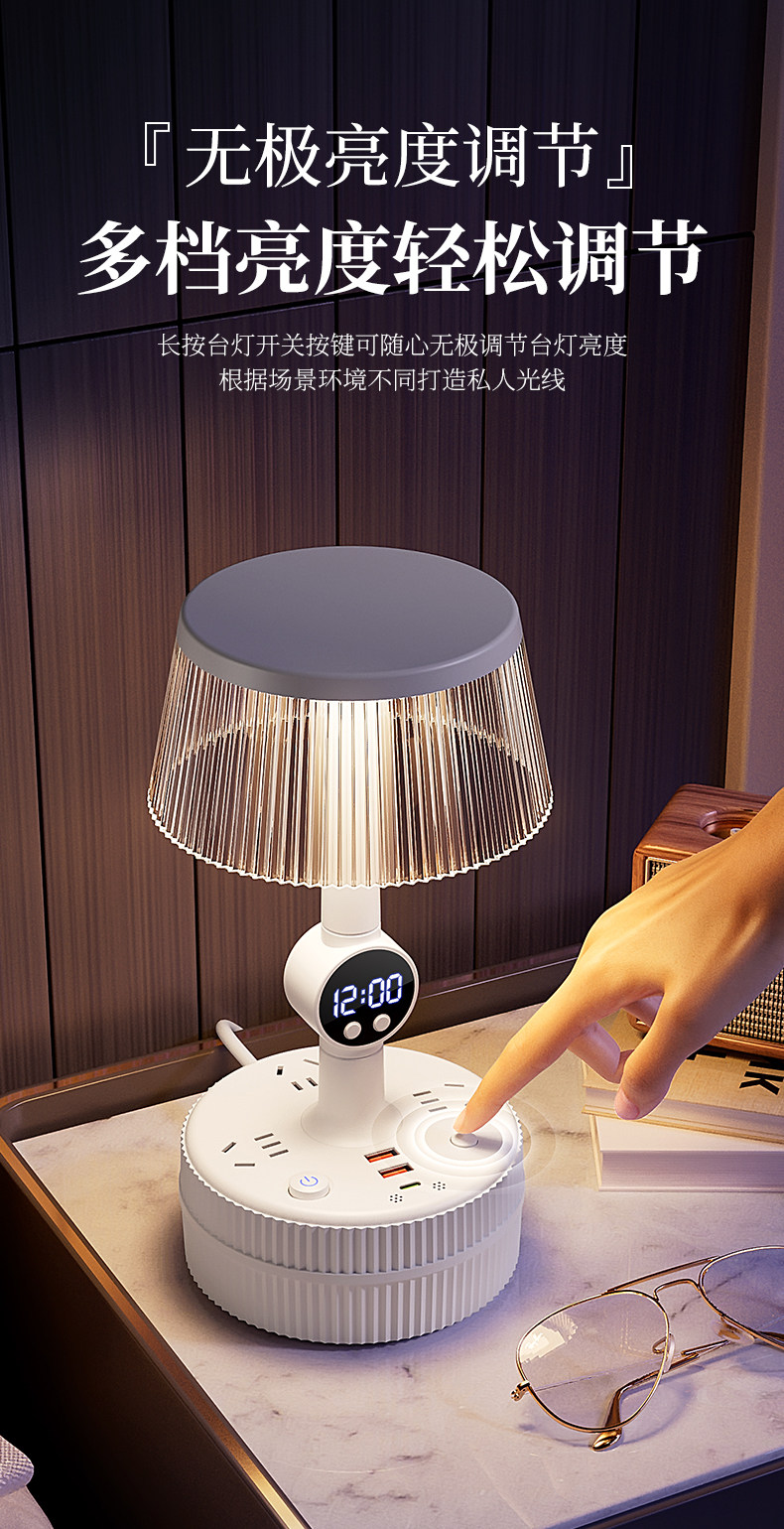Mi Smart Voice-Controlled Desk Lamp with Clock, Multi-Functional USB Socket Power Strip, Student Dormitory Bedroom Socket Desk Lamp