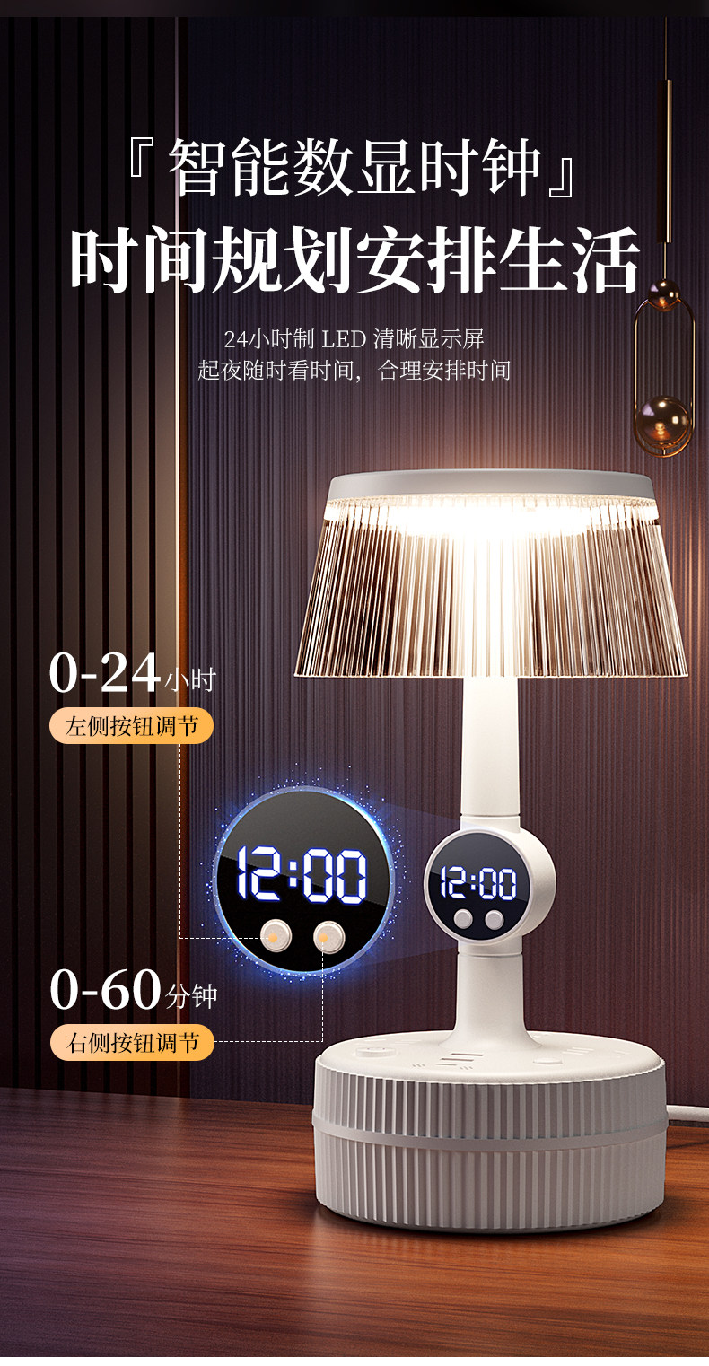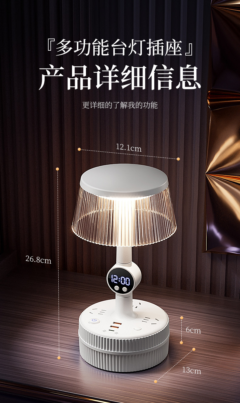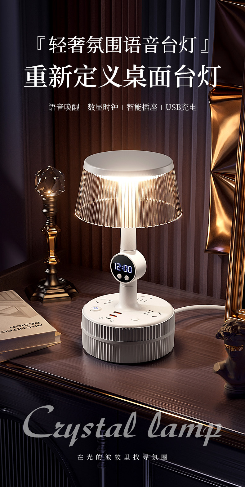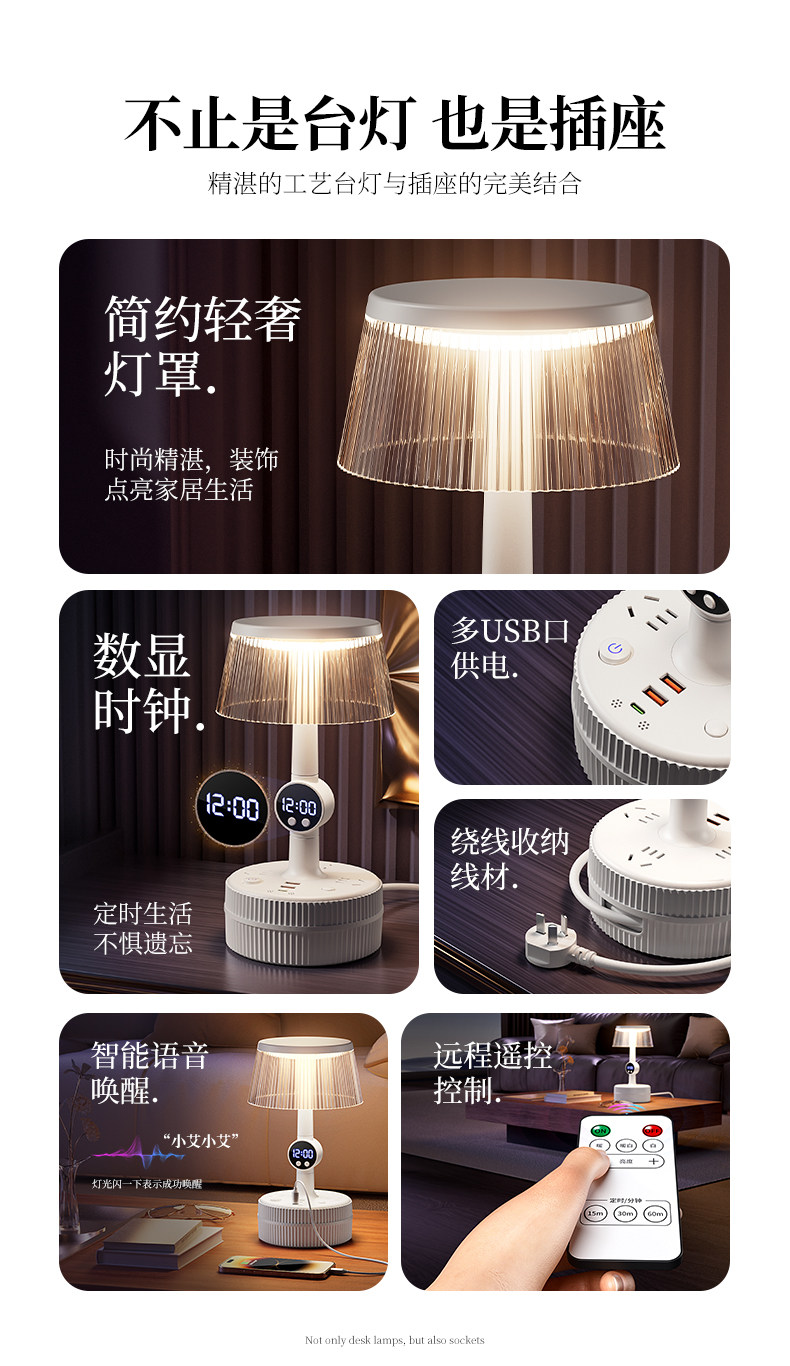 Mi Smart Voice-Controlled Desk Lamp with Clock, Multi-Functional USB Socket Power Strip, Student Dormitory Bedroom Socket Desk Lamp