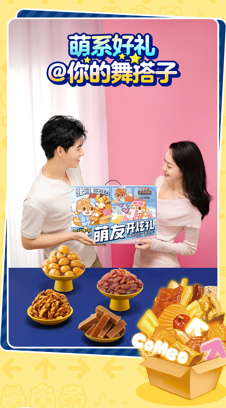 [Member Exclusive Purchase] Three Squirrels Qq Dance Collaboration Snack Gift Pack 1769g/20 Pieces, Gift for Girlfriend