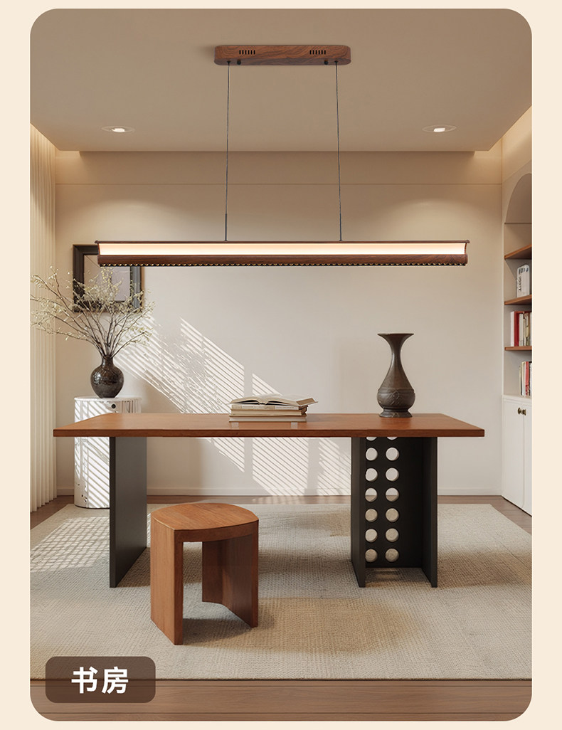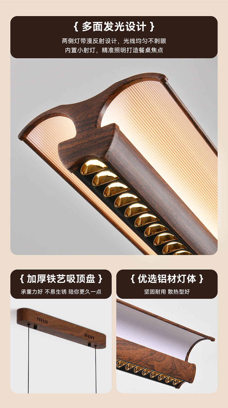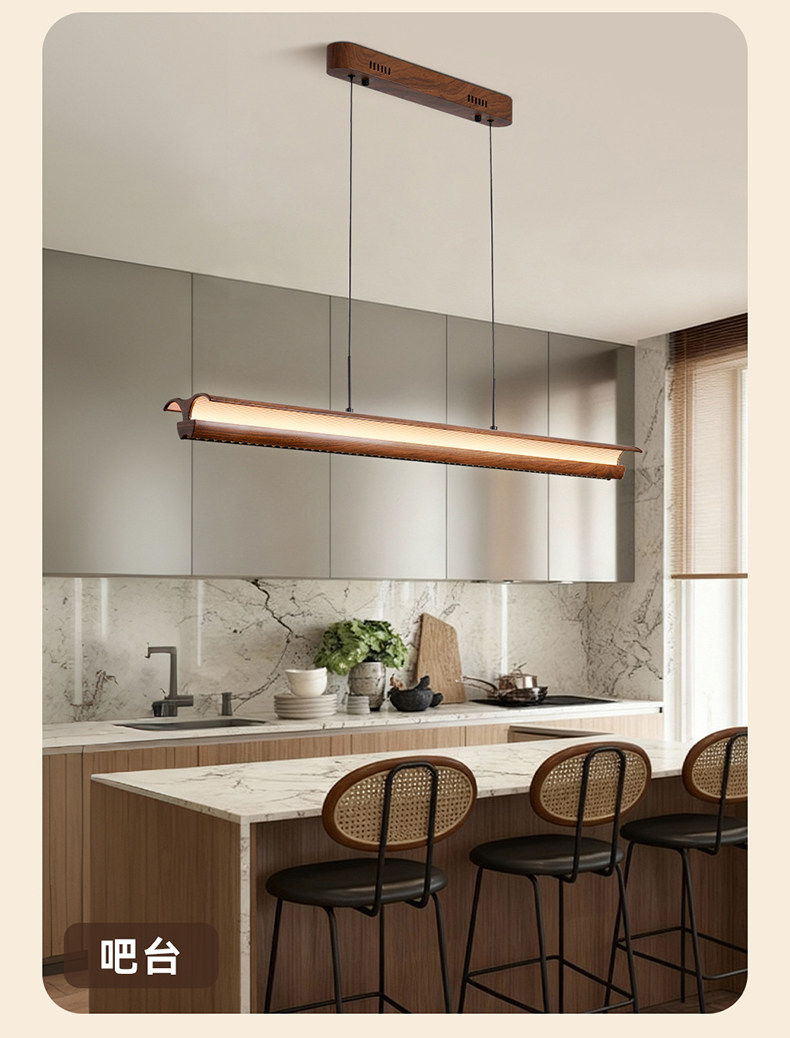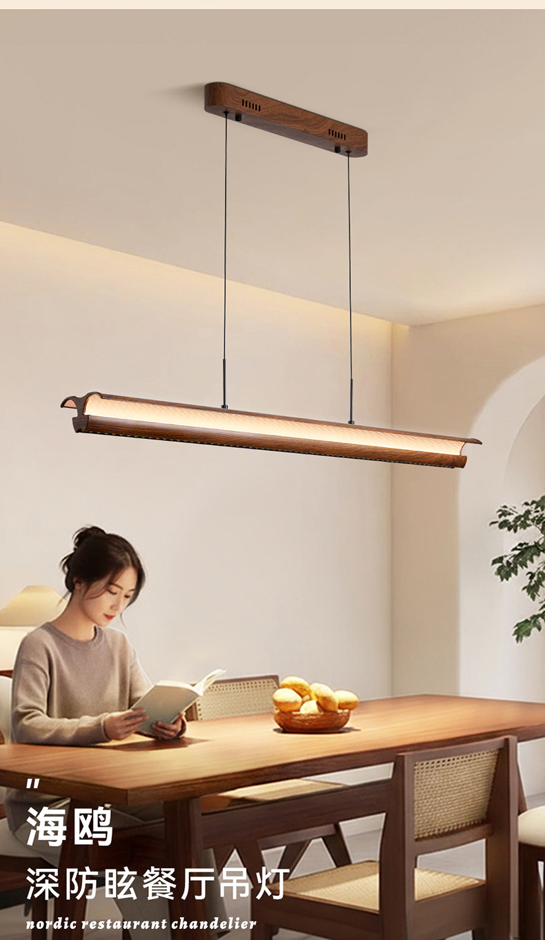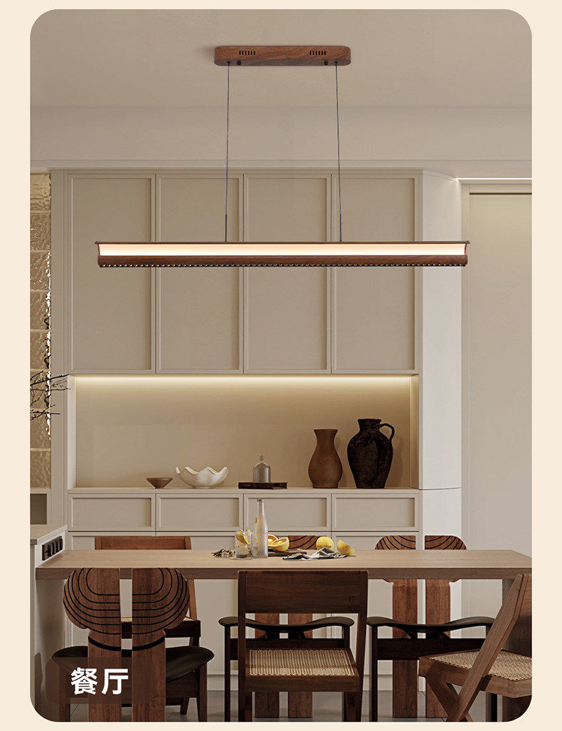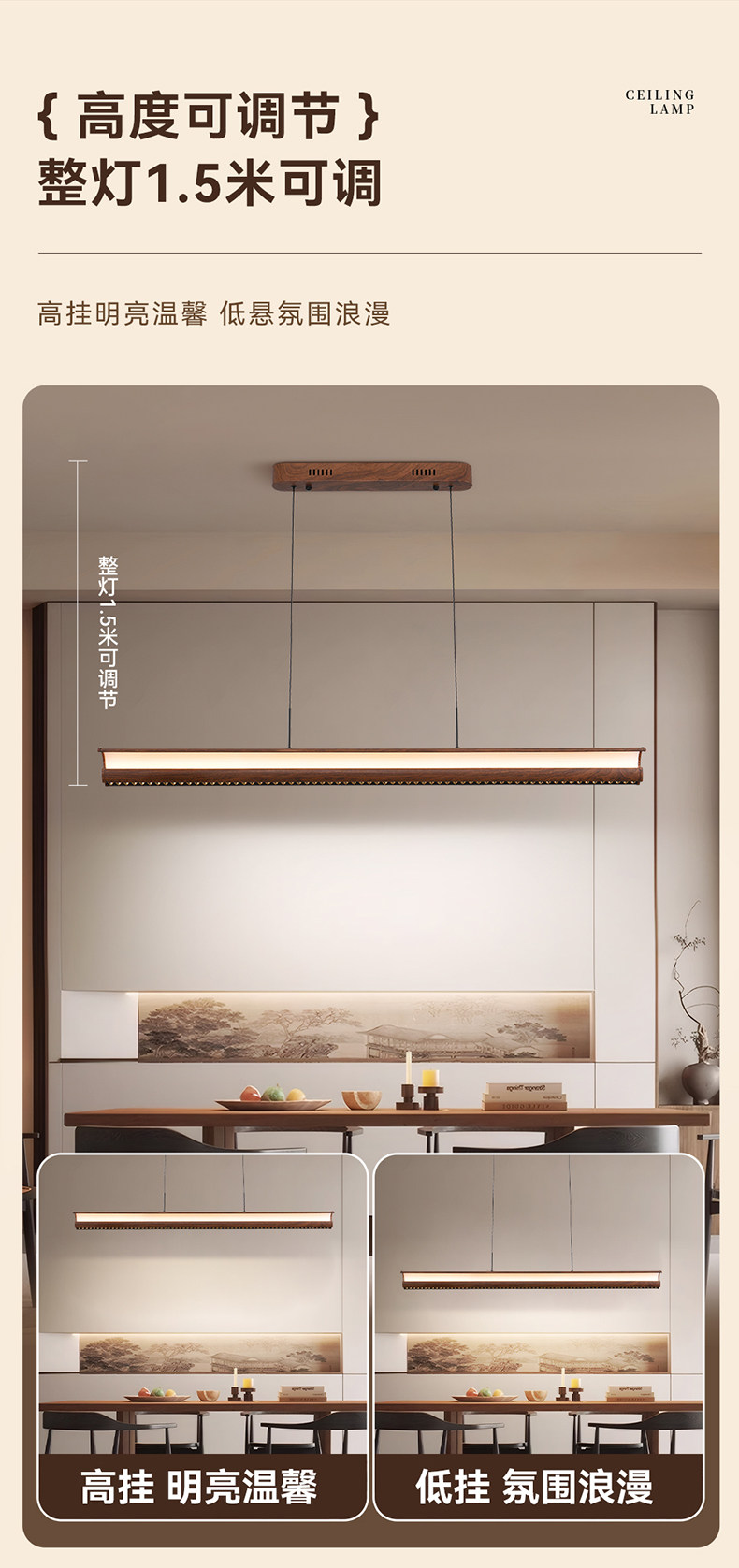 Nvc Lighting Mid-Century Walnut-Colored Smart Dining Room Chandelier Song-Style Aesthetic Eye-Protection Anti-Glare Island Bar Lamp